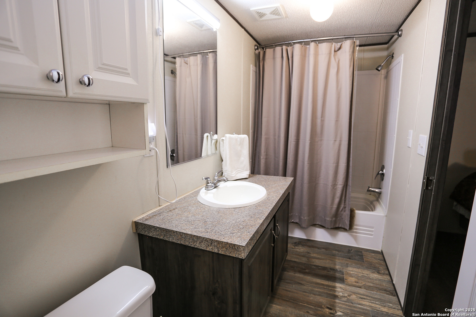 **OFFERING $5,000 IN CLOSING COSTS **Welcome to 127 Mountain View Dr, located just one mile from downtown Bandera in the desirable River Bend Estates. This one-acre corner lot offers access to the Medina River Community Park and presents an exceptional opportunity for personal use, investment, or short-term rental. The property features a 2018 mobile home with 2 bedrooms and 2 bathrooms, a whole-house charcoal water filtration system, and a hot tub for relaxing at the end of the day. Additional highlights include three RV hookups-one 50-amp under a 16' x 45' x 12' metal awning and two 30-amp hookups. A versatile 16' x 24' cabin with a bathroom provides additional living space and can be used as a guest suite, game room, or home office. Two 12' x 20' storage sheds with electricity offer ample storage or workshop space. With its proximity to downtown Bandera, river access, and flexible layout, this property is ideal for investors looking for a vacation rental or Airbnb opportunity. Don't miss your chance to own this unique and income-generating Hill Country property.