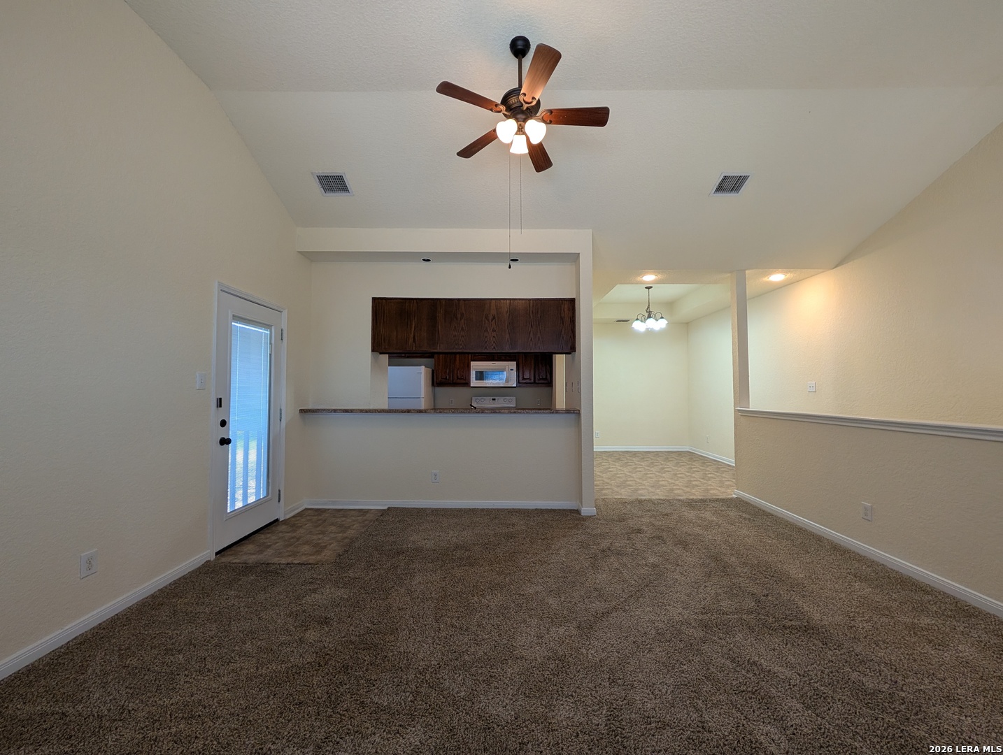 Great Location! 1.5 Miles to Gruene & just over 1.5 Miles to Downtown New Braunfels. Close to restaurants on Loop 337. Two story duplex with secondary bedrooms & bathroom on the 1st floor and primary bathroom / bedroom & living room / kitchen on 2nd floor. Flooring is a mix of carpet & vinyl. Features Include: Fridge, dishwasher, built in microwave, stove /oven range electric, breakfast bar, vaulted ceilings, trayed ceilings, washer/dryer connections, walk in shower, shower tub combo, ceiling fans, bay windows, large deck off the living room, partially fenced in yard, & a garage door opener. Owner provides front and backyard mow/edge as well as irrigation. 1 pet ok /max size 25 lbs. Cats - Proof of Spay/Neuter. CISD