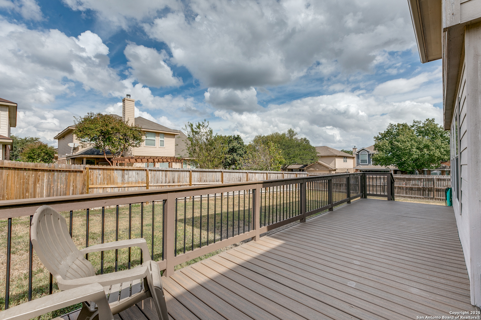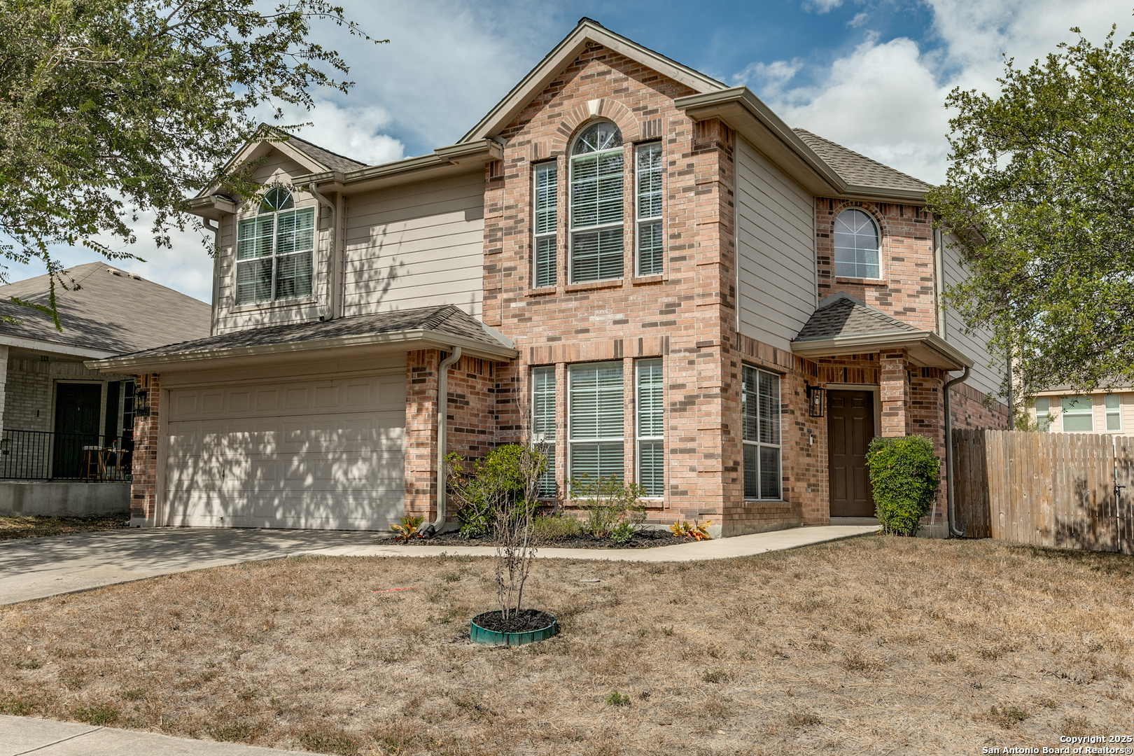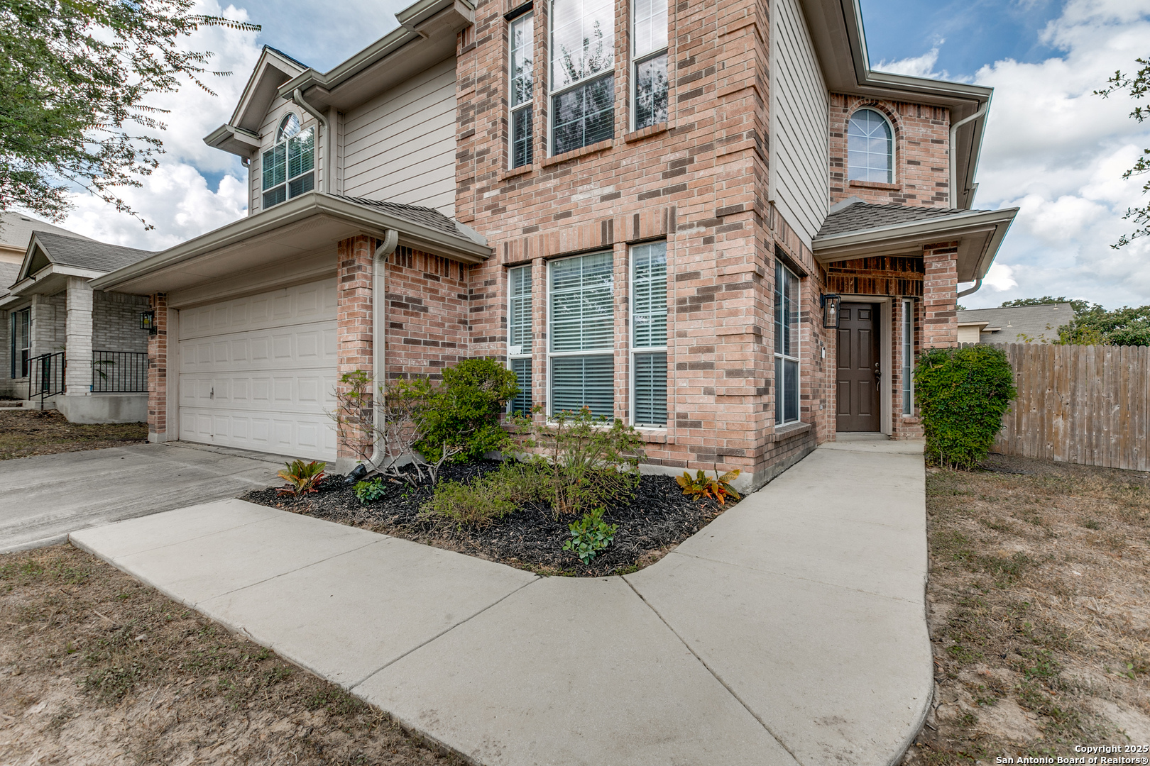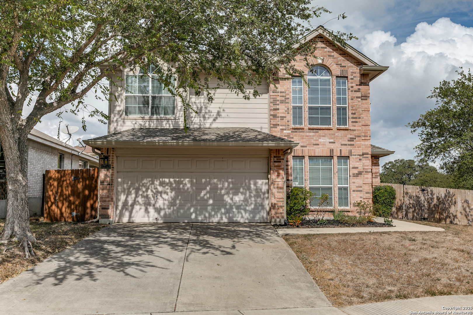 Welcome to this beautifully maintained 3-bedroom, 2.5-bath single-family home, perfectly situated on a premium corner lot just outside Loop 1604 and Potranco Road. This inviting property is filled with natural light and features high ceilings in the entryway, creating a bright and open atmosphere from the moment you walk in. The modern kitchen showcases white quartz counter tops, a glass tile back splash, stainless steel appliances, and upgraded light fixtures, ideal for everyday cooking or entertaining. Luxury vinyl plank flooring in wet areas adds both style and durability, while faux wood blinds provide a clean, cohesive look throughout. Enjoy movie nights or family time in the upstairs game room, and take advantage of the spacious backyard complete with a custom composite deck perfect for relaxing or hosting gatherings. Conveniently located close to popular eateries, shopping centers, and major highways, this home offers both comfort and accessibility. Whether you're starting your home ownership journey or looking for a move-in-ready property, this gem is the perfect starter home for any family.