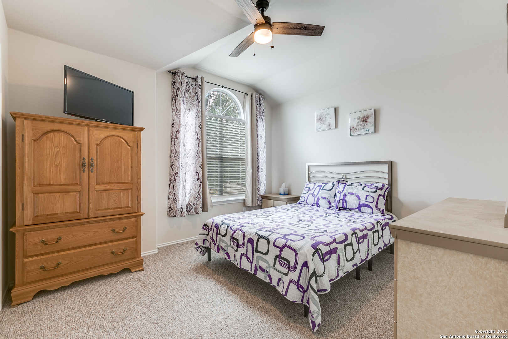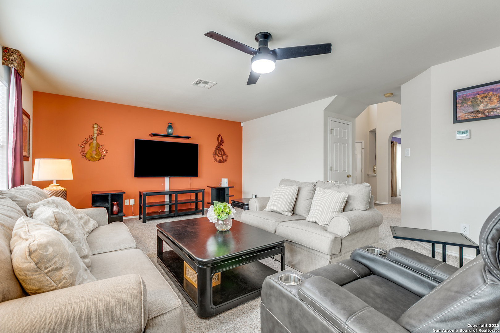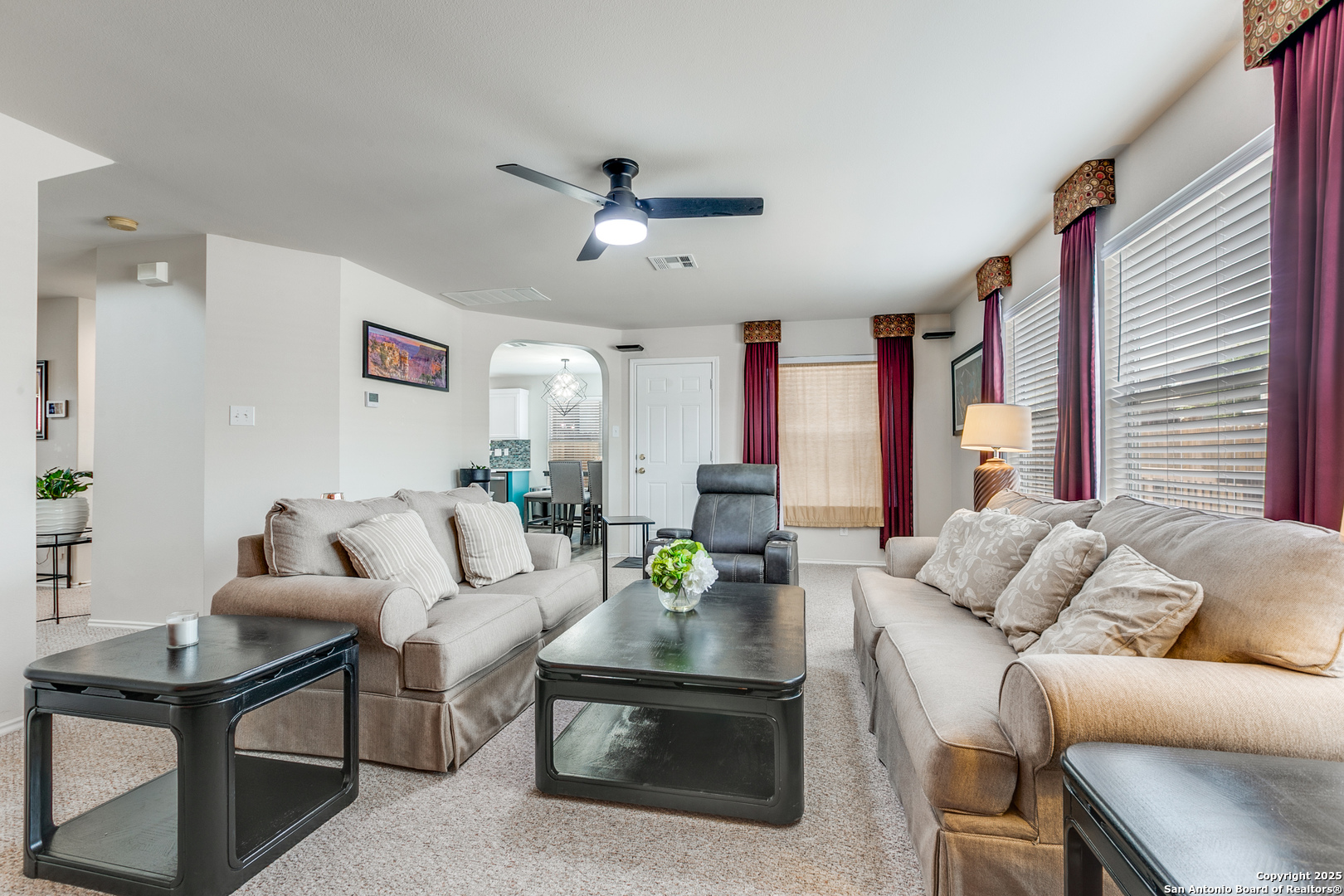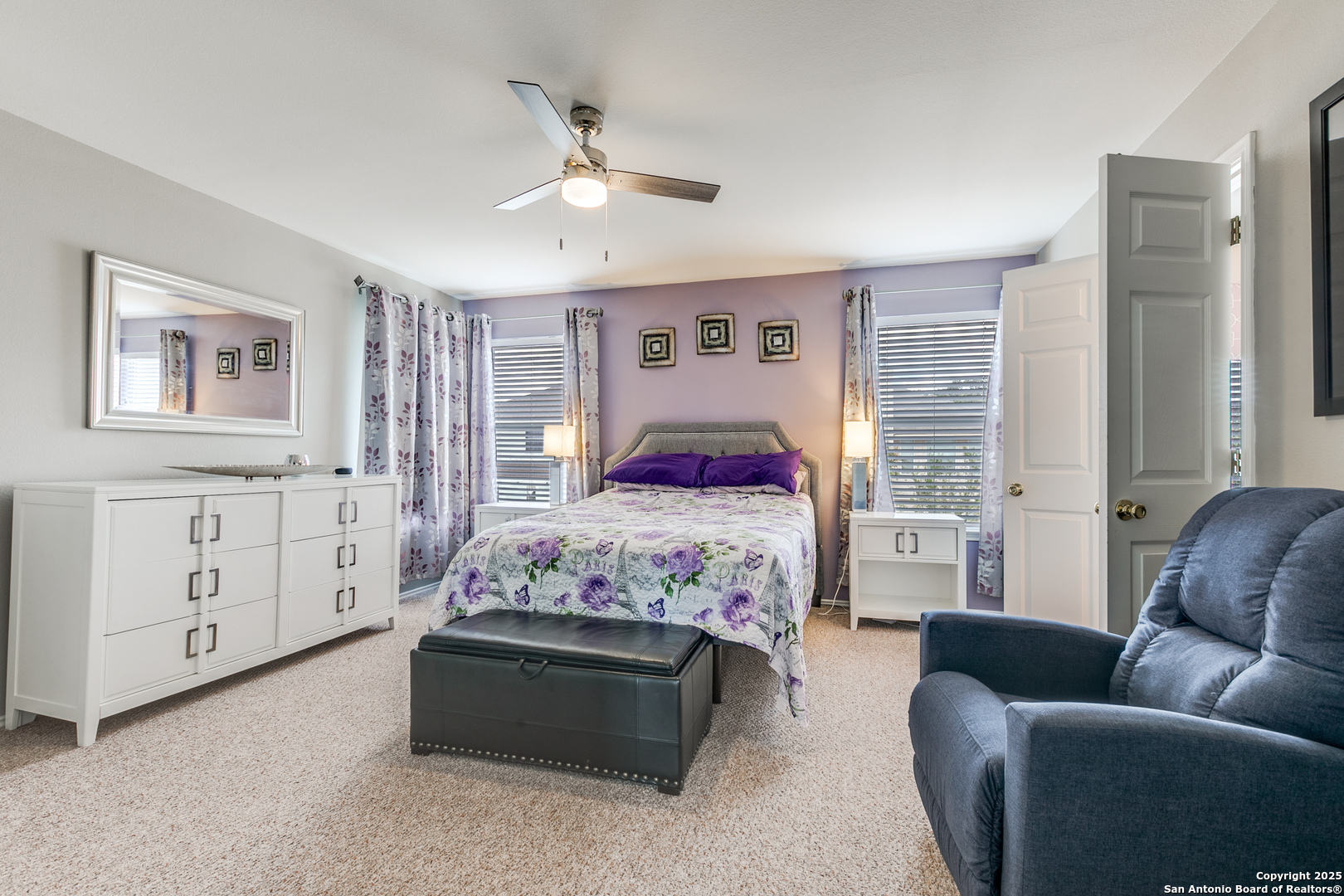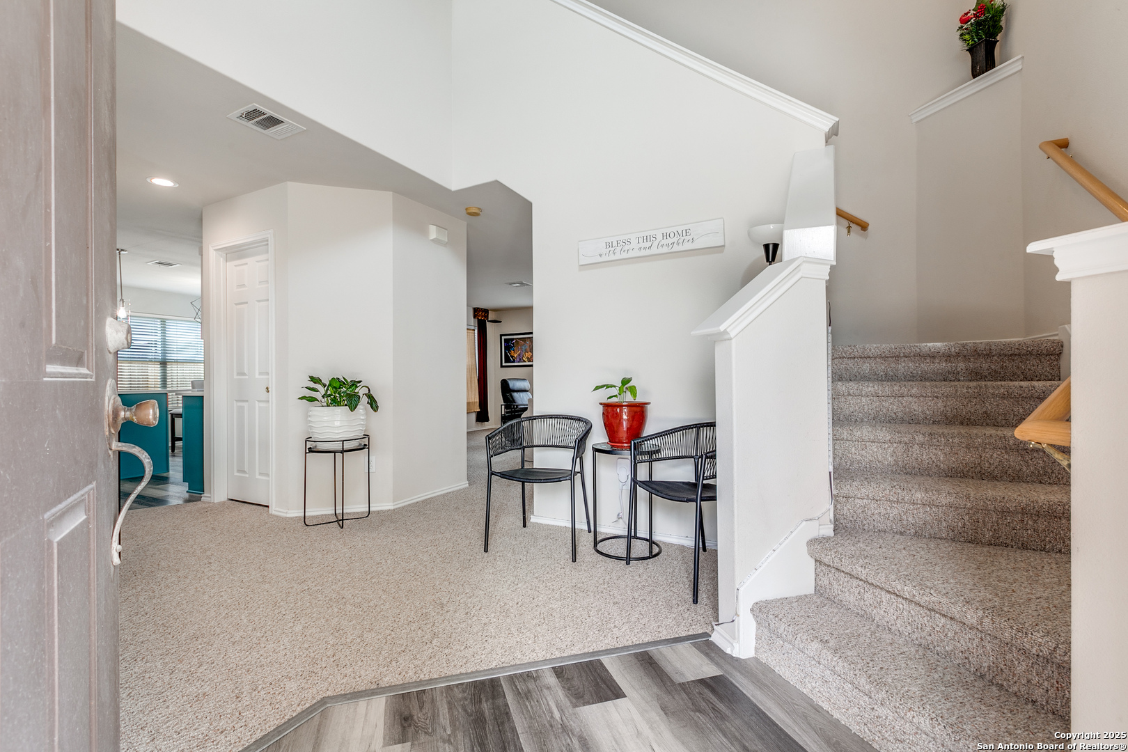 Welcome to this beautifully maintained 3-bedroom, 2.5-bath single-family home, perfectly situated on a premium corner lot just outside Loop 1604 and Potranco Road. This inviting property is filled with natural light and features high ceilings in the entryway, creating a bright and open atmosphere from the moment you walk in. The modern kitchen showcases white quartz counter tops, a glass tile back splash, stainless steel appliances, and upgraded light fixtures, ideal for everyday cooking or entertaining. Luxury vinyl plank flooring in wet areas adds both style and durability, while faux wood blinds provide a clean, cohesive look throughout. Enjoy movie nights or family time in the upstairs game room, and take advantage of the spacious backyard complete with a custom composite deck perfect for relaxing or hosting gatherings. Conveniently located close to popular eateries, shopping centers, and major highways, this home offers both comfort and accessibility. Whether you're starting your home ownership journey or looking for a move-in-ready property, this gem is the perfect starter home for any family.