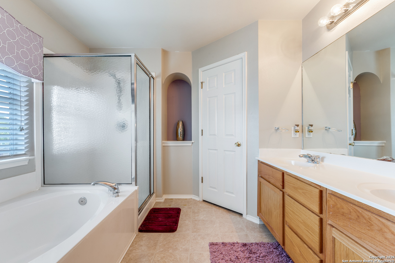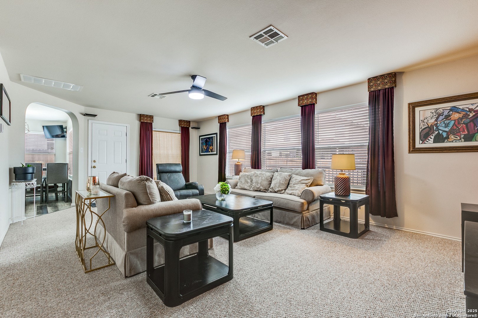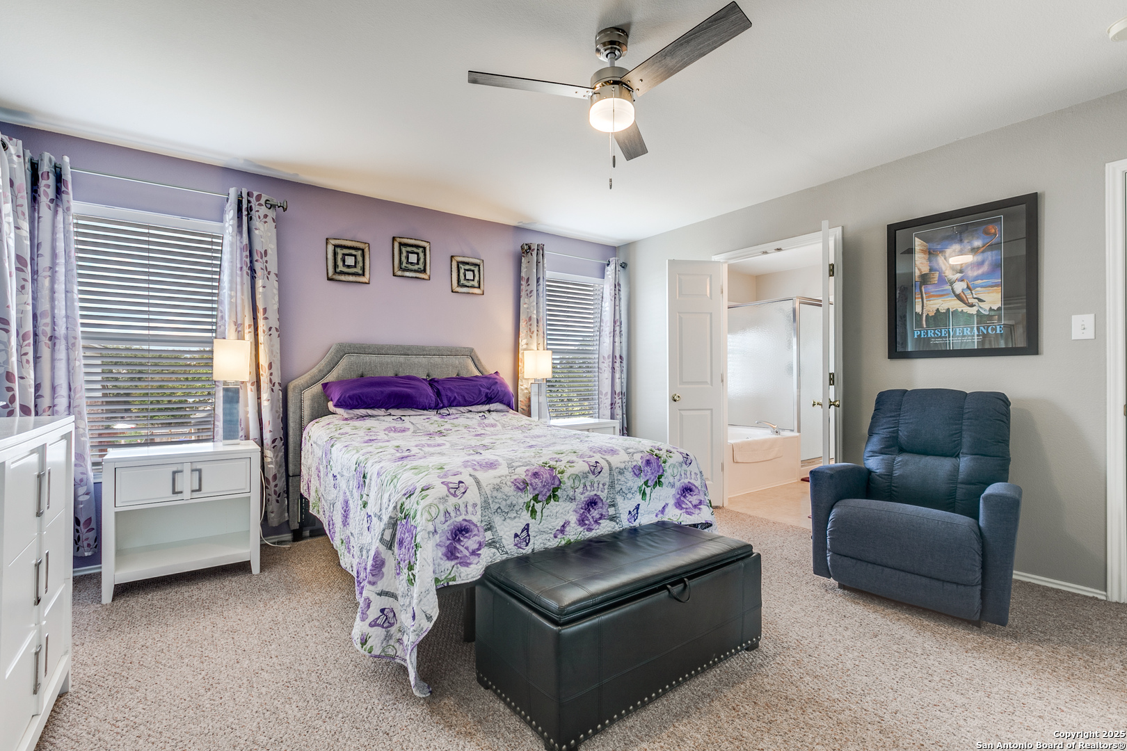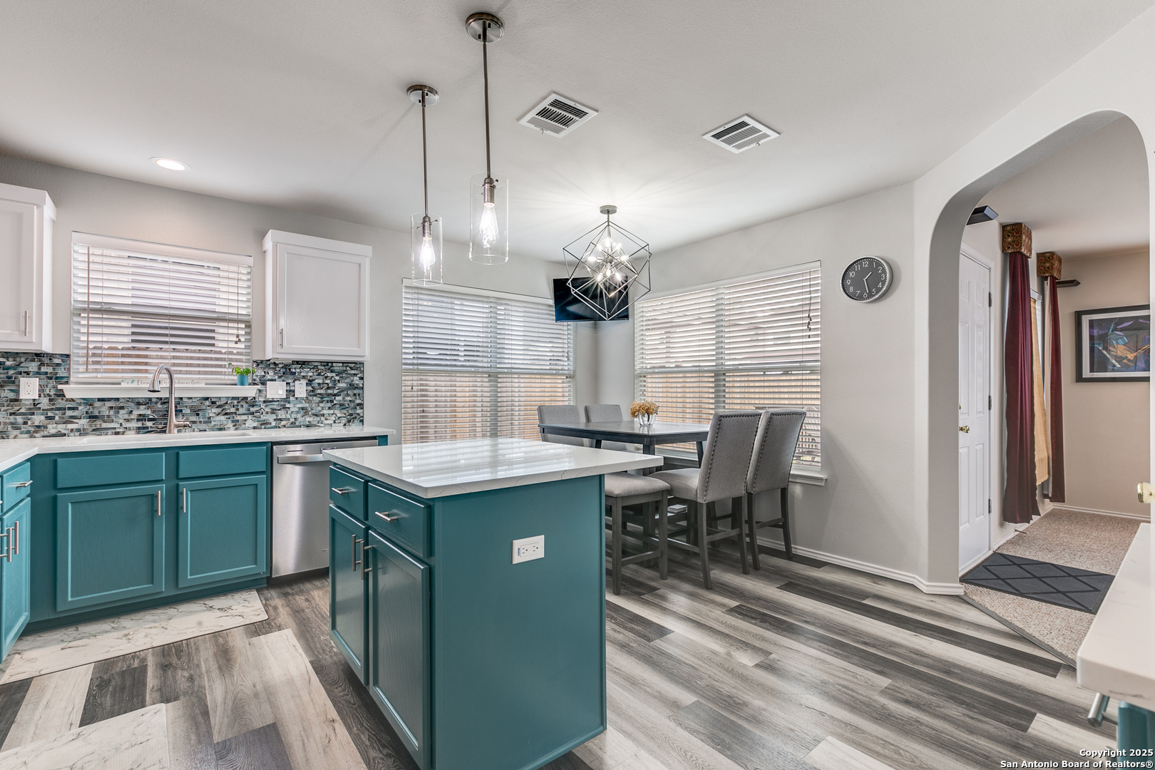Welcome to this beautifully maintained 3-bedroom, 2.5-bath single-family home, perfectly situated on a premium corner lot just outside Loop 1604 and Potranco Road. This inviting property is filled with natural light and features high ceilings in the entryway, creating a bright and open atmosphere from the moment you walk in. The modern kitchen showcases white quartz counter tops, a glass tile back splash, stainless steel appliances, and upgraded light fixtures, ideal for everyday cooking or entertaining. Luxury vinyl plank flooring in wet areas adds both style and durability, while faux wood blinds provide a clean, cohesive look throughout. Enjoy movie nights or family time in the upstairs game room, and take advantage of the spacious backyard complete with a custom composite deck perfect for relaxing or hosting gatherings. Conveniently located close to popular eateries, shopping centers, and major highways, this home offers both comfort and accessibility. Whether you're starting your home ownership journey or looking for a move-in-ready property, this gem is the perfect starter home for any family.
