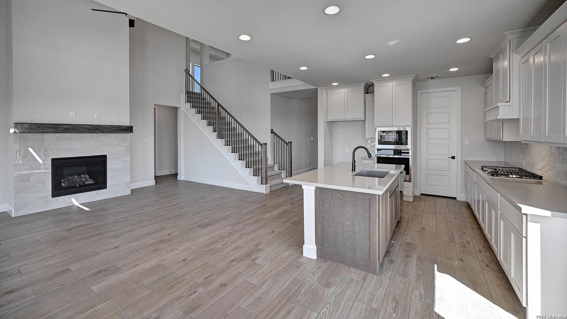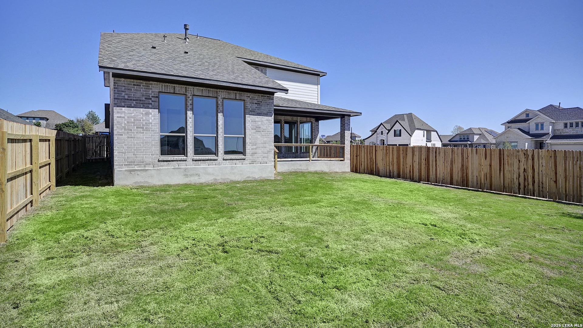 Step off the front porch into the two-story entryway. French doors open into the home office at the front of the house. Past the staircase you enter into the open living areas. The kitchen features an island with built-in seating, walk-in corner pantry, a 5-burner gas cooktop, and an adjacent dining room with ample natural light. The family room boasts a wall of windows, wood mantel fireplace, and 19-foot ceiling. The primary bedroom has coffered ceilings and three large windows. French doors open into the primary bathroom which showcases a glass-enclosed shower, dual vanities, a garden tub, and an oversized walk-in closet. Upstairs on the second floor you are greeted by a large game room with a wall of windows. A private guest suite with a full bathroom is off of the staircase. Secondary bedrooms featuring walk-in closets, separate linen closets, and a shared bathroom complete this floor. Covered backyard patio. Mud room and utility room are off of the two-car garage.