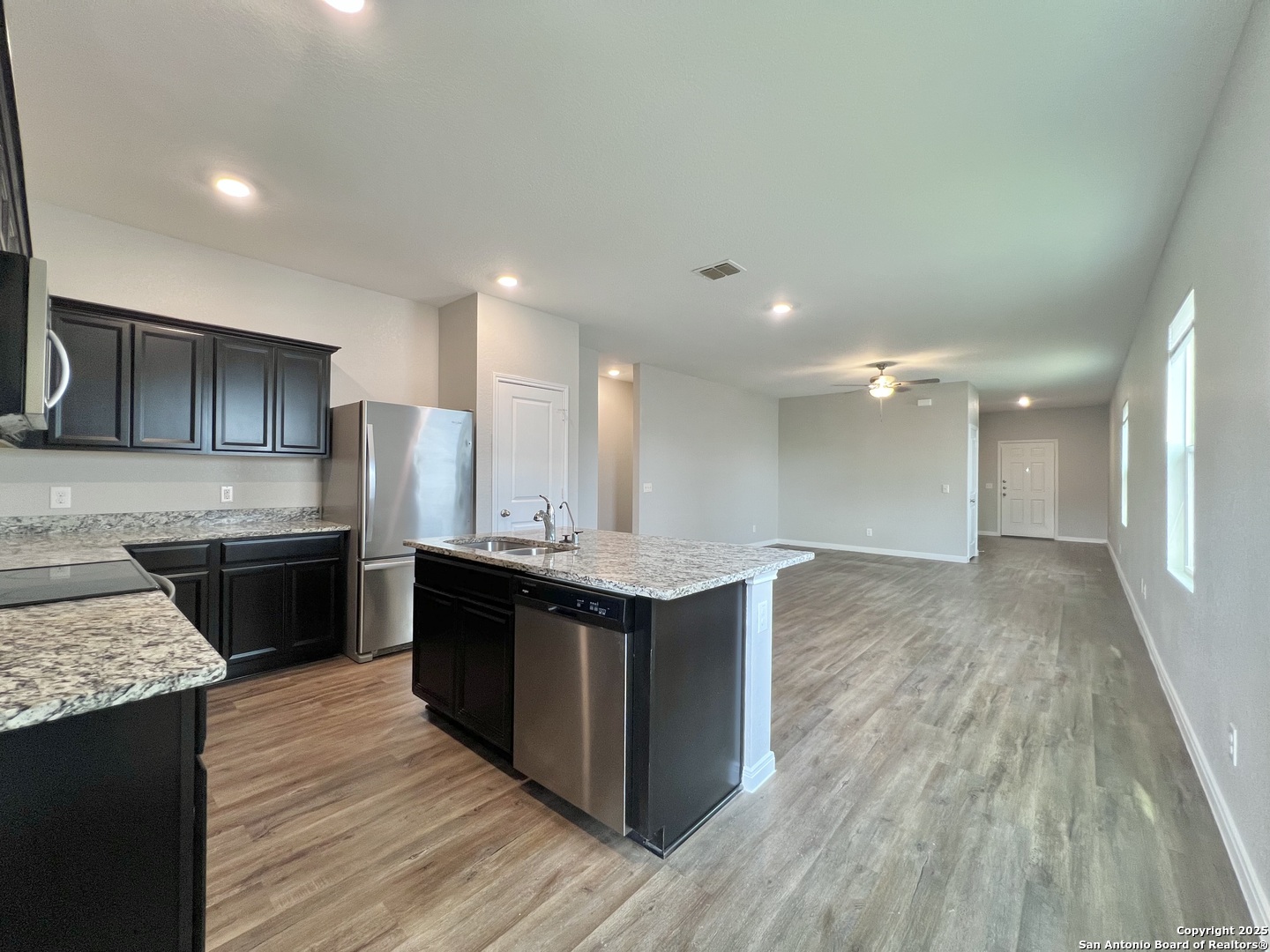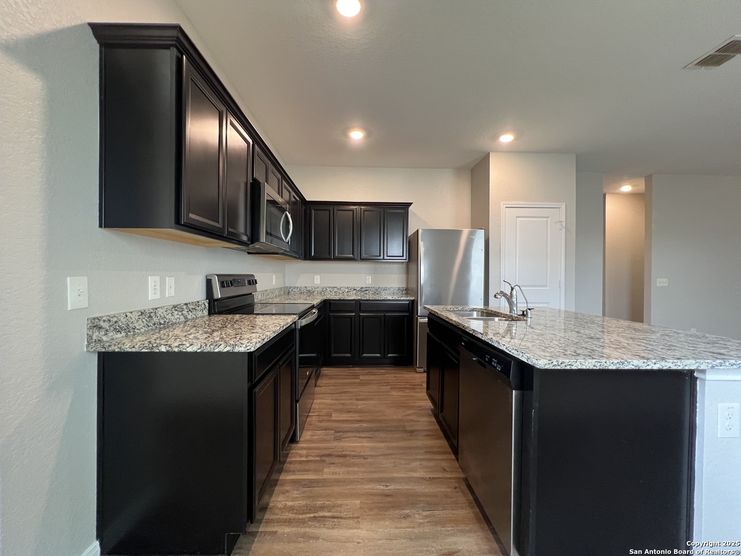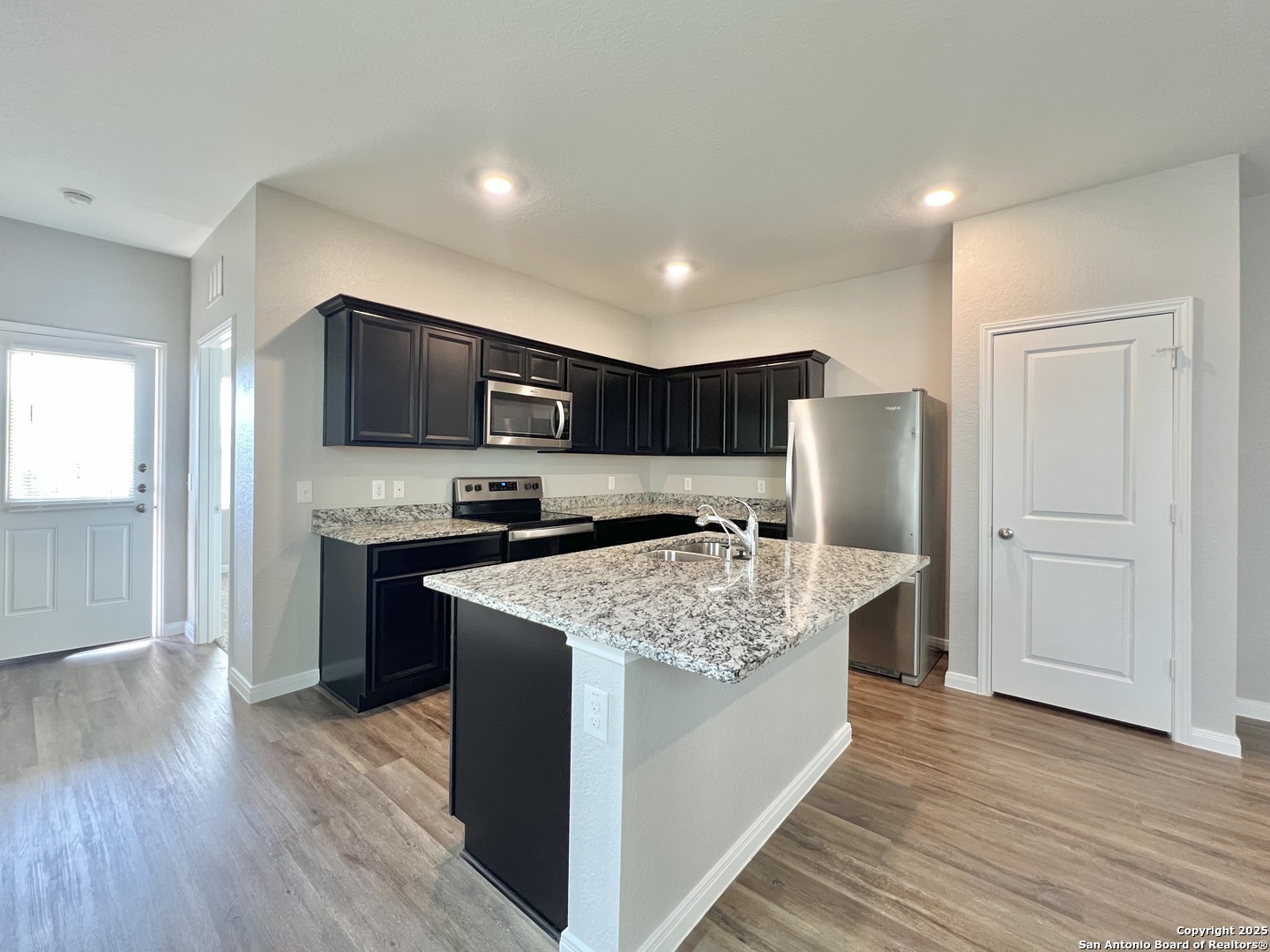 Beautiful 3-bedroom, 2-bathroom, single-story home in the desirable Meridian community. This home features an open-concept floor plan, with the master bedroom located at the back for added privacy. The spacious kitchen includes granite countertops, all necessary appliances, and a kitchen island that seamlessly connects to the dining and living areas. The generous backyard is perfect for barbecues and family activities. Enjoy fantastic amenities including a creative playground, picnic area, and a pool. Convenient access to highways 90, 211, and 1604. Schedule your tour today!