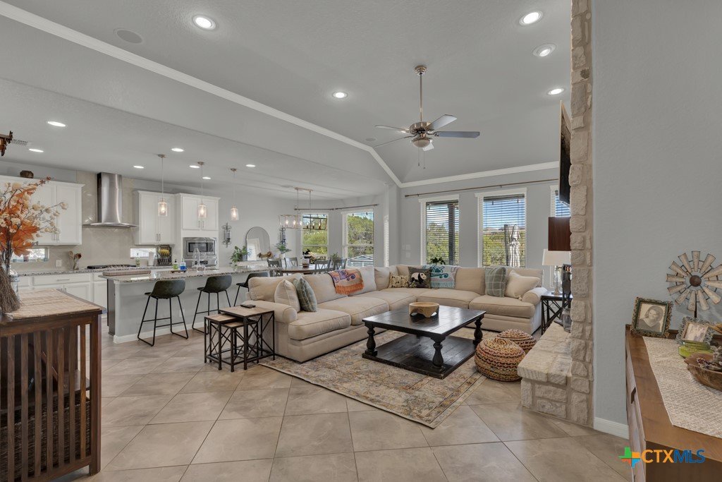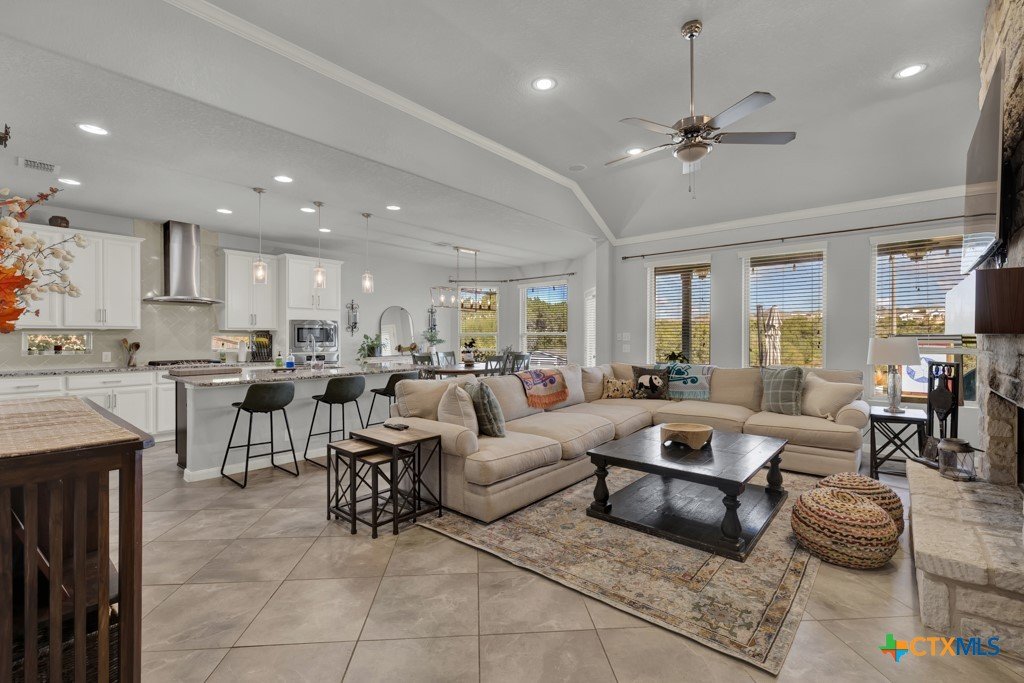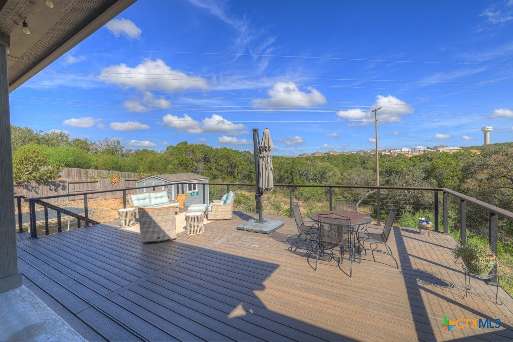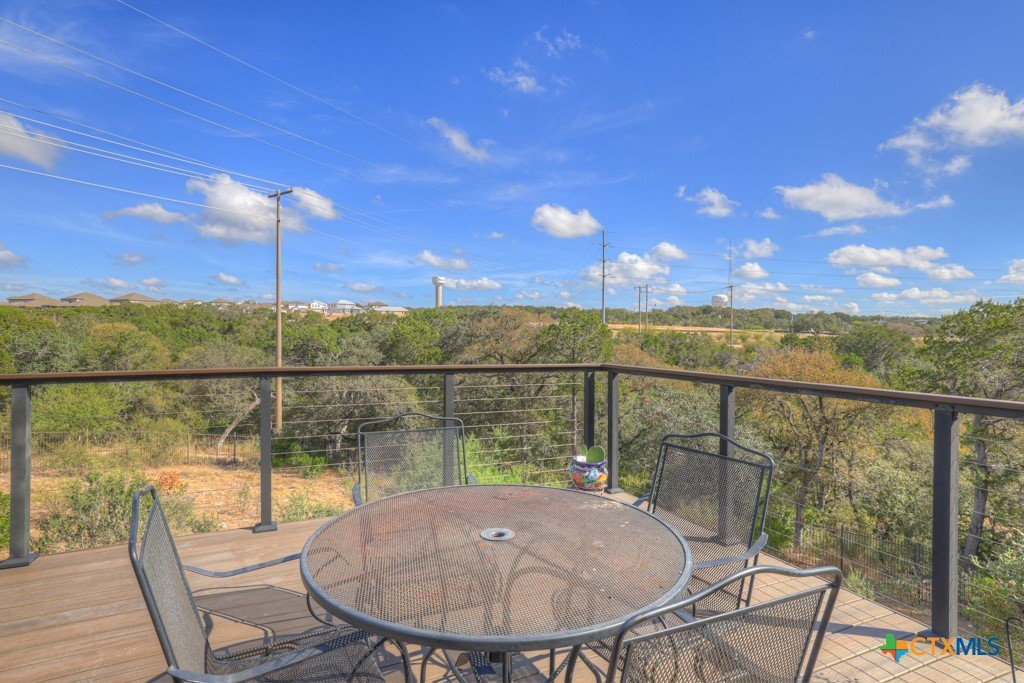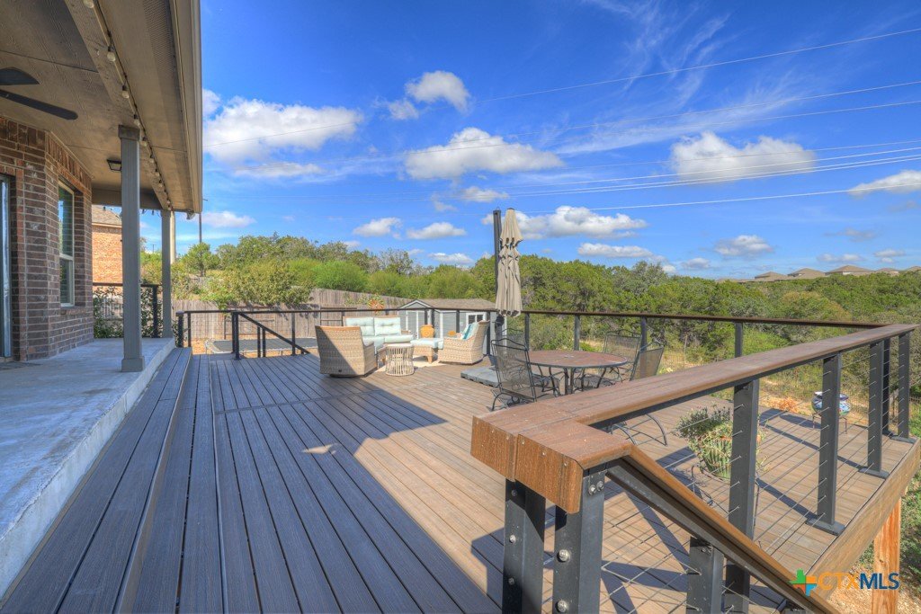 Come See This Beautiful Home in the Estates of Stone Crossing! This spacious and thoughtfully designed 1½-story home offers 2,657 sqft of flexible living space with 4 bedrooms, 3 full bathrooms, and 2 inviting living areas — all set on a generous 0.48-acre fenced lot in a highly sought-after New Braunfels community. From the moment you step inside, you’ll feel right at home. Beyond the welcoming foyer, three secondary bedrooms and a full bath are tucked away for privacy — one of which is currently used as a home office, perfect for remote work or study. The bright and airy primary suite is a peaceful retreat, complete with large windows that flood the space with natural light and frame stunning views of the backyard and wooded canyon beyond. The spa-like master bathroom features dual granite-topped vanities, a grand walk-in shower, and a spacious L-shaped closet built to keep you organized. At the heart of the home, the open-concept living, kitchen, and dining areas are ideal for gatherings or quiet evenings in. The kitchen boasts ample cabinetry, a walk-in pantry, and a functional island that’s perfect for meal prep or casual dining. A cozy wood-burning fireplace adds charm and warmth to the main living area. One of the true highlights of this home is the 580 sqft composite deck — a durable and beautiful space to relax or entertain while soaking in those amazing backyard canyon views. Upstairs, a versatile second living area and full bath offer a great space for guests, a playroom, or media area — whatever suits your needs. Located in the tranquil Estates of Stone Crossing, this home provides easy access to everything New Braunfels has to offer — shopping, dining, schools, and commuter routes.