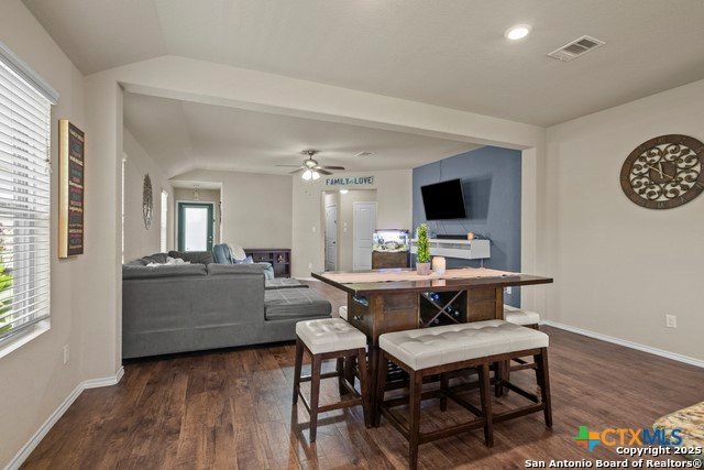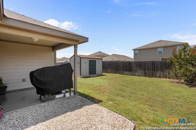 Experience the charm of New Braunfels living in this beautifully maintained 4-bedroom, 2-bath home spanning 1,695 sq. ft. The open-concept layout seamlessly connects the spacious living room to an inviting island kitchen, complete with abundant countertop and cabinet space as well as stainless steel appliances. The large primary suite offers a full bath with a double vanity, separate shower, and a relaxing soaking tub. Step outside to enjoy a covered patio overlooking a generous backyard with a storage shed, perfect for outdoor living and entertaining. Conveniently located near the Guadalupe River, Lake McQueeney, historic Gruene, Schlitterbahn, and a variety of shopping and dining options, this property provides easy access to some of the area's most beloved attractions. Situated within the NBISD school district, this home combines comfort, functionality, and the vibrant Texas Hill Country lifestyle.