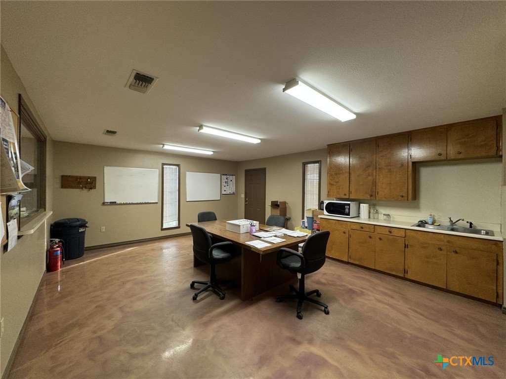 2.12 acres with good road frontage with easy acces to Highway 59. Office building with 5 offices, large storage room, conference room with full kitchen and 1/2 bathroom. Storage building, cell booster, fiber internet, 1100 sf metal canopy for covered parking for 5 cars. This is a multi use property and was formerly known as KC Lease Service. Seller retaining minerals.