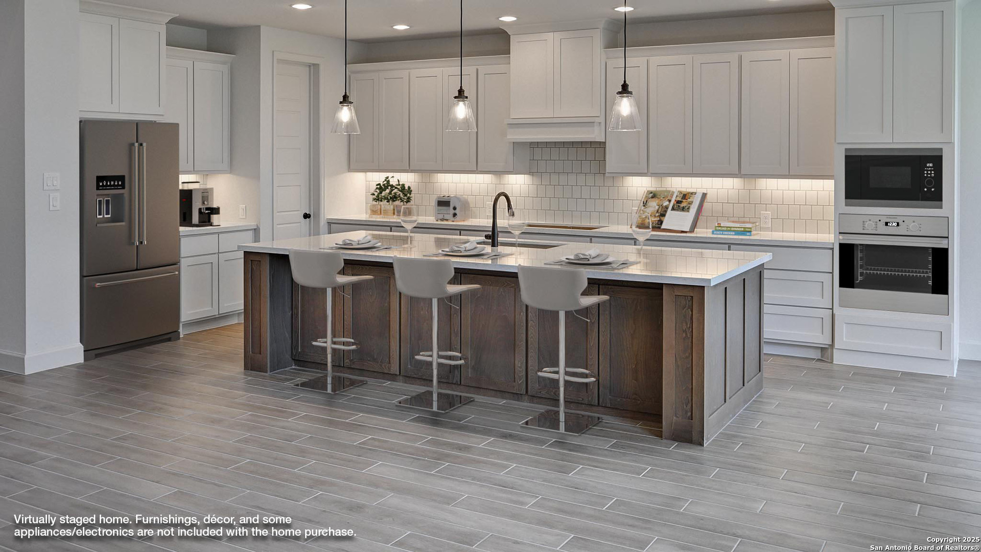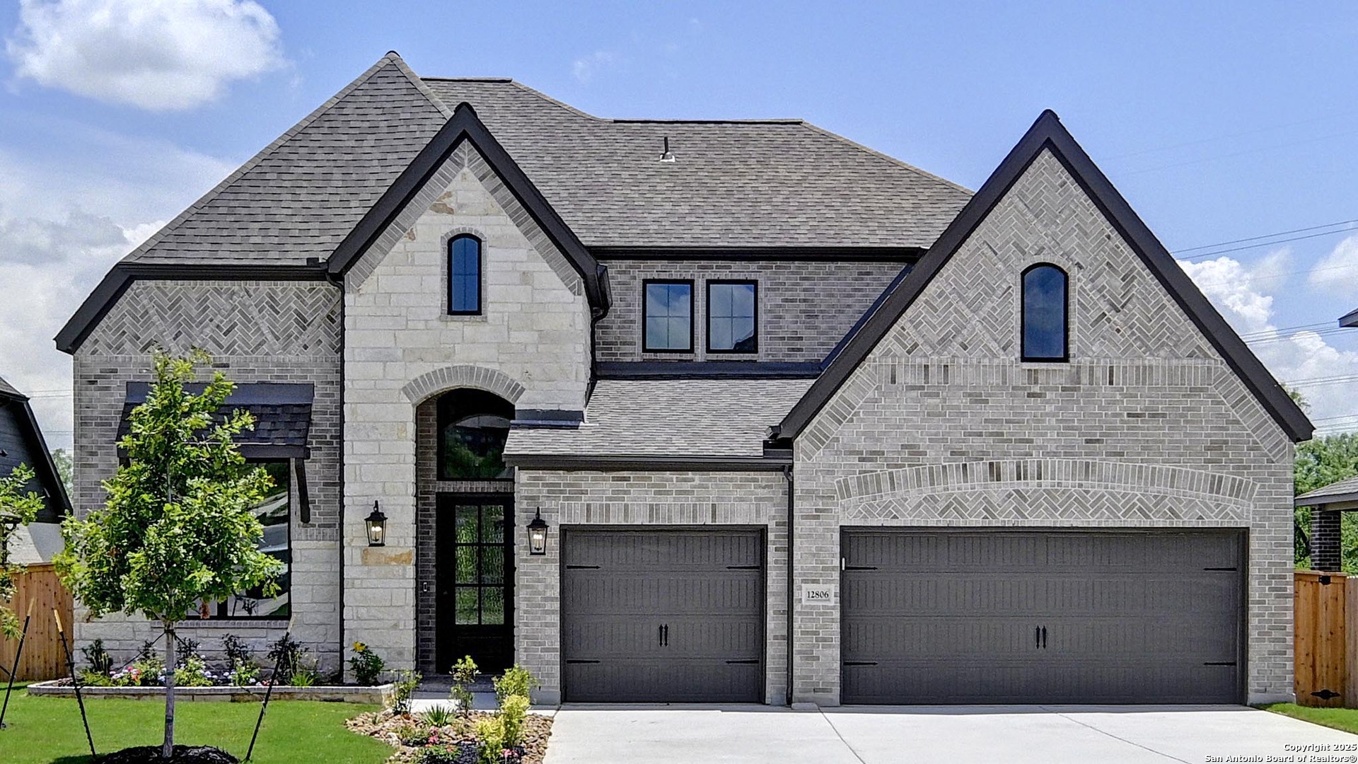 Front porch. Home office with French doors frames the two-story entry. Island kitchen features a large pantry, built-in seating space and opens to the morning area. Two-story family room features 19-foot ceilings and a sliding glass door. Private primary suite with a wall of windows. Primary bath features dual vanities, freestanding tub, a separate glass enclosed shower and two large walk-in closets. Game room, media room and secondary bedrooms including a guest suite complete the second level. Covered backyard patio. Three-car garage.
