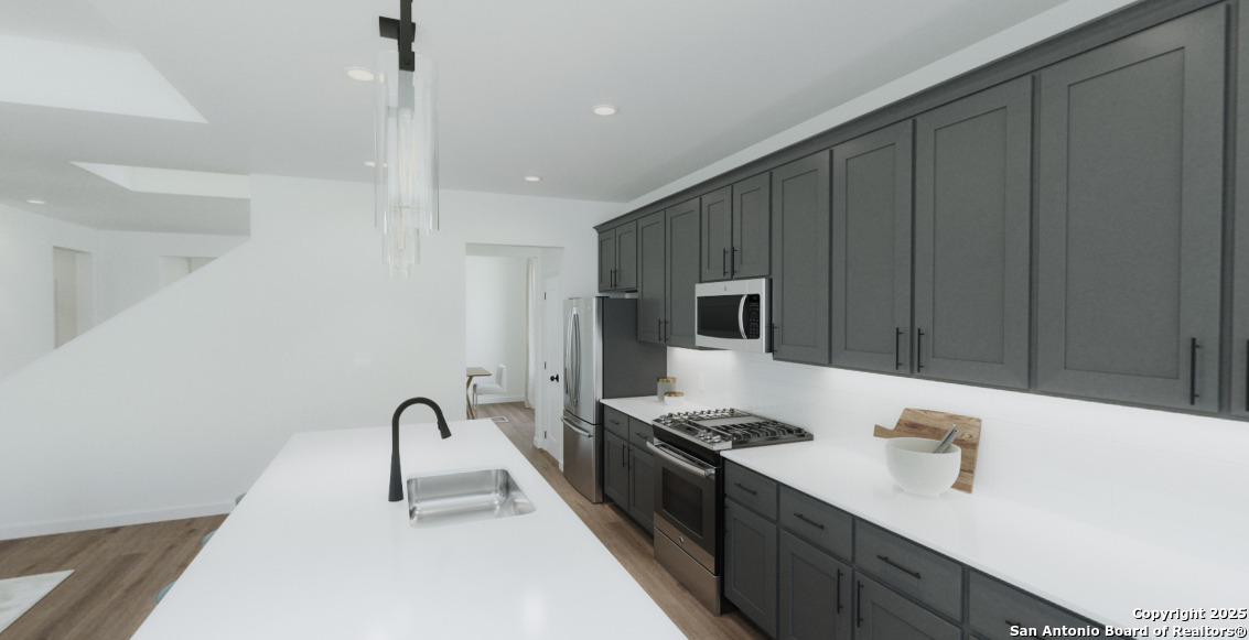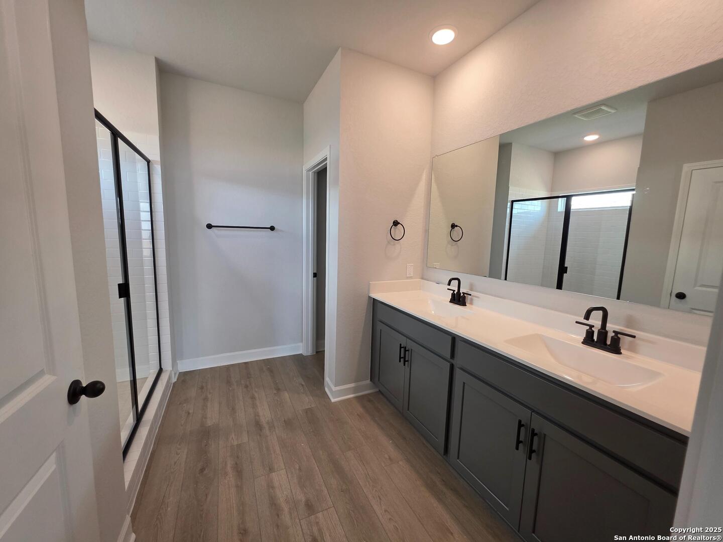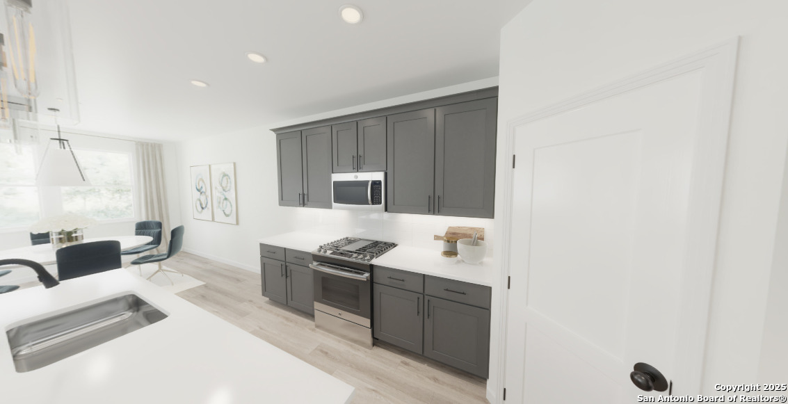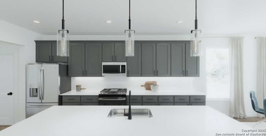 This charming one-story home combines thoughtful design with modern comfort, offering a layout perfect for everyday living and entertaining. The gourmet kitchen features quartz countertops, upgraded cabinetry, and a walk-in pantry, flowing seamlessly into a spacious family room filled with natural light from large windows overlooking the backyard. The secluded primary suite provides a serene retreat, complete with double vanities, an oversized shower, and a generous walk-in closet. Two secondary bedrooms, each with its own walk-in closet, offer comfort and privacy for family or guests. Outside, a covered patio invites relaxation and gatherings, while a full landscaping package with a built-in sprinkler system makes outdoor maintenance effortless, allowing you to enjoy your home to the fullest. This home is part of our Minimalist Collection-where simplicity makes space for life's best moments. Clean lines, sharp contrasts, and striking negative space form a backdrop as stunning as it is calming. Whether you're prepping for a gallery opening or unwinding from the night before, Minimalist design offers room for clarity, creativity, and comfort-black tee casual or black-tie elegant, always beautiful in its simplicity. This home is located in Saddlebrook Ranch, a master-planned community in the charming city of Schertz-named one of CNN/Money's top small towns. Enjoy easy access to I-35, premier shopping, dining, and Randolph Air Force Base. Planned amenities include a sparkling pool and playground, perfect for family fun. With the highly regarded Schertz-Cibolo-Universal City School District nearby, Saddlebrook Ranch offers the ideal blend of community, convenience, and small-town charm.