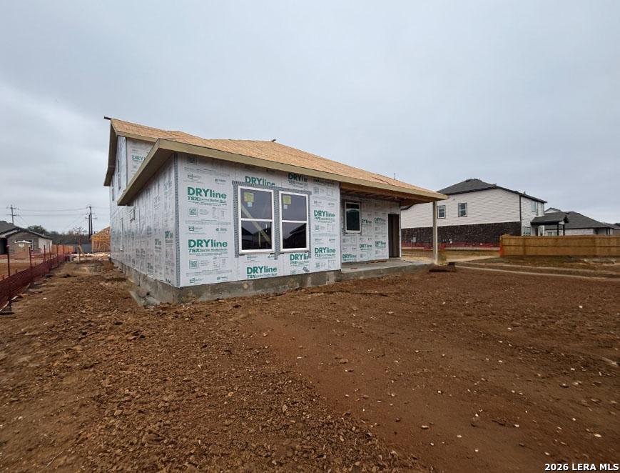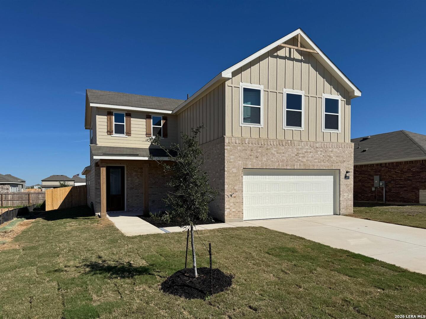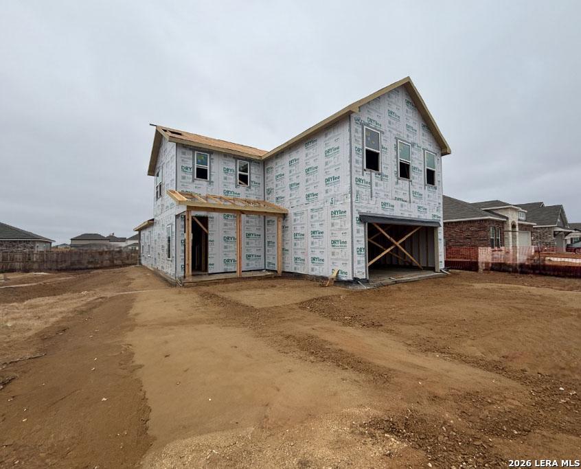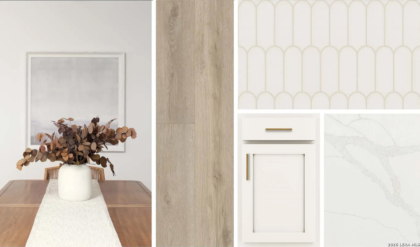 This two-story home offers 4 bedrooms, 2.5 baths, and a functional layout ideal for modern living. The kitchen features a center island, walk-in pantry, built-in appliances, and pendant lighting, flowing seamlessly into the bright family room with views of the covered patio. A private study with doors and a downstairs primary suite provide comfort and flexibility, while the private primary bath includes a large shower, double vanities, and an oversized closet. Upstairs, three secondary bedrooms and a loft create plenty of space for relaxation or play. Additional highlights include vinyl flooring, ceiling fans, in-wall pest control, plumbing for a water softener, privacy fencing, and a sprinkler system, all reflecting the home's quality construction and thoughtful design. This home is part of our Serene Collection - designed to bring balance, calm, and open space into everyday life. Muted earth tones and natural textures work together to create rooms that breathe and moments that linger. Serene is about slowing down, soaking in the quiet, and making space for what truly matters, one peaceful moment at a time. This home is in Saddlebrook Ranch, a master-planned community in Schertz, offering easy access to I-35, shopping, dining, Randolph AFB, a pool, playground, and top-rated schools.