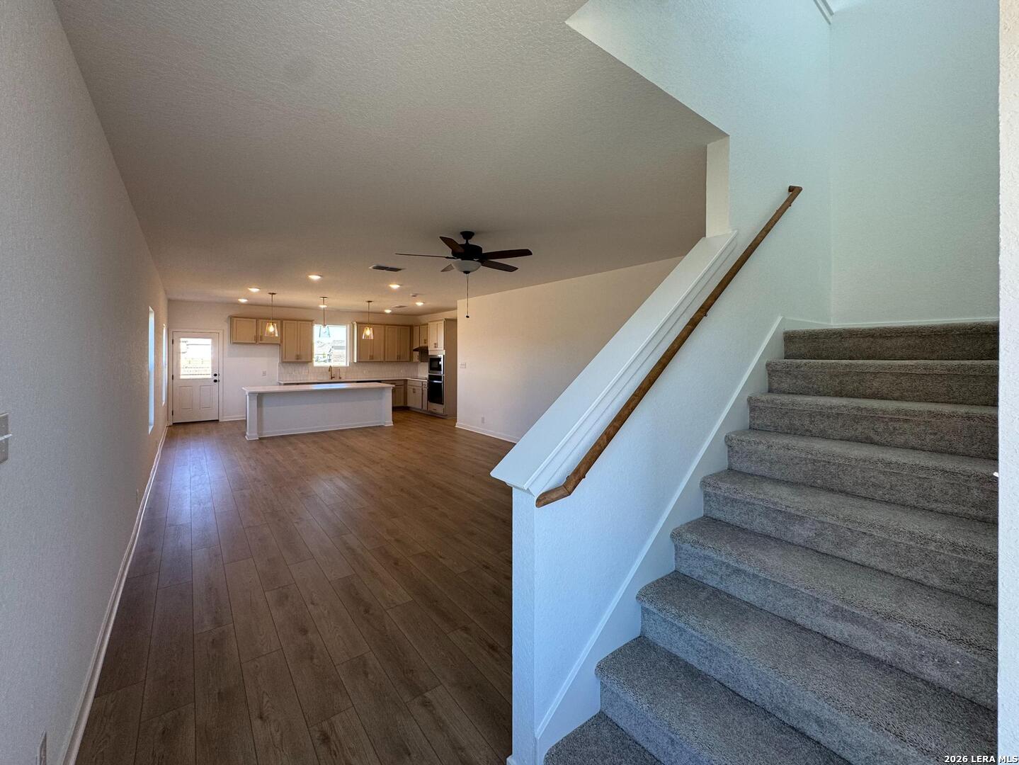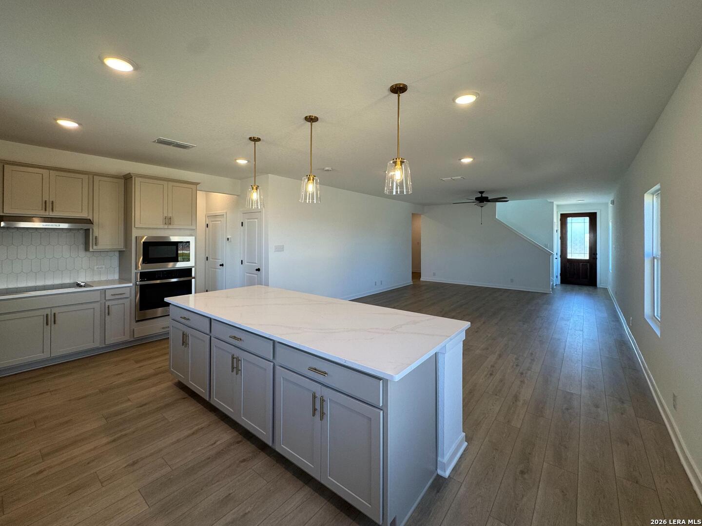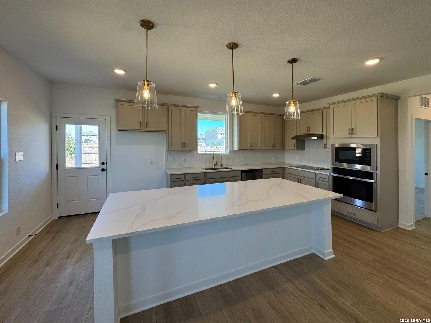 This two-story home offers 4 bedrooms, 2.5 baths, and a functional layout ideal for modern living. The kitchen features a center island, walk-in pantry, built-in appliances, and pendant lighting, flowing seamlessly into the bright family room with views of the covered patio. A private study with doors and a downstairs primary suite provide comfort and flexibility, while the private primary bath includes a large shower, double vanities, and an oversized closet. Upstairs, three secondary bedrooms and a loft create plenty of space for relaxation or play. Additional highlights include vinyl flooring, ceiling fans, in-wall pest control, plumbing for a water softener, privacy fencing, and a sprinkler system, all reflecting the home's quality construction and thoughtful design. This home is part of our Serene Collection - designed to bring balance, calm, and open space into everyday life. Muted earth tones and natural textures work together to create rooms that breathe and moments that linger. Serene is about slowing down, soaking in the quiet, and making space for what truly matters, one peaceful moment at a time. This home is in Saddlebrook Ranch, a master-planned community in Schertz, offering easy access to I-35, shopping, dining, Randolph AFB, a pool, playground, and top-rated schools.