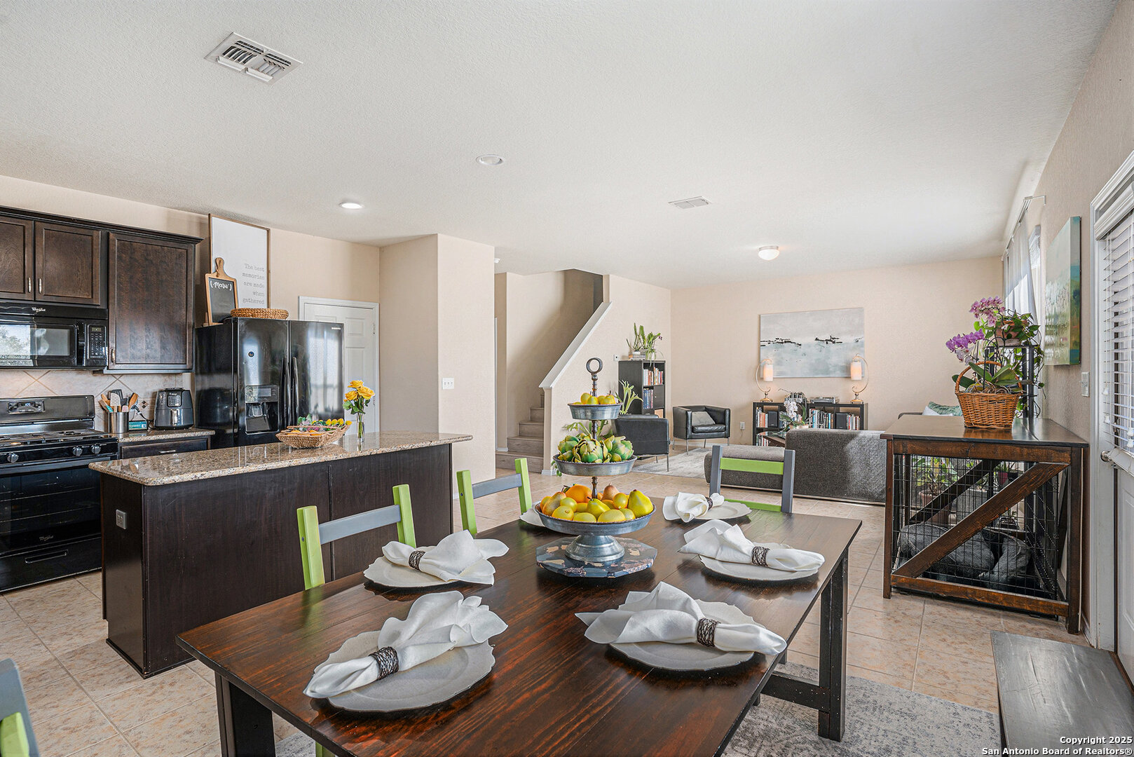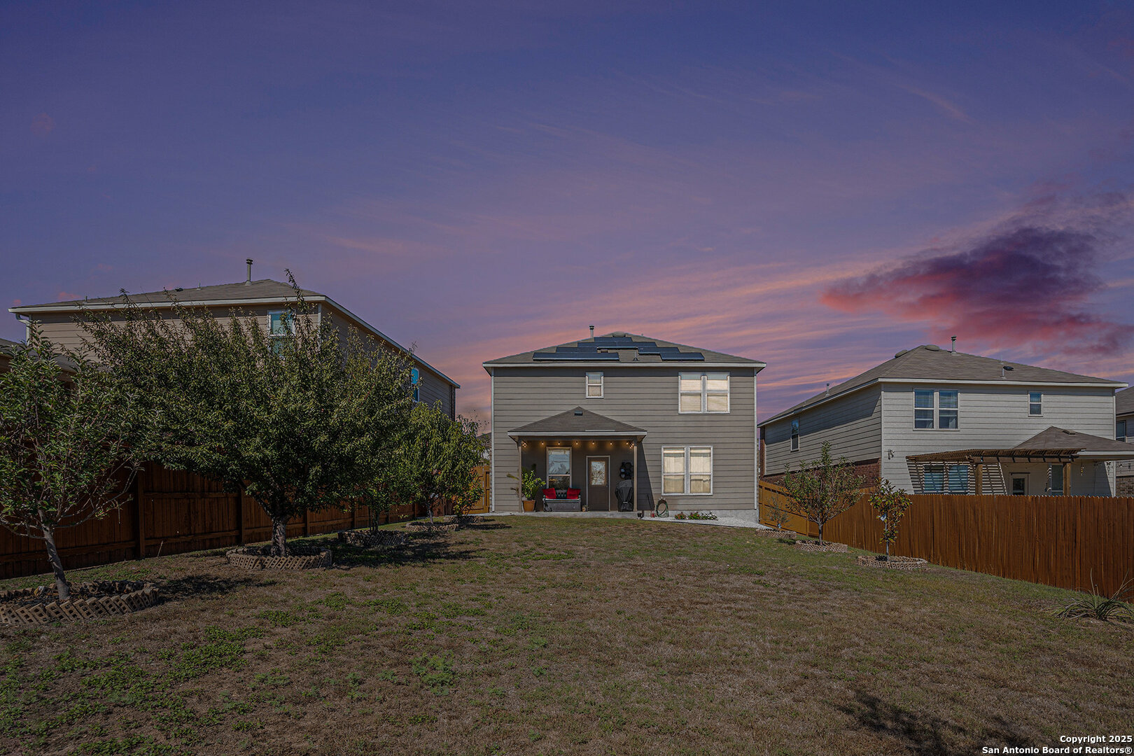 Excellent opportunity and priced to sell, 12846 Limestone Way is a beautifully maintained home in the sought-after Alamo Ranch community. This property combines thoughtful updates, energy efficiency, and privacy. Backed by a peaceful greenbelt/ranch beyond, the home offers a spacious, private backyard ideal for entertaining or quiet relaxation. Enjoy the covered patio, full sprinkler system, and a collection of mature fruit trees-including plum, pear, apple, fig, avocado, and olive-that have been lovingly cultivated by the current owners. The solar panels (to be paid off at closing by the seller) make this home incredibly energy-efficient, with summer electric bills averaging around $100 and virtually nothing in the winter. A recently replaced A/C unit (under warranty) and new roof (2/25) adds peace of mind for years to come. Inside, the home is bright and open, filled with natural light and designed for easy living. The main level features ceramic tile flooring, a bedroom or study with French doors, and a spacious island kitchen with granite countertops, gas cooking, and ample cabinetry. Upstairs, you'll find three additional bedrooms, a versatile game room, and a flex space ideal for a study or home office. The primary suite features dual vanities and a stand-up shower. Located just minutes from Loop 1604, SeaWorld, Lackland AFB, and premier shopping and dining, this home also offers access to the highly regarded Northside ISD. Experience the best of Alamo Ranch living-private, efficient, and beautifully maintained. Schedule your showing today! Welcome Home!