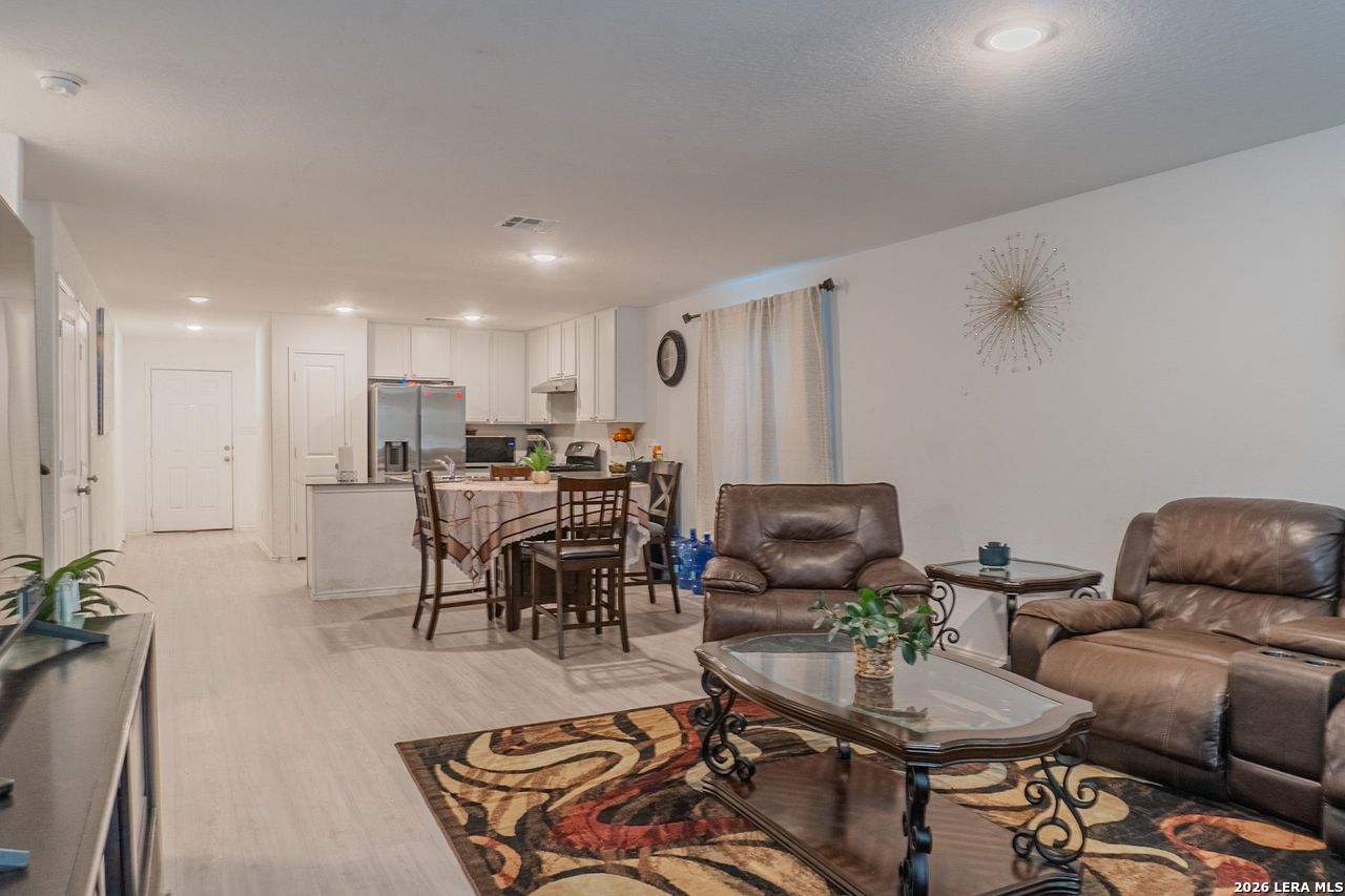 Welcome to this well-maintained two-story home featuring a bright and functional open-concept layout. The main floor offers a spacious living and dining area that flows seamlessly into the kitchen, complete with white cabinetry, stainless steel appliances, gas cooking, and a convenient breakfast bar. The layout is perfect for both everyday living and entertaining. Upstairs you'll find additional bedrooms along with a versatile loft space that can be used as a second living area, office, or study. The home also features a two-car garage and a covered front porch, creating great curb appeal. Conveniently located with easy access to nearby shopping, dining, and major roadways.