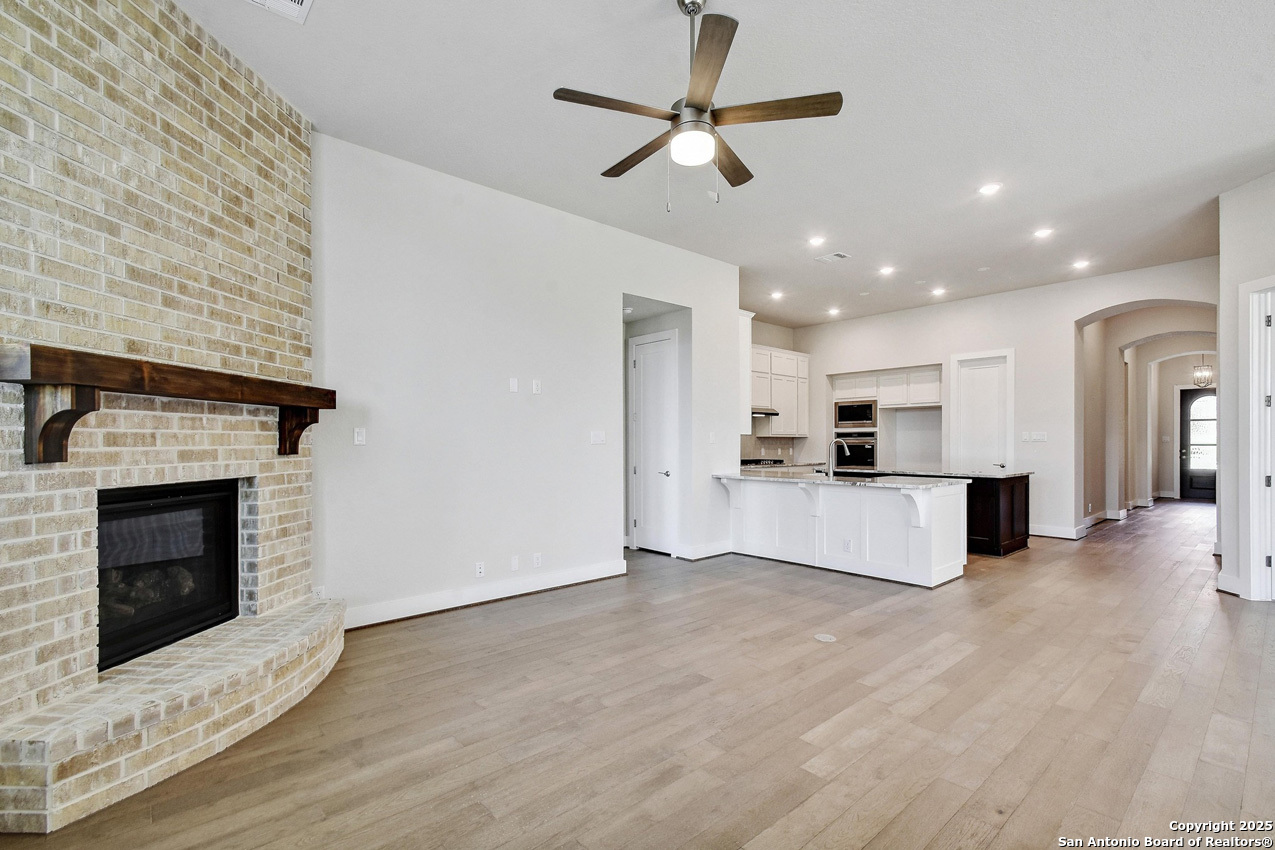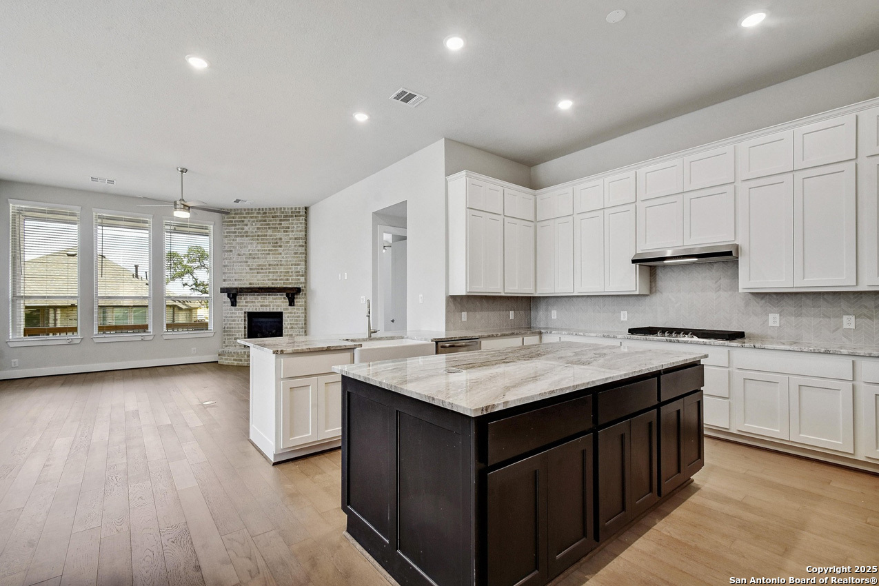 This ONE level brick home features a home office, wood floors, fireplace, free standing tub in primary bath, farmhouse sink, double ovens, alabaster cabinets, expanded secondary bedrooms, entertainment room-and the Kitchen is Huge with tons of counter top space!!! Home under construction with estimated July completion.