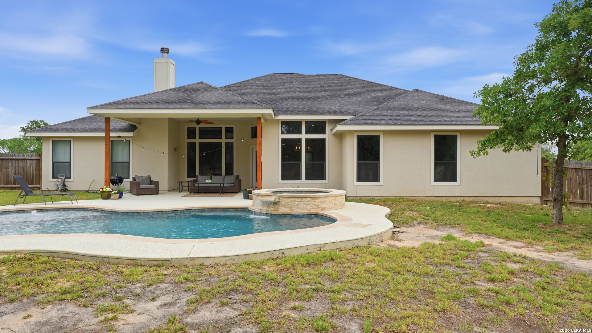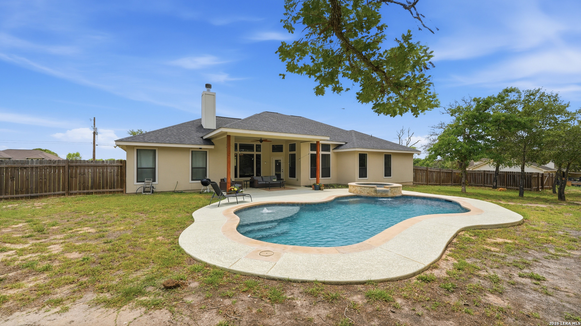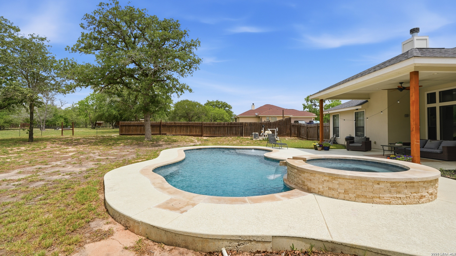 Beautifully maintained 4-bedroom, 2-bath home set on approximately 1.5 acres in the desirable La Vernia area, offering a rare combination of space, functionality, and standout features. The interior showcases a well-designed, open layout with tile flooring throughout the main living areas for durability and ease of maintenance. The kitchen serves as the heart of the home, featuring abundant counter space, generous cabinetry, and an oversized walk-in pantry. A large window fills the pantry with natural light, creating a unique and highly functional space; ideal for storage, organization, or even growing herbs and small plants indoors. All four bedrooms are generously sized, each offering its own walk-in closet, providing exceptional storage rarely found in comparable homes. The primary suite offers a comfortable and private retreat with an en-suite bath. Outdoor living is equally impressive, with a well-appointed in-ground pool and spa designed for both relaxation and entertaining. The spa is heated by a buried propane tank. The expansive 1.5-acre lot provides privacy, usable space, and flexibility for a variety of outdoor needs. Additional highlights include a 2-car garage, a layout suited for both everyday living and hosting, and a property that has been thoughtfully maintained throughout. Listed below CAD value, this home presents a compelling opportunity in a growing area.
