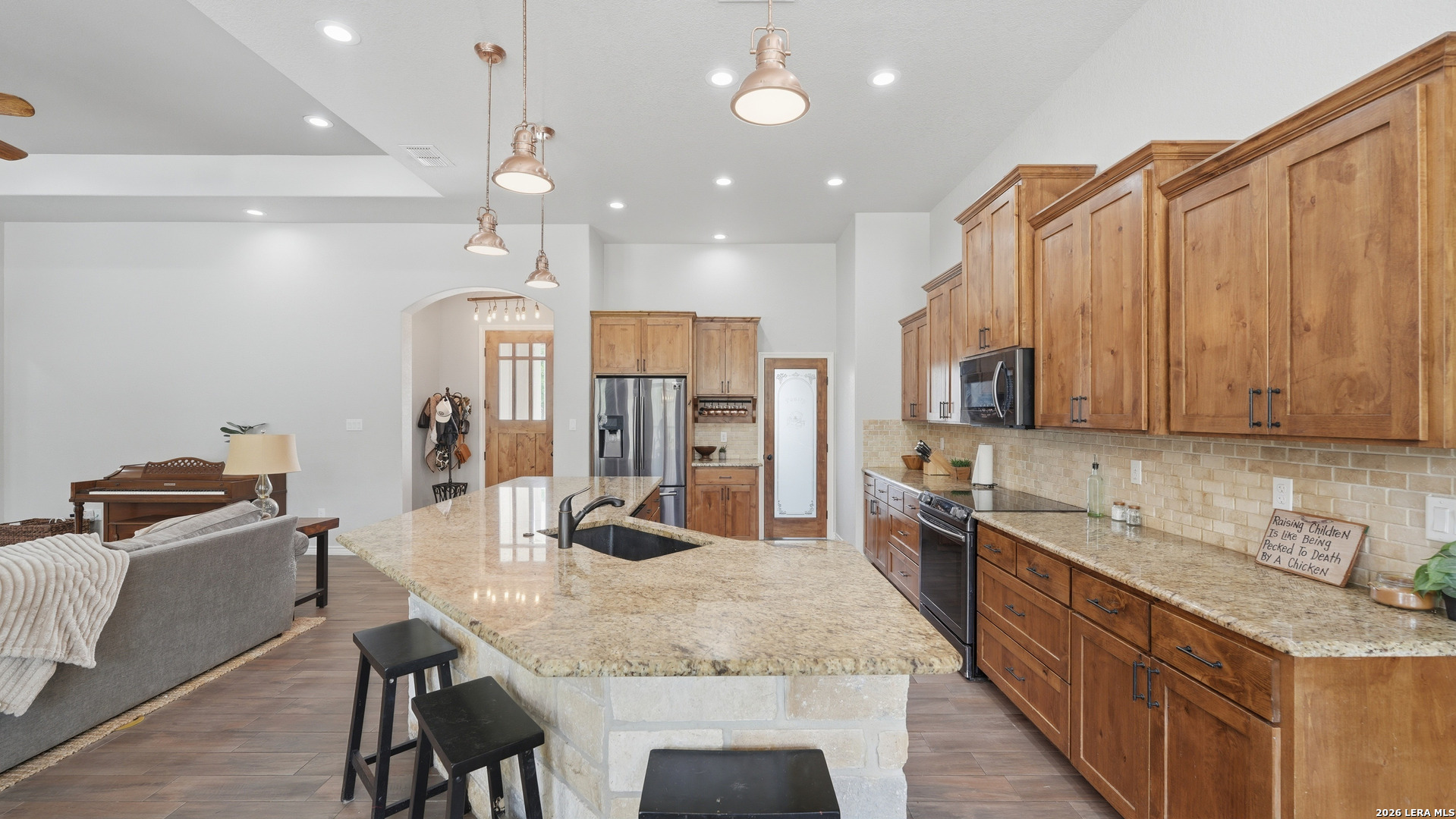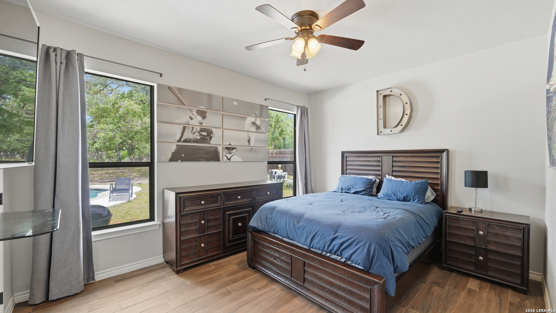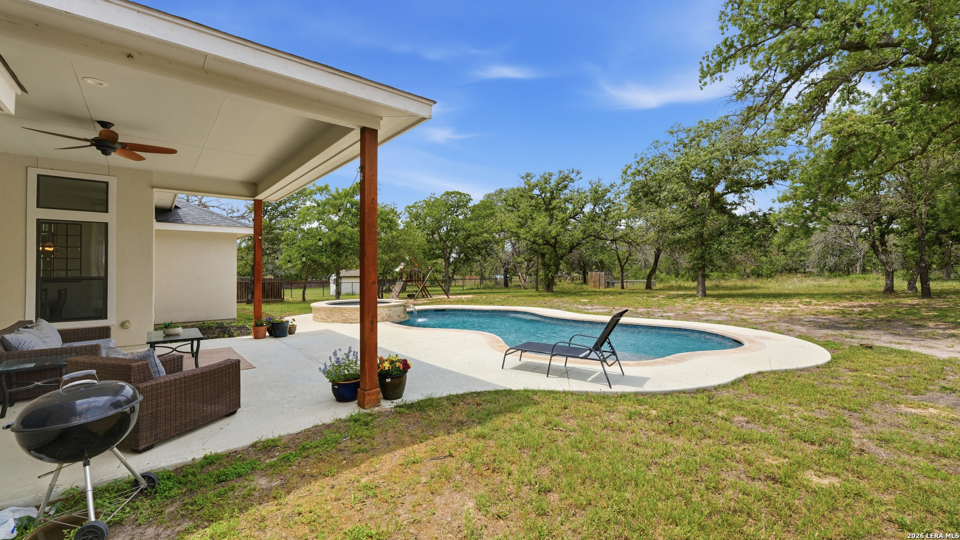 Beautifully maintained 4-bedroom, 2-bath home set on approximately 1.5 acres in the desirable La Vernia area, offering a rare combination of space, functionality, and standout features. The interior showcases a well-designed, open layout with tile flooring throughout the main living areas for durability and ease of maintenance. The kitchen serves as the heart of the home, featuring abundant counter space, generous cabinetry, and an oversized walk-in pantry. A large window fills the pantry with natural light, creating a unique and highly functional space; ideal for storage, organization, or even growing herbs and small plants indoors. All four bedrooms are generously sized, each offering its own walk-in closet, providing exceptional storage rarely found in comparable homes. The primary suite offers a comfortable and private retreat with an en-suite bath. Outdoor living is equally impressive, with a well-appointed in-ground pool and spa designed for both relaxation and entertaining. The spa is heated by a buried propane tank. The expansive 1.5-acre lot provides privacy, usable space, and flexibility for a variety of outdoor needs. Additional highlights include a 2-car garage, a layout suited for both everyday living and hosting, and a property that has been thoughtfully maintained throughout. Listed below CAD value, this home presents a compelling opportunity in a growing area.