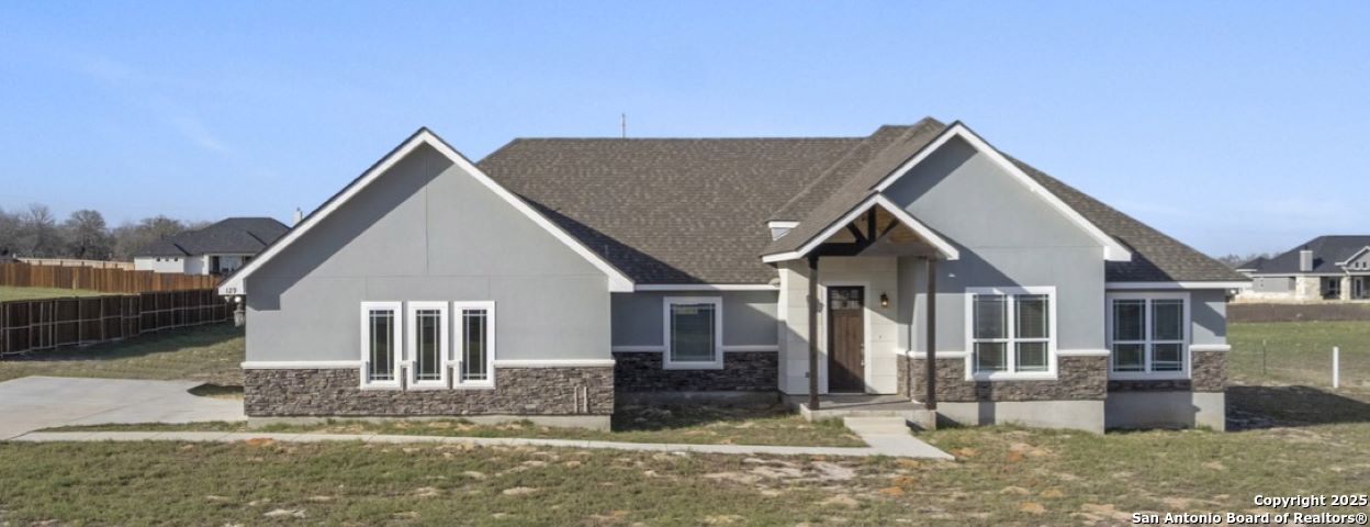 Seller is offering $20,000 in seller concessions!! Welcome to your new home! Here you have a custom-built, single-story residence nestled on a serene 1-acre lot in La Vernia, Texas. This thoughtfully designed home offers 4 bedrooms and 2.5 bathrooms, providing ample space for comfortable living. Upon entering, you'll be greeted by an open-concept layout that seamlessly connects the living, dining, and kitchen areas. The high vaulted ceilings with ambient lighting create an inviting atmosphere, while the energy-efficient features, including roof foam insulation and LED lighting, ensure modern comfort. The gourmet kitchen is a chef's delight, boasting custom-made solid maple wood cabinets, granite countertops, and under-cabinet lighting that enhances both functionality and style. Wood-like ceramic flooring adds warmth and elegance throughout the home. The spacious master suite serves as a private retreat, featuring a luxurious en-suite bathroom with a jacuzzi tub, a generous walk-in closet, and dual vanities. Three additional well-appointed bedrooms offer flexibility for family, guests, or a home office. Step outside to the expansive covered patio, perfect for outdoor entertaining or simply enjoying the tranquility of the surrounding landscape. The property's generous size provides ample opportunities for gardening, recreation, or future enhancements. Located in a quiet and well-spaced neighborhood, 129 Summer Meadow Drive offers the perfect blend of rural charm and modern amenities, making it an ideal place to for years to come.