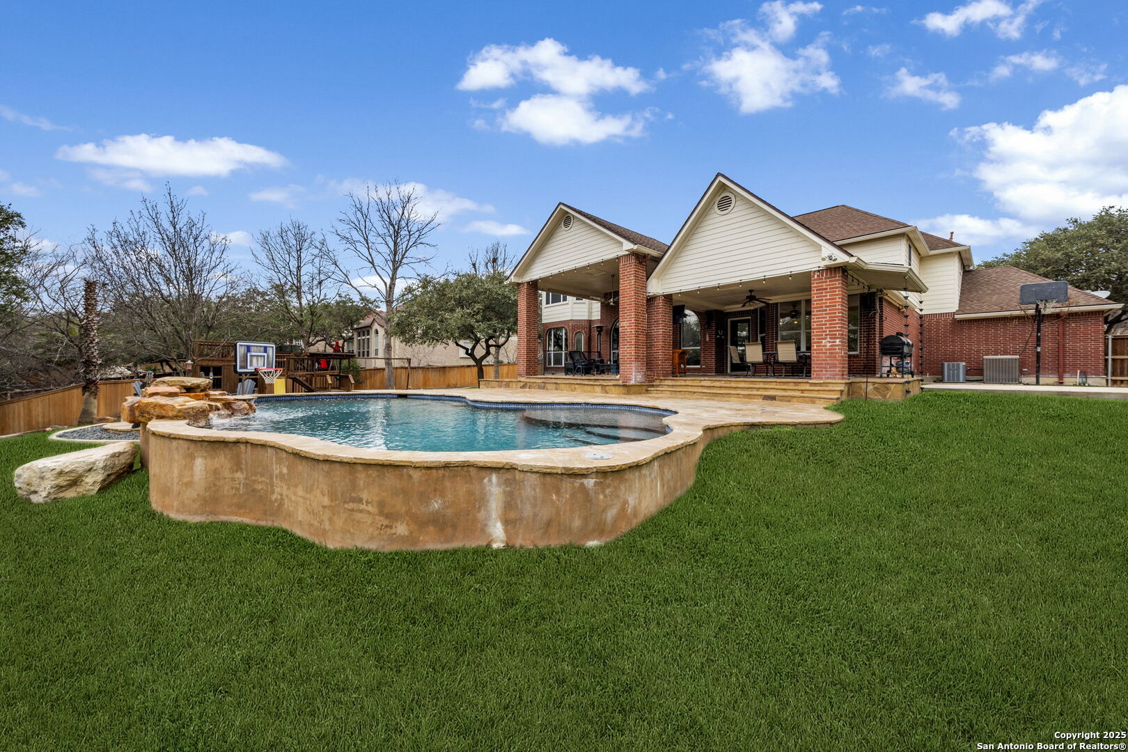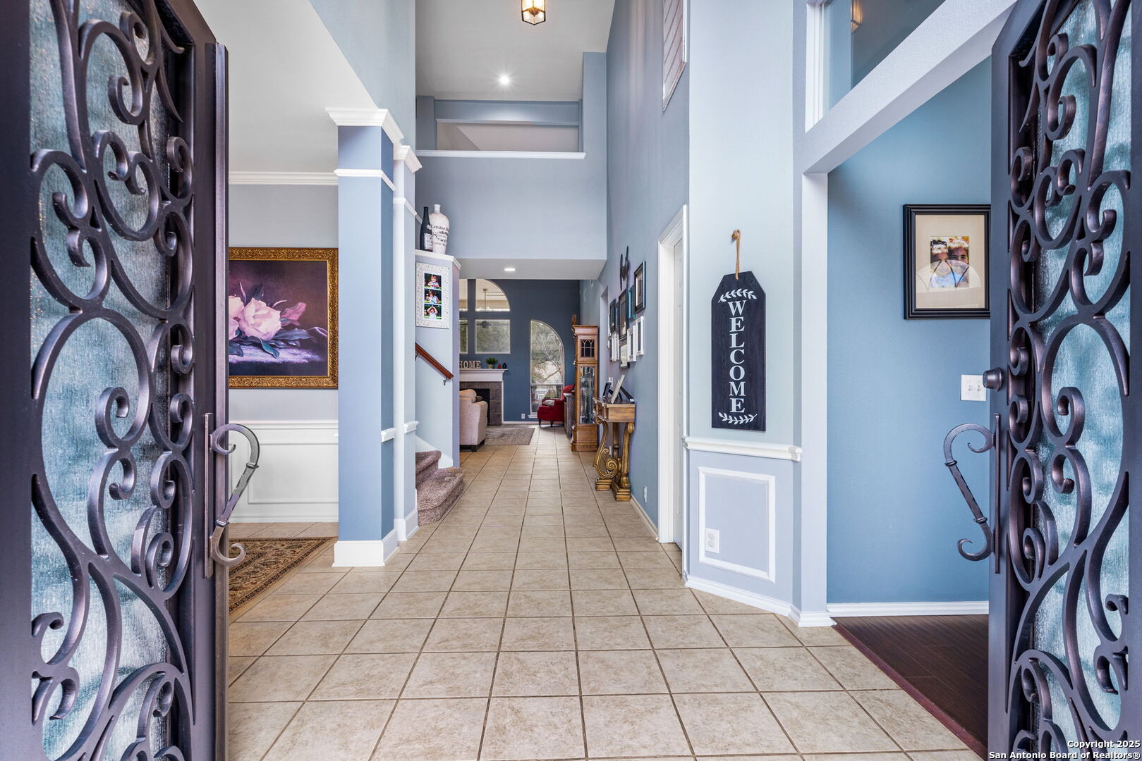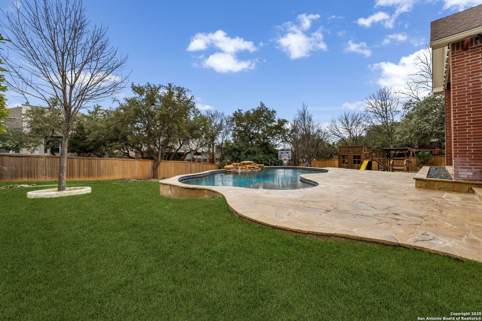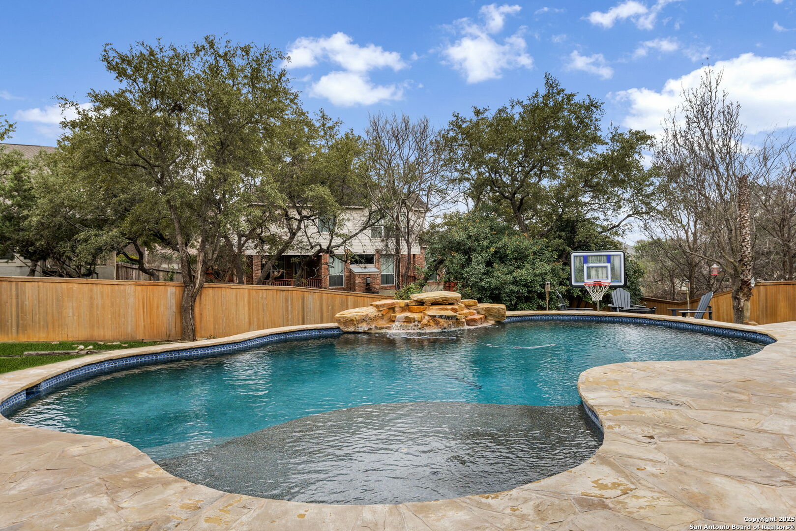 ** OPEN HOUSE SUNDAY FEB 16th 1pm-4pm** Welcome to your dream home! Nestled near the back of the highly desirable Vista Del Norte neighborhood, this beautiful 5-bedroom, 3.5-bath property offers 3,761 sqft of comfortable living space. Step through the grand double iron front doors and be greeted by soaring ceilings, a luxurious study, multiple dining areas, and an inviting open floor plan-perfect for entertaining. Upstairs, enjoy a spacious game room, while beautifully refreshed interiors with newer paint throughout enhance the charm of this stunning home. The heart of the home leads to a backyard paradise, featuring a stunning in-ground Keith Zars pool with flagstone decking, plenty of space for play, and a newer privacy fence for relaxation and seclusion. Upgrades include two newer AC units with 10-year warranties, a deluxe epoxy-coated garage floor, newer water heaters, and a water softener. The landscaping is breathtaking, with limestone borders, river rock flower beds, and a sprinkler system to keep everything lush. Additionally, enjoy thoughtful touches like window solar screens and a Gemstone LED light system to brighten your evenings. Enjoy all the neighborhood amenities, including a tennis and sports court, plus a summer swim team for the kids. Conveniently located near Hardberger Park and Alon Shopping Center, with easy access to Wurzbach Parkway and schools, this meticulously maintained property offers the perfect blend of luxury and location-don't miss your chance to call it home!