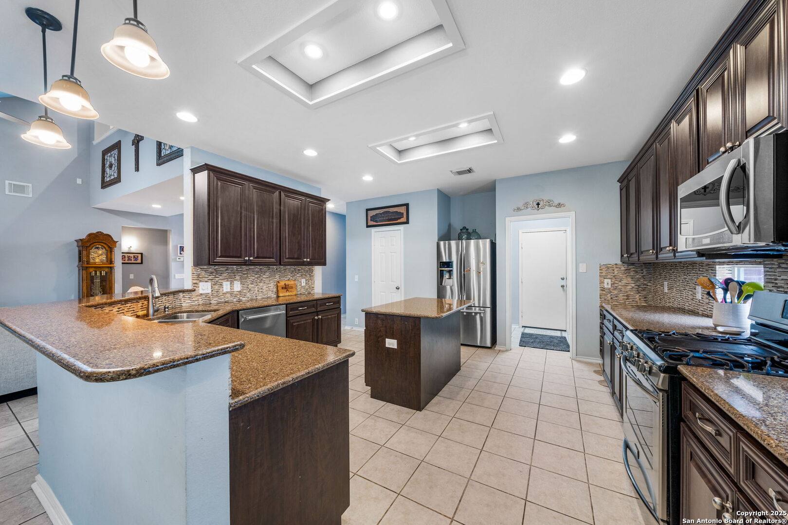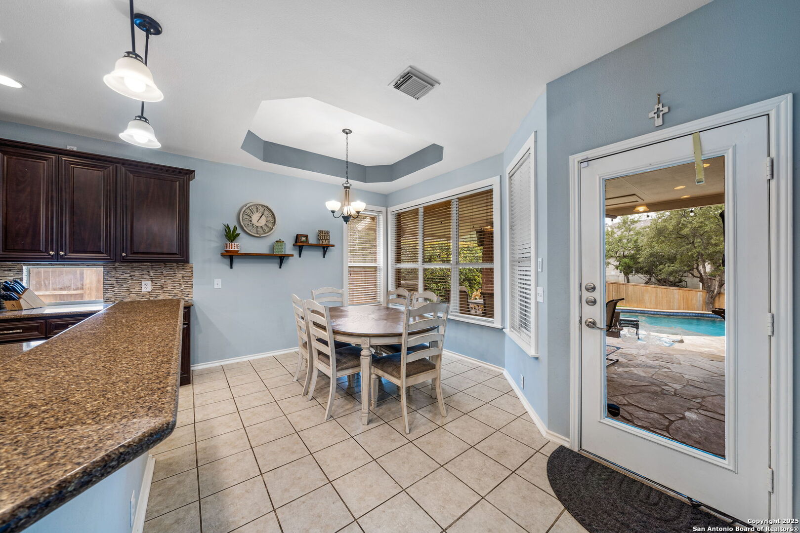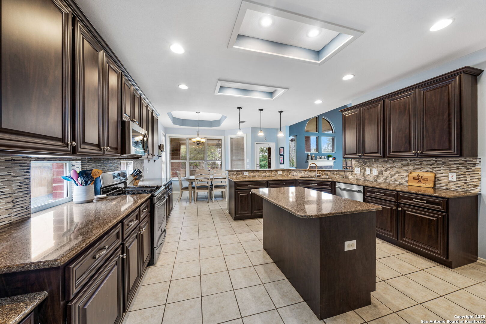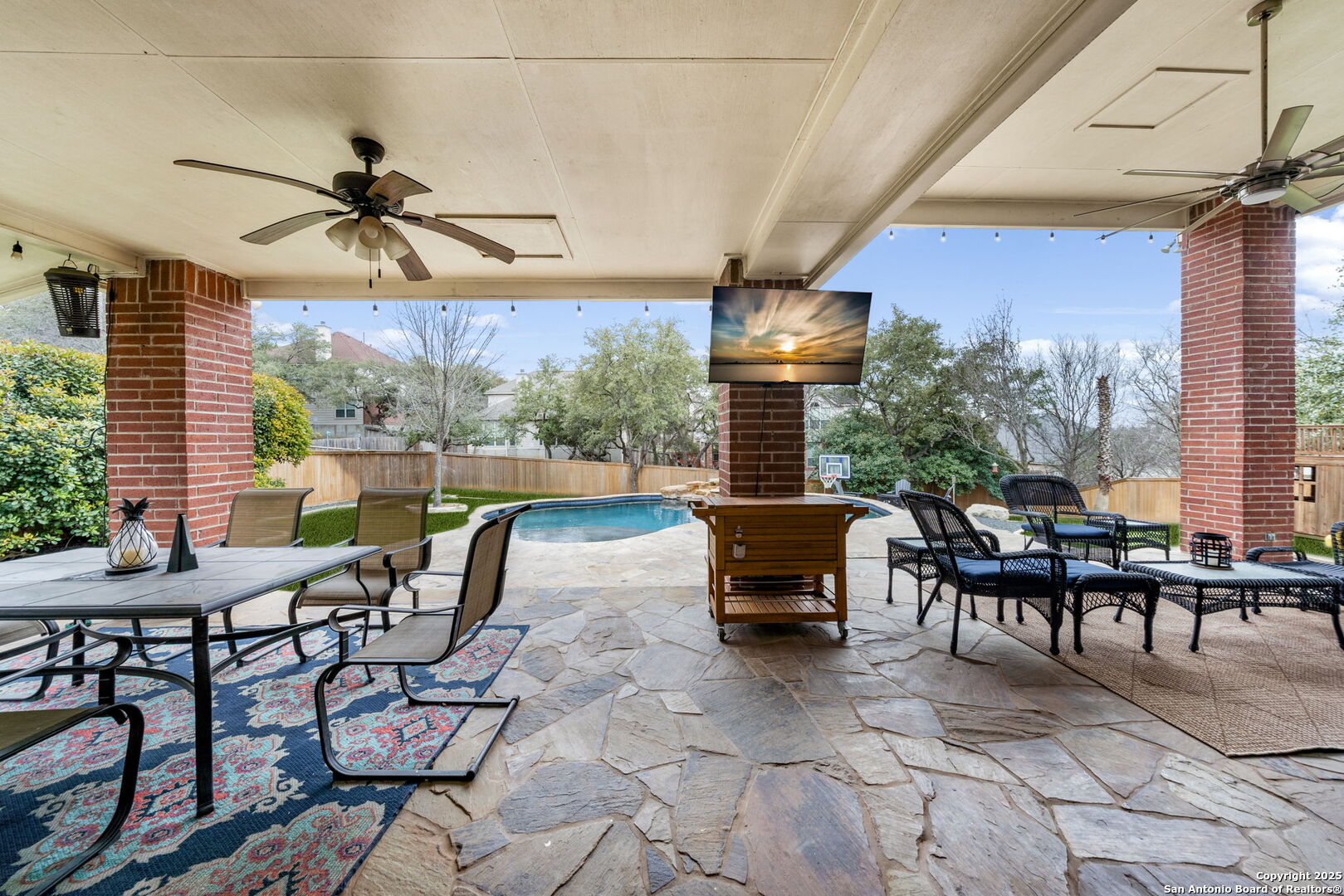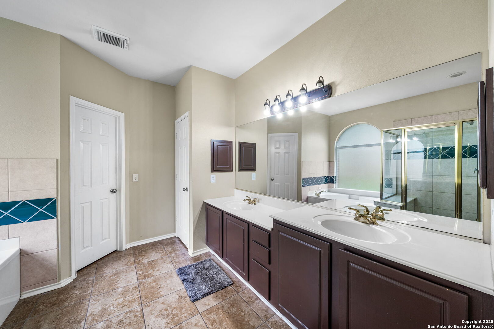 ** OPEN HOUSE SUNDAY FEB 16th 1pm-4pm** Welcome to your dream home! Nestled near the back of the highly desirable Vista Del Norte neighborhood, this beautiful 5-bedroom, 3.5-bath property offers 3,761 sqft of comfortable living space. Step through the grand double iron front doors and be greeted by soaring ceilings, a luxurious study, multiple dining areas, and an inviting open floor plan-perfect for entertaining. Upstairs, enjoy a spacious game room, while beautifully refreshed interiors with newer paint throughout enhance the charm of this stunning home. The heart of the home leads to a backyard paradise, featuring a stunning in-ground Keith Zars pool with flagstone decking, plenty of space for play, and a newer privacy fence for relaxation and seclusion. Upgrades include two newer AC units with 10-year warranties, a deluxe epoxy-coated garage floor, newer water heaters, and a water softener. The landscaping is breathtaking, with limestone borders, river rock flower beds, and a sprinkler system to keep everything lush. Additionally, enjoy thoughtful touches like window solar screens and a Gemstone LED light system to brighten your evenings. Enjoy all the neighborhood amenities, including a tennis and sports court, plus a summer swim team for the kids. Conveniently located near Hardberger Park and Alon Shopping Center, with easy access to Wurzbach Parkway and schools, this meticulously maintained property offers the perfect blend of luxury and location-don't miss your chance to call it home!