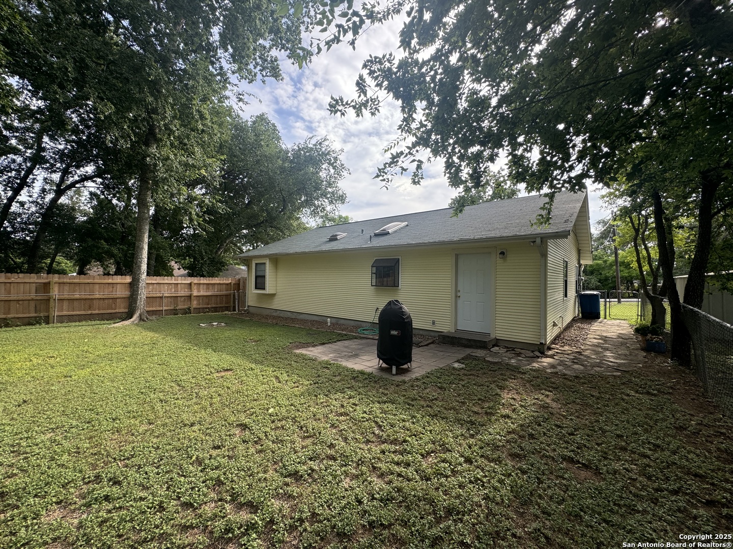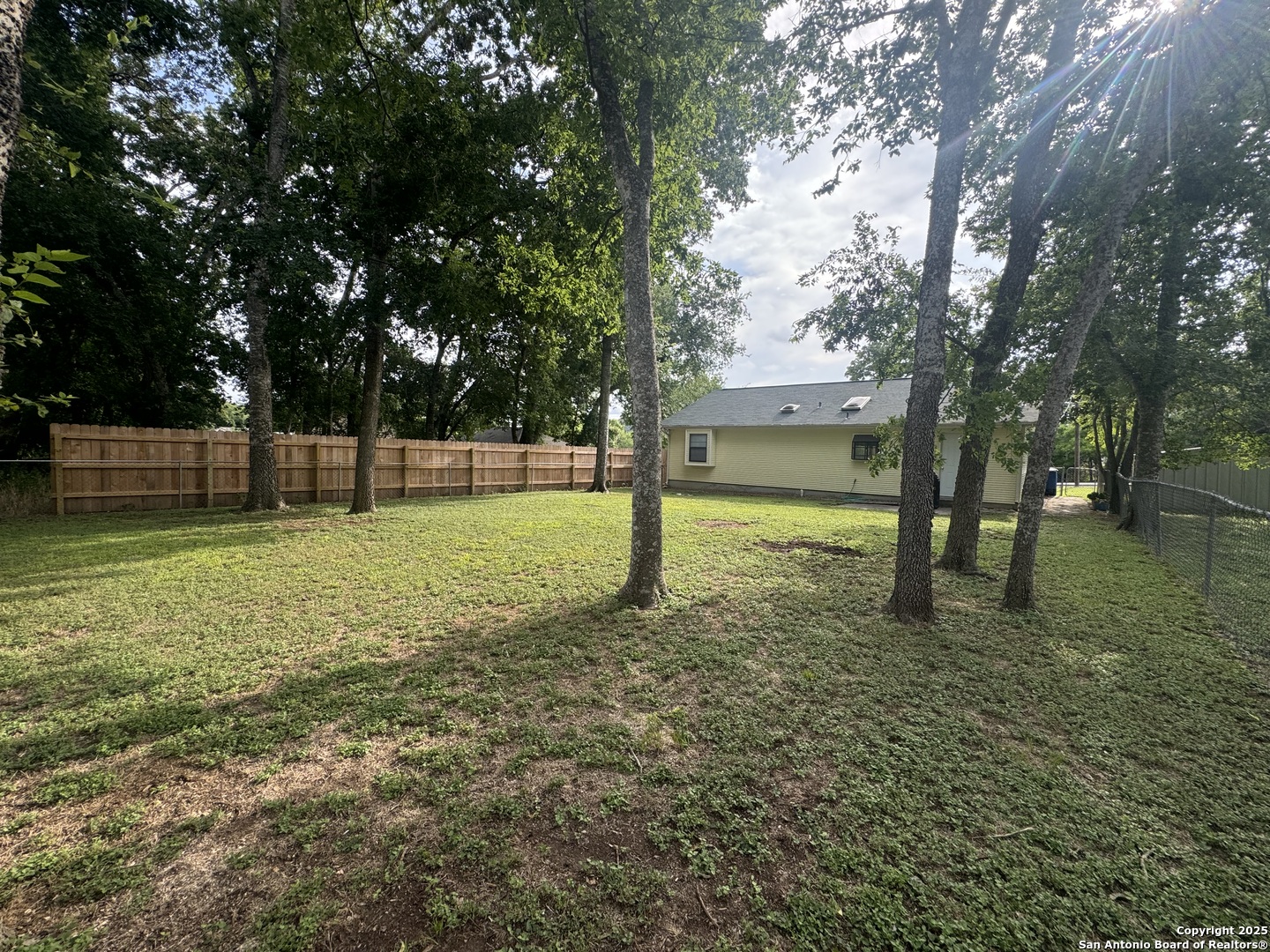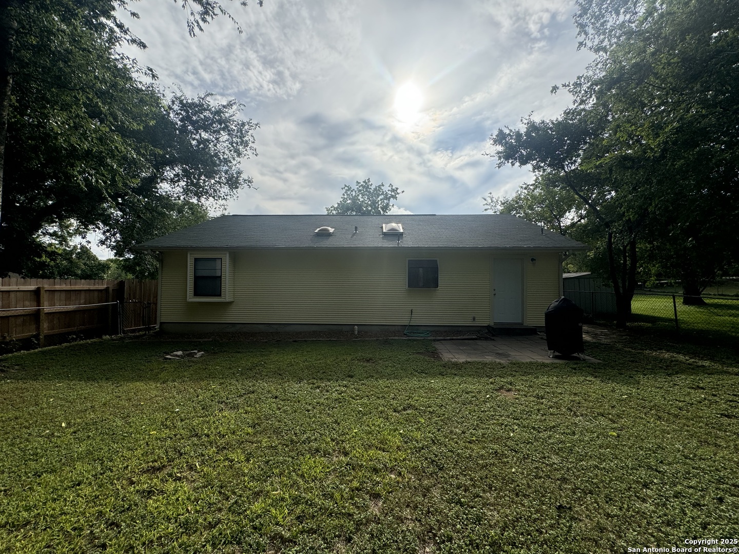 Welcome to this adorable single story home with 2-bedroom, 1 bath located in the prestigious Horseshoe Falls Estates! Step inside to find a welcoming open-concept kitchen & living area, featuring a cozy window bench with extra storage space. The bright kitchen features a skylight, breakfast bar, ample cabinet space, fridge, washer/dryer hookups, microwave, dishwasher and smooth top stove/oven. Centrally located between the two bedrooms, this single bath features a single vanity, tub/shower combo and a skylight which fills the room with natural light. Each bedroom is generously sized, each with ceiling fans and spacious closets. Outside, enjoy the fenced-in backyard, perfect for relaxing under the mature trees and appreciating the wildlife. Additional features include a storage shed on the side of the property and private access to the Guadalupe River for kayaking and tubing. Single-car garage with additional storage space & a workbench. HVAC system replaced July/2024. Near Yogi Bear's Jellystone Park-Camp Resort, Camp Fimfo Tx & Whitewater Amphitheater. Animal Policy: 1-small dog under 25lbs w/ Landlord approval-NO CATS