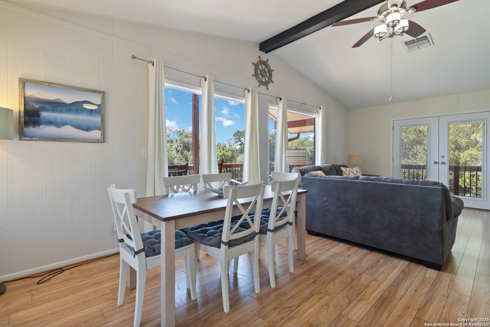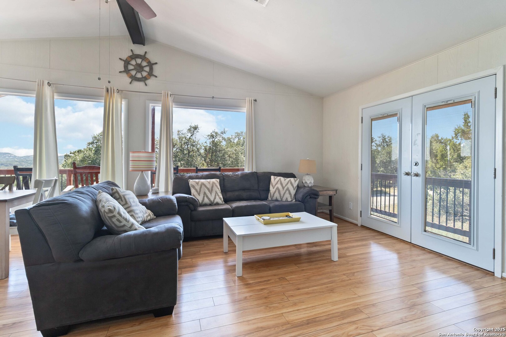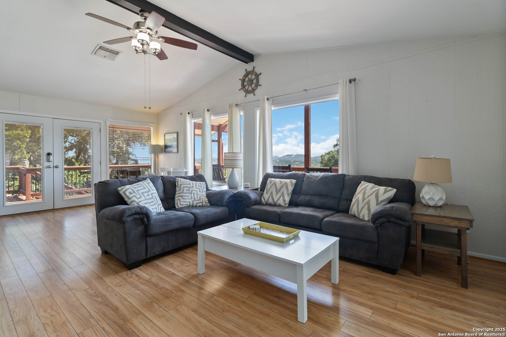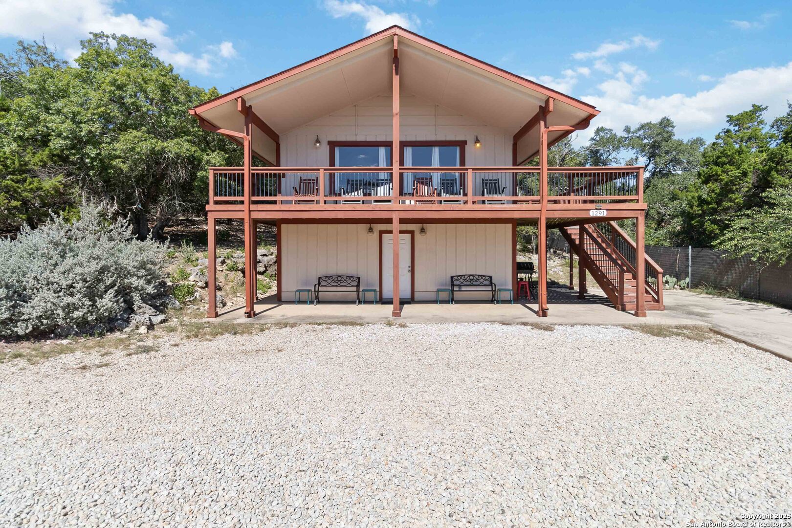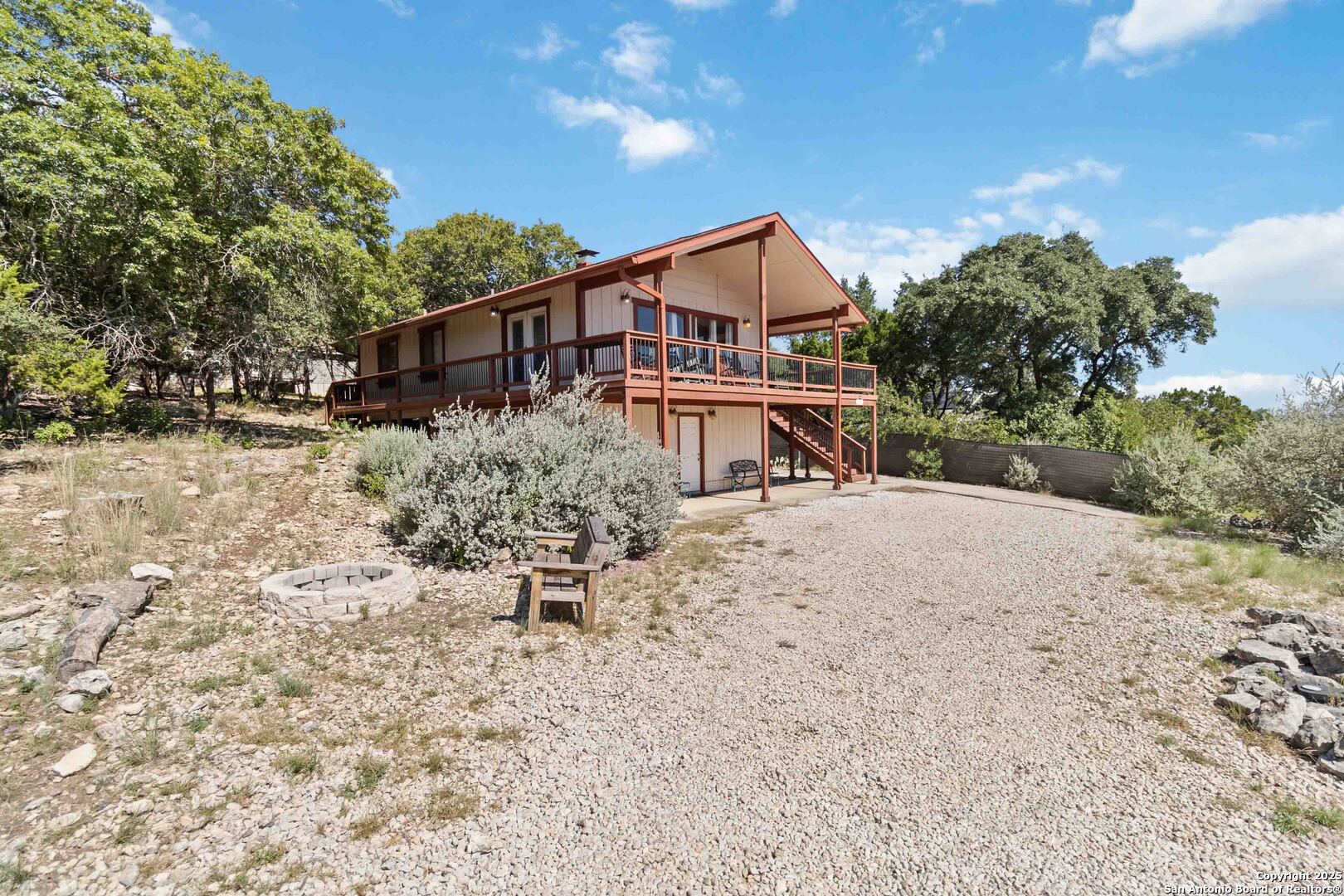 South Canyon Lake gem! Currently an active & proven Airbnb and perfect opportunity for a personal retreat, full-time residence or add it to your income producing portfolio. Pull up a rocking chair on the expansive wraparound deck & enjoy the peaceful lake views. The stylish furnishings convey with acceptable offer in this sparkling 2-bedroom home featuring a cozy fireplace, updated flooring, and a versatile downstairs space that can function as a second living/game room or a third bedroom. With full baths on both levels-including a recently remodeled downstairs bath-comfort and convenience are built in.The rocked circular driveway is perfect for hosting gatherings, and the included adjacent vacant lot adds privacy and extra value. Community amenities include a club house and community pool. Property qualifies for Zero Down USDA financing-don't miss this opportunity to own a versatile Canyon Lake property - a rare find for buyers seeking serene hill country retreats with potential for income use! This home is part of a 4-property Airbnb portfolio, and the seller will consider multiple-property sales.