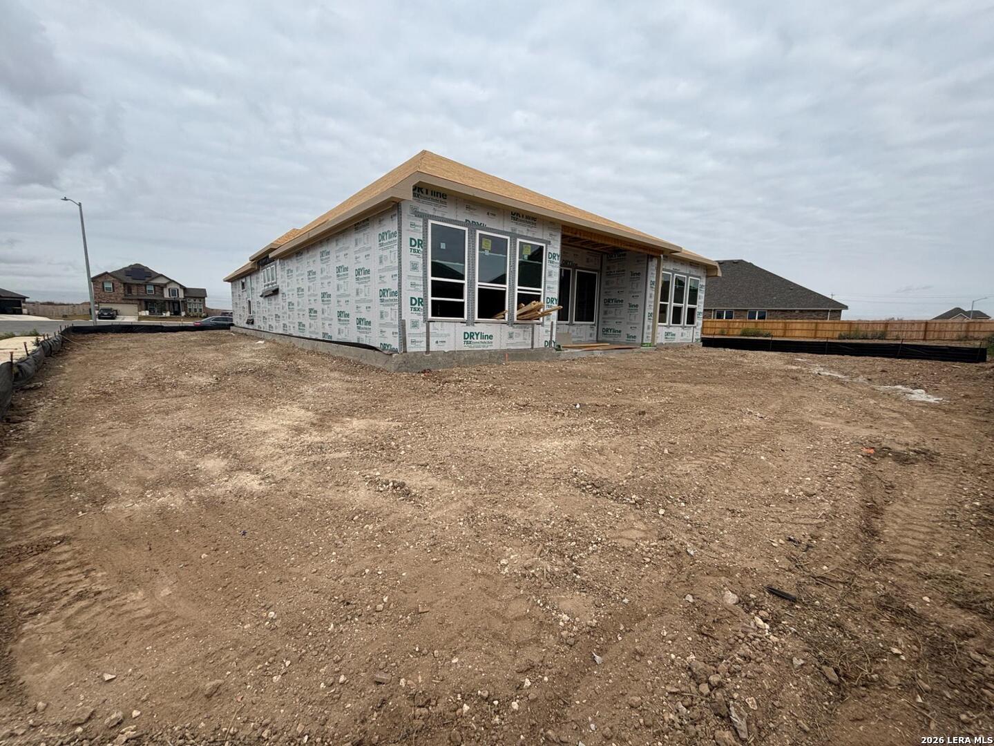 This single-story home has 3 beds, 2.5 baths, and a 3-car garage. The open living and dining layout creates a welcoming flow, complemented by a private study with doors that is perfect for working from home or quiet retreat space. The eat in kitchen features a center island, walk in pantry, built in oven, cooktop, microwave, and pendant lighting. The primary suite is complete with a ceiling fan, generous walk-in closet, and a spa inspired bath with a free-standing tub, mud set shower, and separate vanities. Covered patio, privacy fence, and sprinkler system included, providing a comfortable space to relax or host guests. This home features design selections carefully curated by our studio team. Every finish, from flooring and cabinetry to countertops and details, is chosen to create a cohesive, stylish, and welcoming space that feels beautifully balanced from the moment you step inside. This home is in Saddlebrook Ranch, a master-planned community in Schertz, offering easy access to I-35, shopping, dining, Randolph AFB, a pool, playground, and top-rated schools.