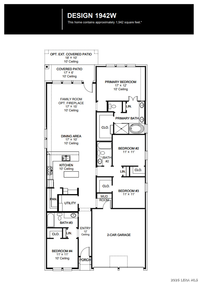 Entry welcomes you with a 12-foot ceiling. Open kitchen offers a center island, a 5-burner gas cooktop and spacious pantry. Dining area flows into open family room with wall of windows. Secluded primary suite includes primary bath with dual vanities, garden tub, separate glass-enclosed shower and a large walk-in closet. Abundant closet space in the secondary bedrooms. Covered backyard patio. Mud room off the two-car garage.