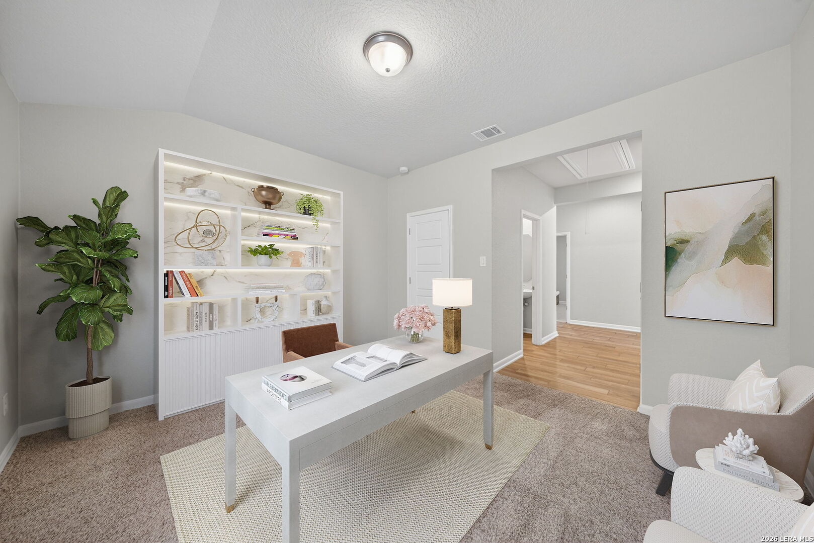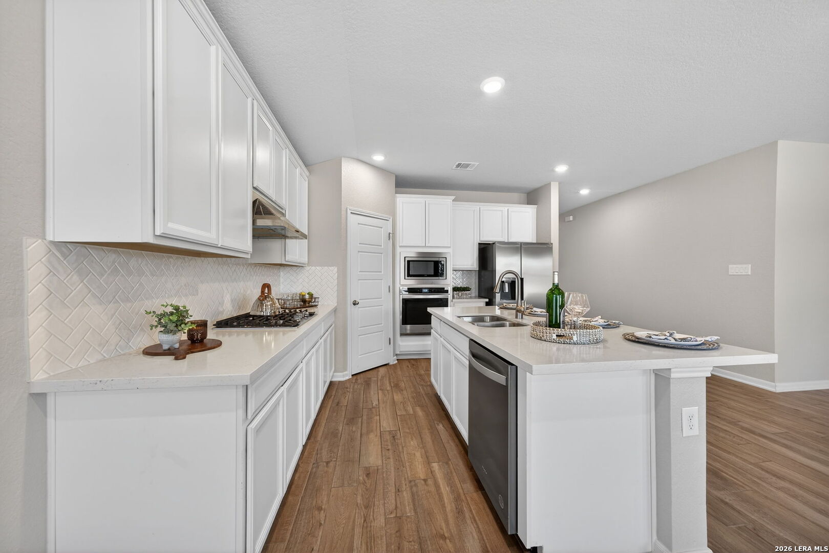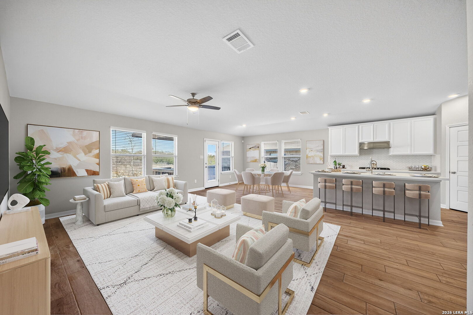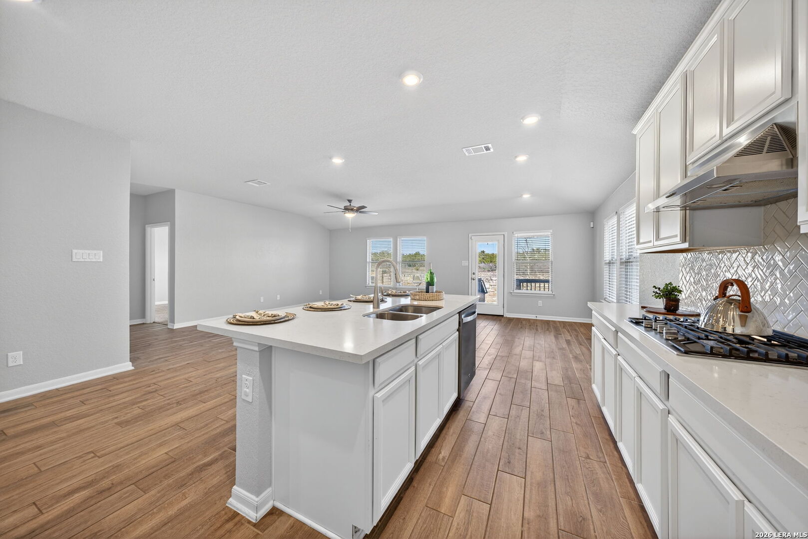 Welcome to 12915 Louberg Valley in highly desirable Northwest San Antonio! This thoughtfully designed one-story home offers 3 bedrooms, 2.5 baths, and a versatile flex room ideal for a home office, media room, playroom, or fitness space, perfectly suited for today's flexible lifestyles. The bright white island kitchen serves as the heart of the home, featuring a built-in oven, gas cooktop, abundant cabinetry, and generous prep space for gathering and everyday living. The spacious primary suite provides a relaxing retreat with a walk-in shower, garden tub, and impressive closet space. Additional highlights include a large laundry room with extra storage, energy-efficient construction to help keep utility costs manageable, and a covered back patio with scenic view. Located in the popular Trails of Westpointe community, residents enjoy resort-style amenities and convenient access to top-rated Northside ISD schools, Harmony School of Science, shopping, dining, and major highways. Move-in ready and offering strong value. Seller is ready to review offers and work collaboratively with serious buyers. Schedule a showing today!
