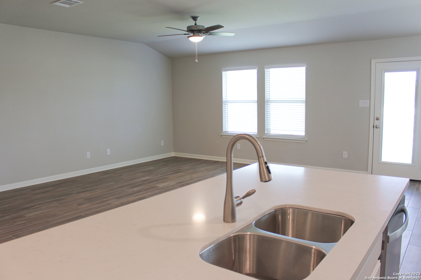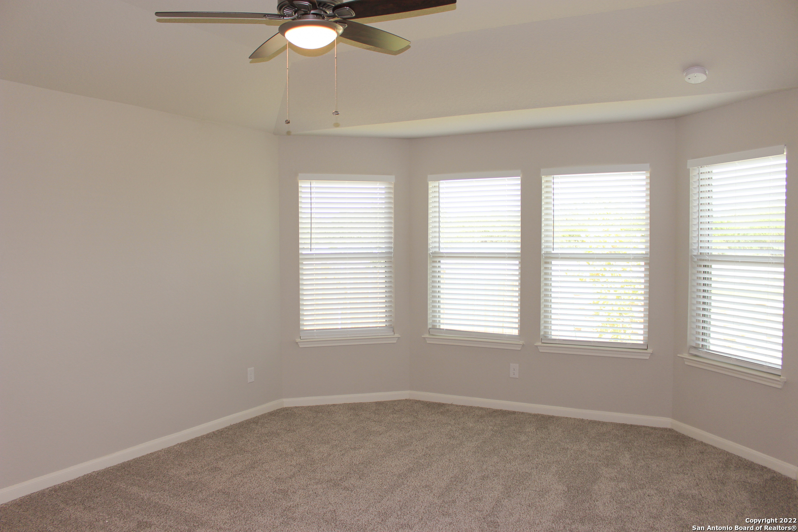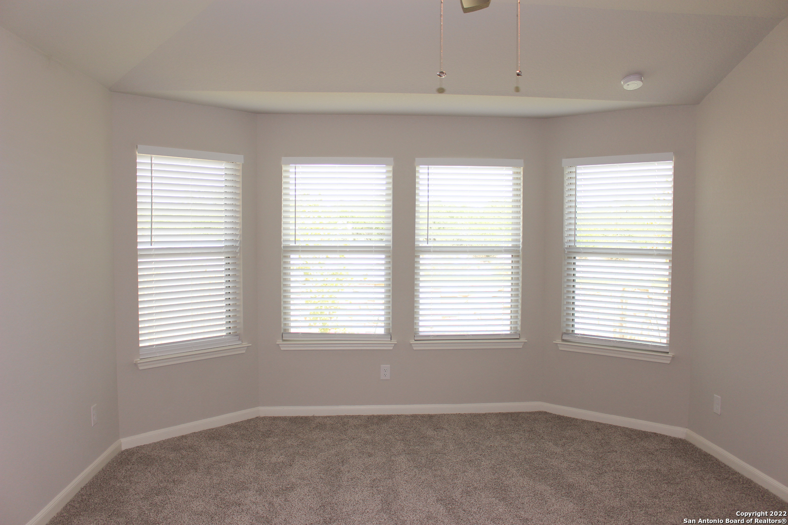 Energy efficient Meritage Home in popular Trails of Westpointe with fantastic neighborhood amenities to enjoy! Beautiful and functional one story, open floor plan with 3 bedrooms, 2 1/2 baths and convenient flex room perfect for an at home office, 2nd living/media room, playroom, exercise room or hobby/craft space. Gorgeous white island kitchen with built-in oven and gas cooktop. Spacious master bedroom with walk-in shower, garden tub and fabulous closet space. Don't miss the large laundry room perfect for extra storage and covered back patio with hill country view! Close proximity to quality Northside schools, sought after Harmony School of Science and ready for immediate move-in.