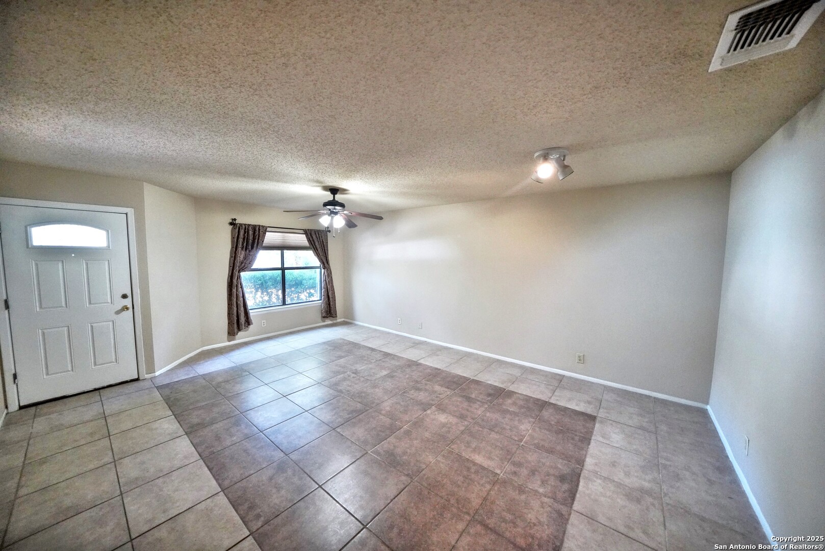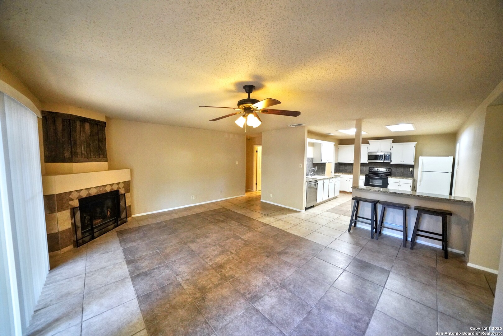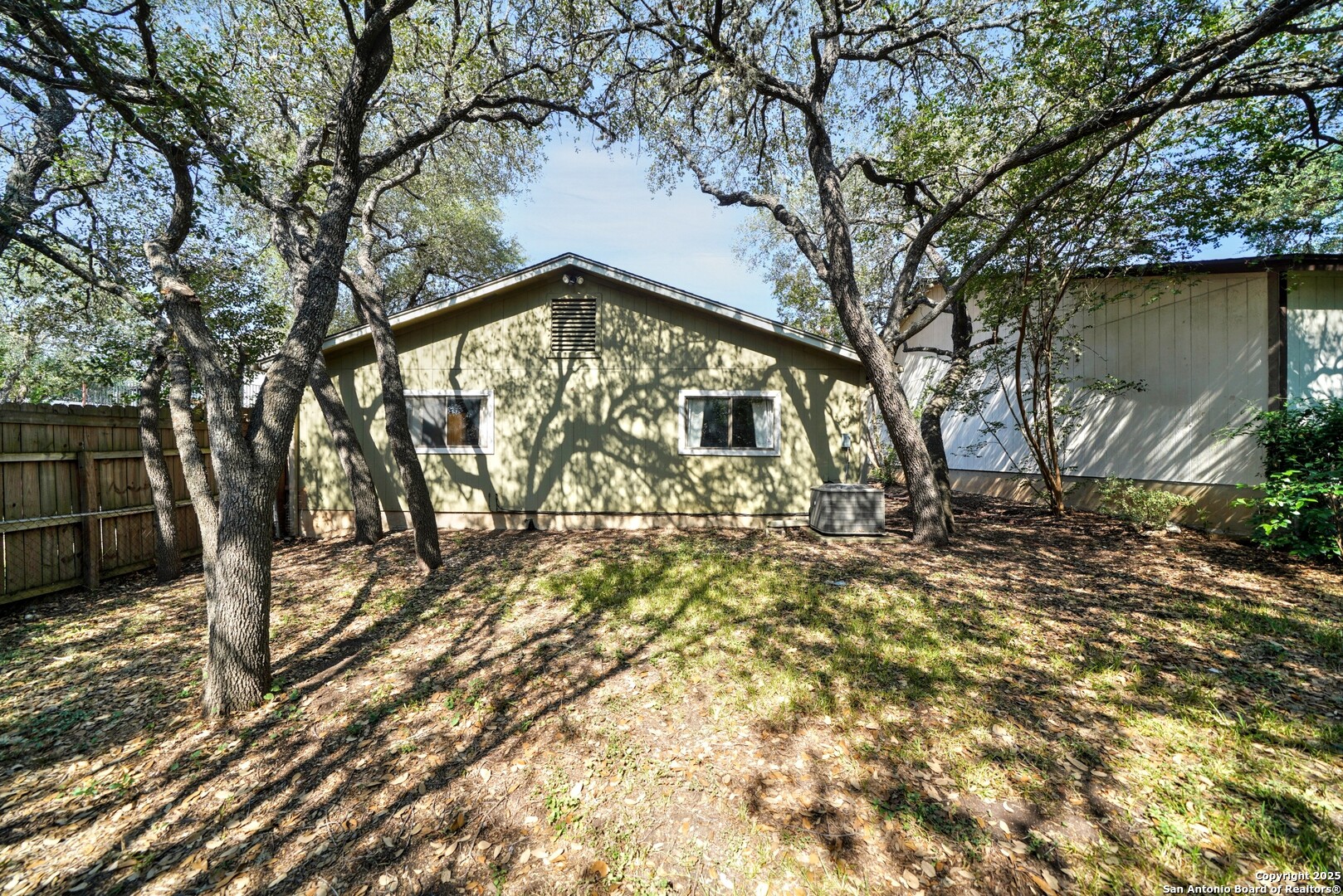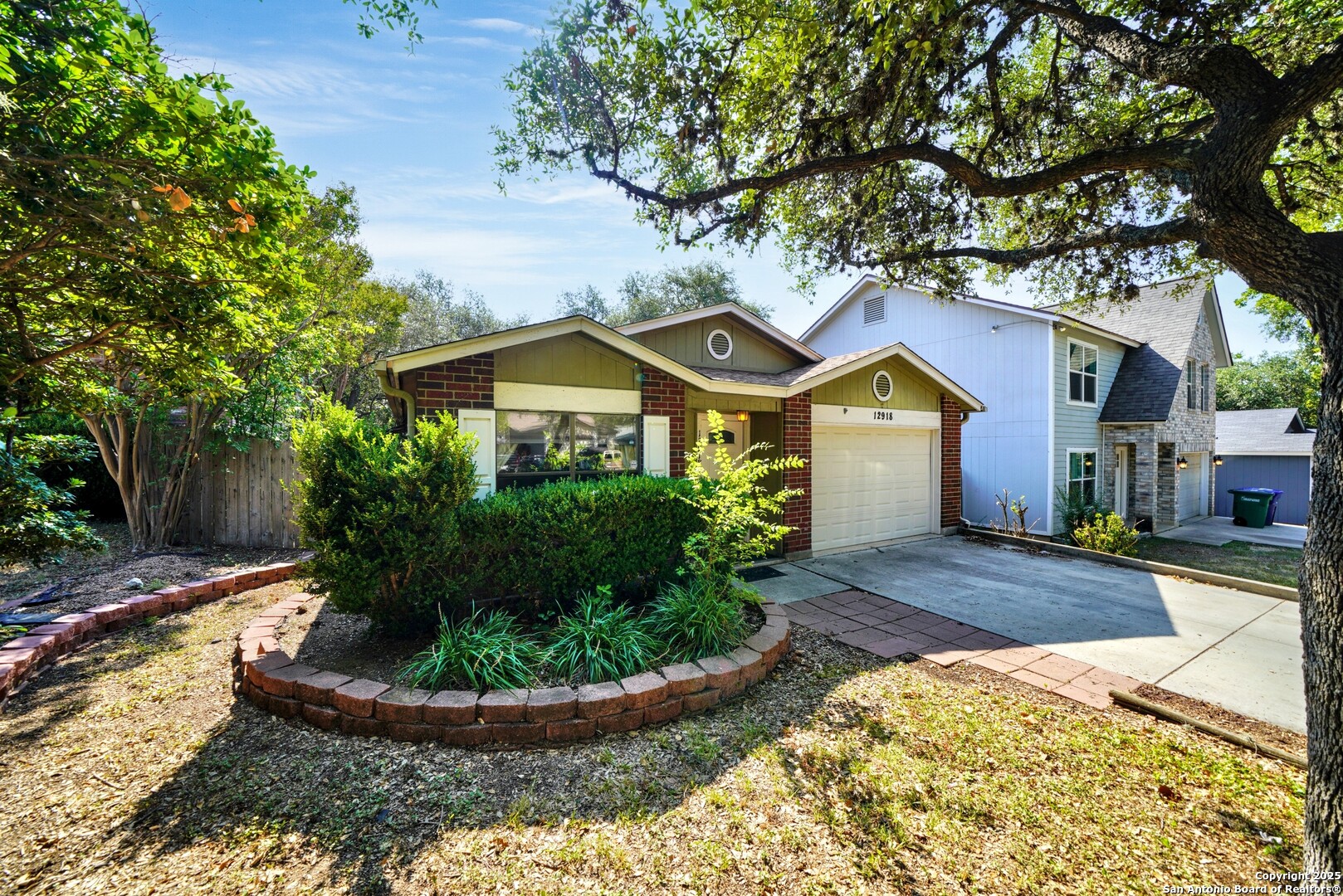 Charming 3-bedroom, 2-bathroom home now available in the highly desirable Hunters Chase subdivision, located in the heart of San Antonio's Northwest side. Step inside to find an inviting entryway that opens into the first of two living areas, highlighted by expansive ceramic tile flooring that flows seamlessly through the common spaces. The main living room features a cozy wood-burning fireplace and connects directly to the kitchen, creating an ideal setting for both everyday living and entertaining. The beautifully updated kitchen offers granite countertops, a stylish tiled backsplash, abundant cabinetry, and comes fully equipped with all appliances-including a refrigerator. The spacious primary suite includes a full en-suite bathroom with a single vanity and a tub/shower combination. Both secondary bedrooms are generously sized and each includes a ceiling fan for added comfort. The backyard is a true retreat, with mature trees providing shade and plenty of space for outdoor enjoyment. Conveniently located near Loop 1604, UTSA, USAA, and the Medical Center, this home combines comfort, charm, and accessibility. Truly a pleasure to show.