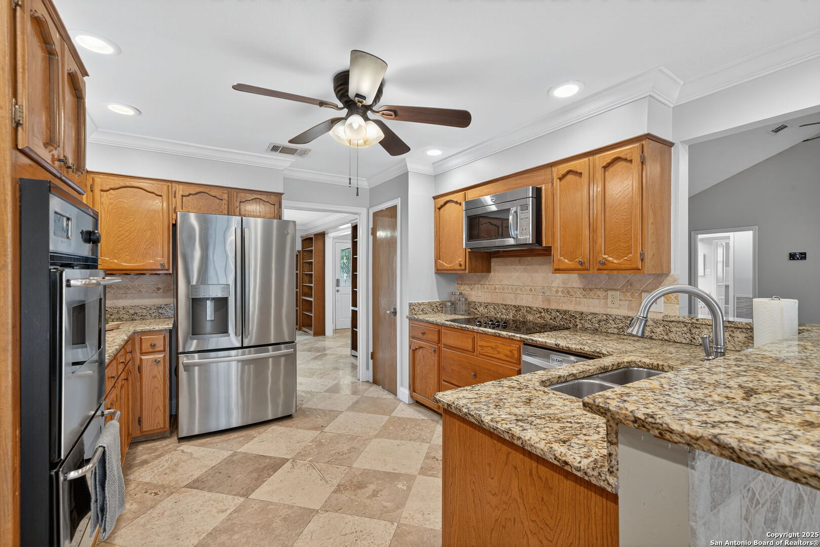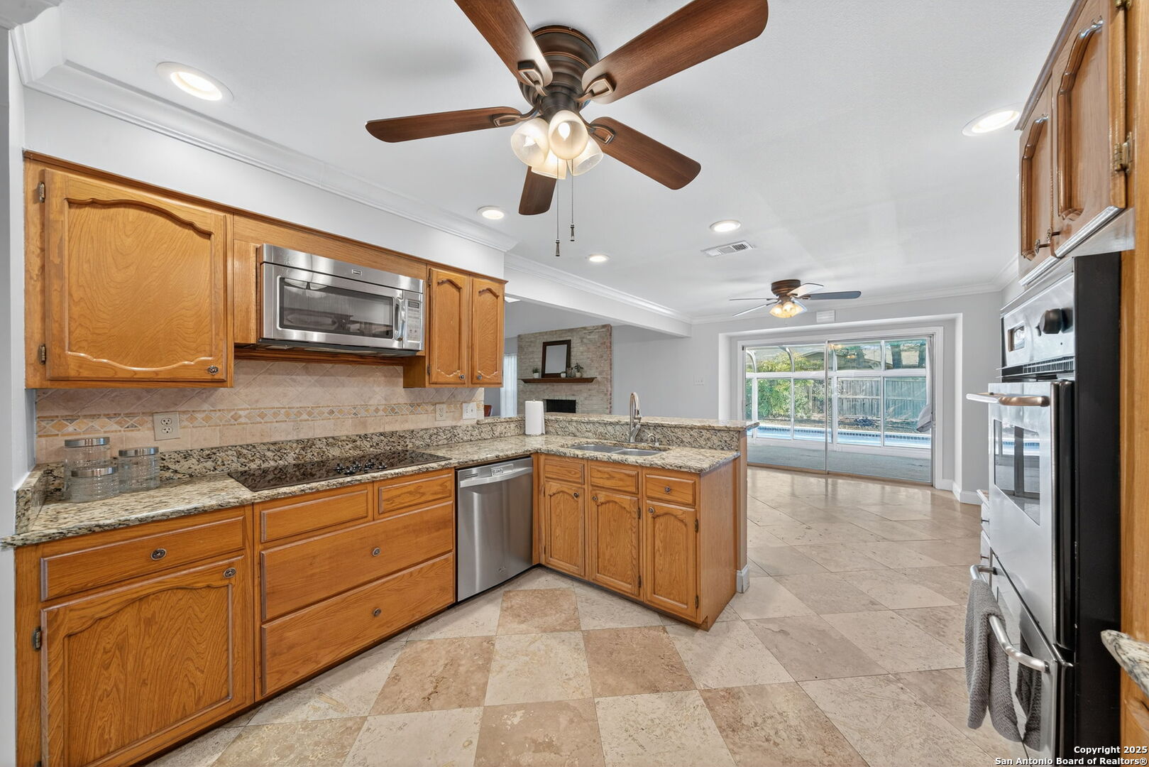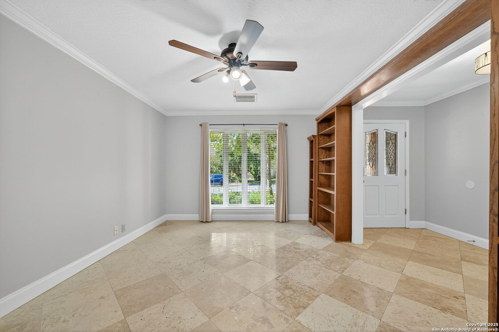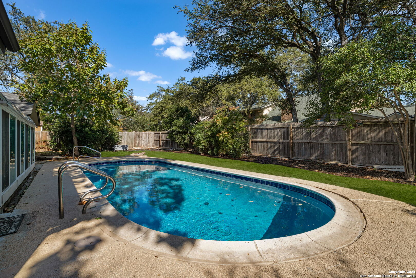 Welcome to 12918 Queens Forest, a beautifully maintained one-story home nestled in the serene Park Forest community of north central San Antonio. This charming residence offers a perfect blend of comfort, style, and functionality, making it an ideal choice for anyone looking for a peaceful retreat. With 3 bedrooms and 2 bathrooms, the home spans 2,041 sq ft, providing ample space for relaxation and entertainment. The versatile layout ensures that every room serves a purpose, catering to your unique needs. The open-concept living and dining areas flow effortlessly for seamless entertaining. Formal dining room is a very good size at 15X12. It is easily usable as an office/study. Versatile Sun Room, equipped with it's own HVAC system, can be transformed into an additional living area, a home gym, or a cozy reading room, offering endless possibilities to suit your lifestyle. Step outside to discover a backyard oasis. Whether you are lounging by the sparkling inground pool, hosting a barbecue, or simply enjoying the tranquility, this space is perfect for outdoor living. Some of the updates that have been done in this home include: new windows approx 10 yrs ago, kitchen ceiling was elevated during its remodeling, granite counters installed in kitchen, heavy composition roof installed approx 8-10 yrs ago, pool safety drain installed approx 3 yrs ago when pool was replastered, new garage doors and openers plus a brand new water heater installed in 2025.