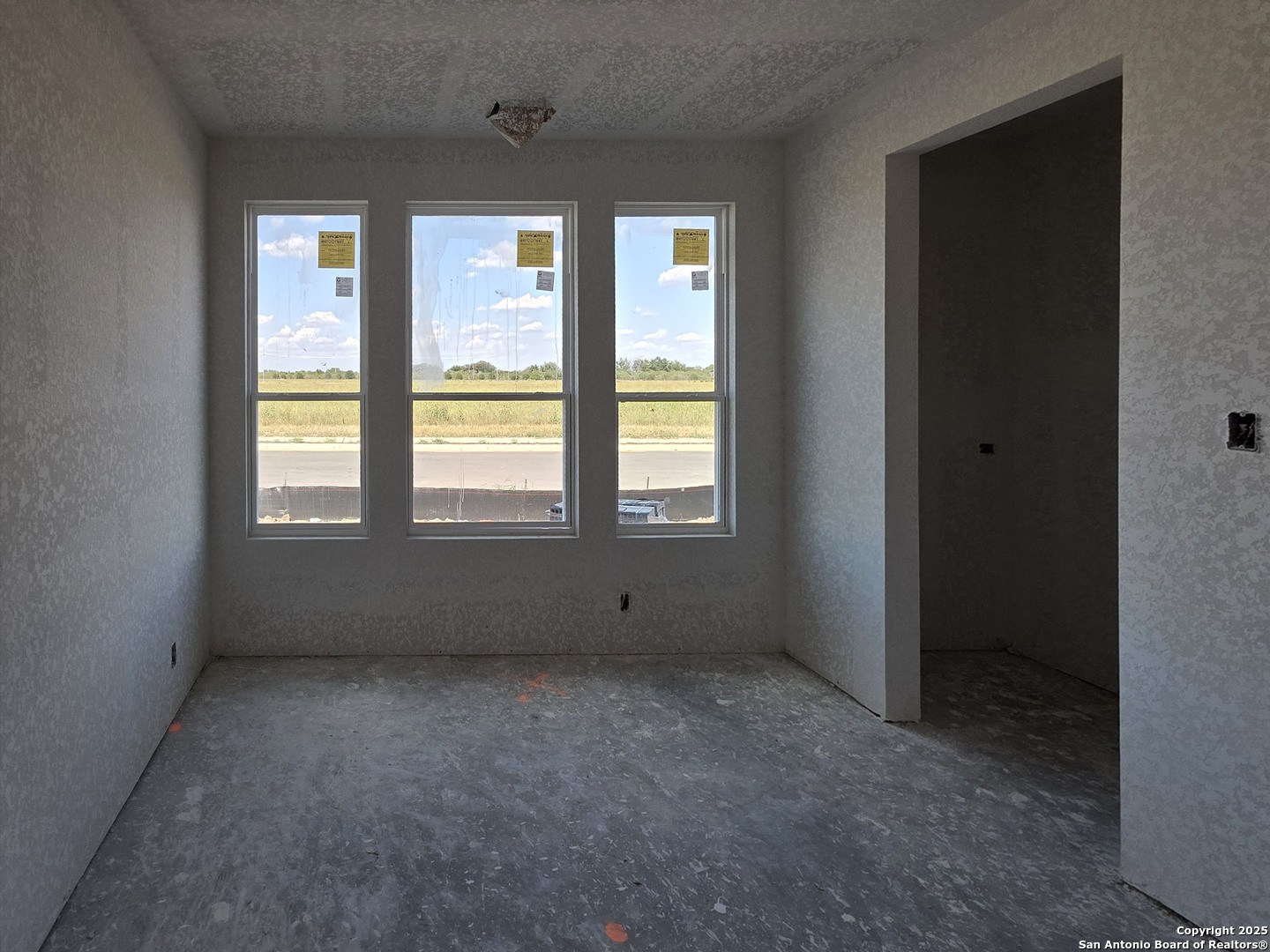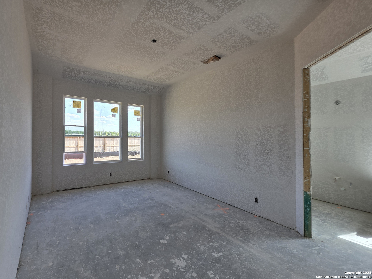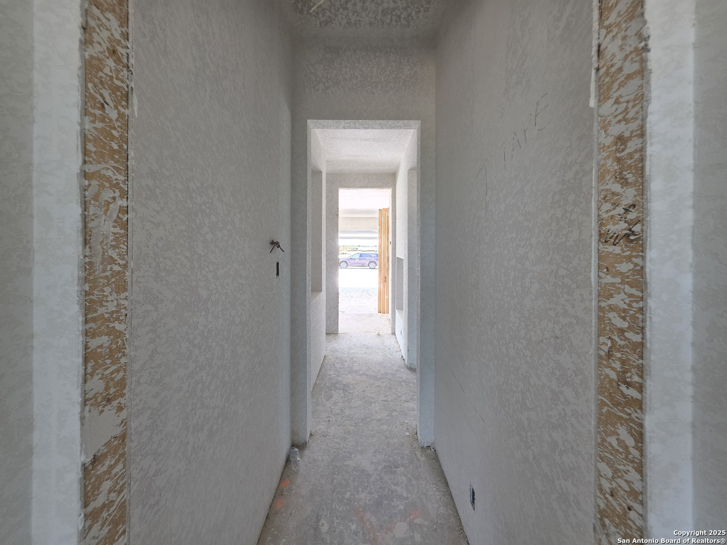 Discover exceptional living in this thoughtfully designed two-story home, ideally situated on a corner lot with no back neighbors for added privacy. An inviting study at the entry provides the perfect space for work, reading, or creative projects, while the elegant formal dining room is ideal for entertaining friends and family. The gourmet kitchen is a chef's dream, featuring a built-in cooktop, expansive center island, generous walk-in pantry, and a smart layout that flows seamlessly into the dining area. The spacious family room, highlighted by a striking coffered ceiling, is perfect for gatherings, movie nights, or quiet evenings. Retreat to the luxurious primary suite with a spa-inspired bathroom, including a garden tub, frameless glass shower with rainhead, dual vanities, and an oversized walk-in closet. Upstairs, three secondary bedrooms, each with walk-in closets, two full baths, and a large game room provide space for family, guests, and entertainment. A three-car garage completes this home, combining style, comfort, and everyday functionality for a modern lifestyle. This home features design selections thoughtfully curated by our professional studio team. Each finish, from flooring and cabinetry to countertops and special touches, is chosen with care to create a cohesive and beautifully balanced look. Guided by timeless design principles and inspired by modern lifestyles, the result is a home that is both stylish and welcoming from the moment you step inside. This home is located in Saddlebrook Ranch, a master-planned community in the charming city of Schertz-named one of CNN/Money's top small towns. Enjoy easy access to I-35, premier shopping, dining, and Randolph Air Force Base. Planned amenities include a sparkling pool and playground, perfect for family fun. With the highly regarded Schertz-Cibolo-Universal City School District nearby, Saddlebrook Ranch offers the ideal blend of community, convenience, and small-town charm.