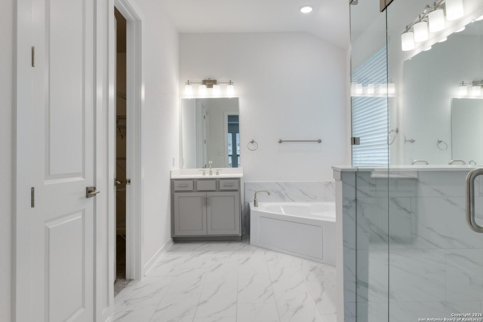 Welcome to a home where comfort, style, and functionality come together in perfect harmony. This inviting one-story design offers everything you need for both relaxed living and effortless entertaining. At the heart of the home is a gourmet kitchen, complete with quartz countertops, upgraded cabinetry, and a walk-in pantry that keeps everything beautifully organized. The kitchen flows seamlessly into the spacious family room, where large windows bathe the space in natural light and frame serene views of the backyard-ideal for quiet mornings, lively gatherings, or simply enjoying the day's natural rhythm. The primary suite is thoughtfully secluded, providing a private retreat designed for relaxation and renewal. Unwind in the oversized shower, soak away the day in the garden tub, or enjoy the convenience of dual vanities and a generous walk-in closet that makes daily routines a breeze. Three additional bedrooms offer plenty of space for family, guests, or even a dedicated office. A game room adds a versatile space for fun and connection, while two additional bathrooms and a powder room make entertaining effortless and convenient. Step outside to a covered patio that extends your living space into the outdoors, complemented by a sprinkler system to keep your lawn green and welcoming all year long. Every detail of this home has been crafted to create a lifestyle that balances beauty and practicality, making it a place you'll be proud to call home. This home is located in Saddlebrook Ranch, a master-planned community in the charming city of Schertz-named one of CNN/Money's top small towns. Enjoy easy access to I-35, premier shopping, dining, and Randolph Air Force Base. Planned amenities include a sparkling pool and playground, perfect for family fun. With the highly regarded Schertz-Cibolo-Universal City School District nearby, Saddlebrook Ranch offers the ideal blend of community, convenience, and small-town charm.