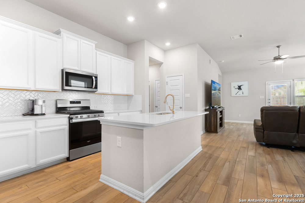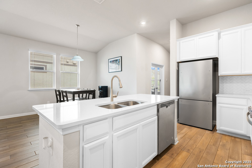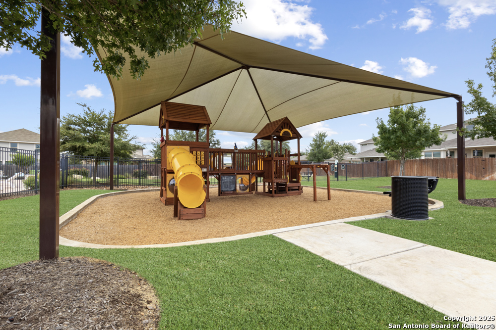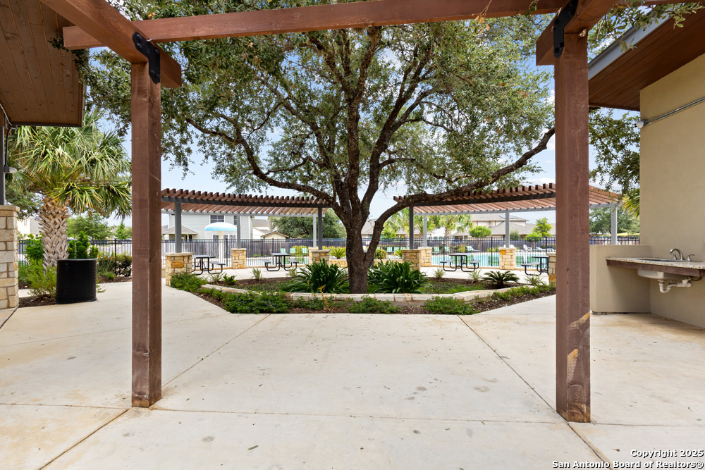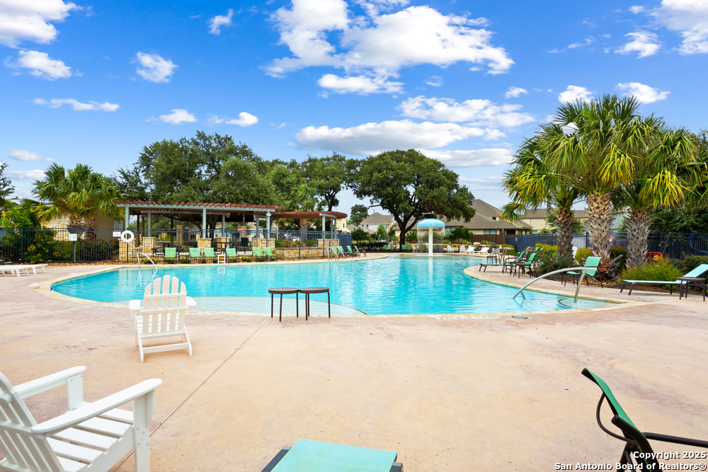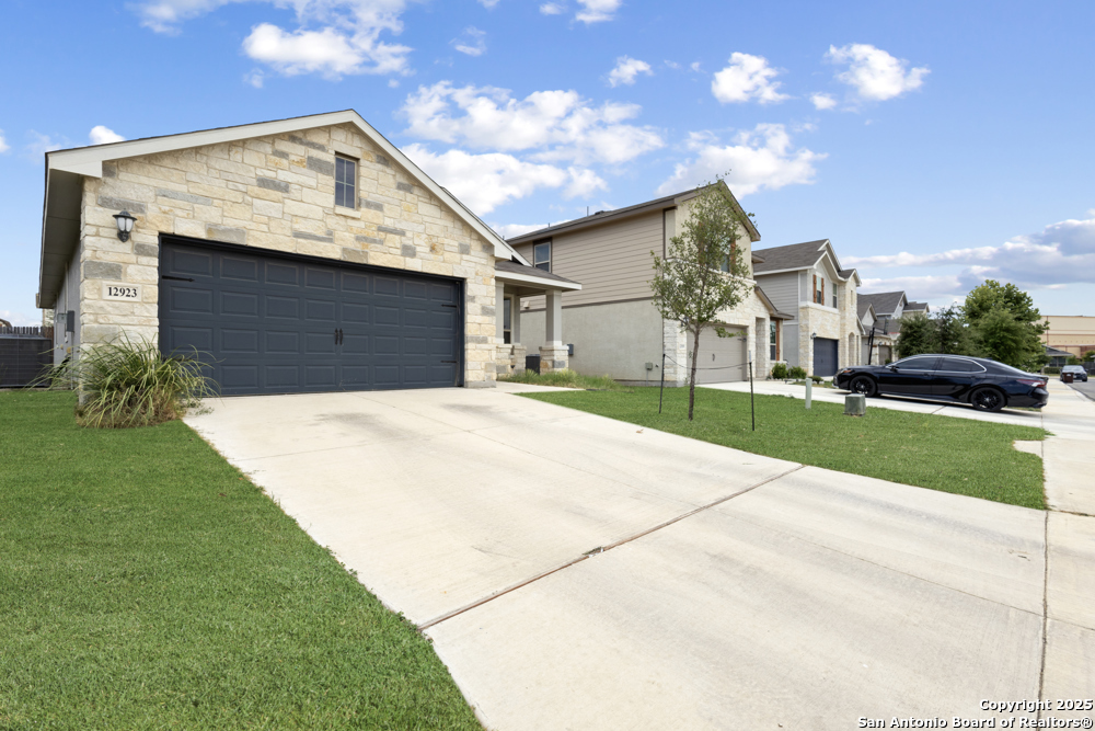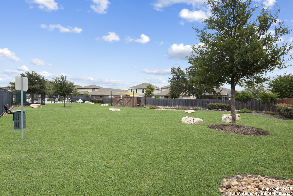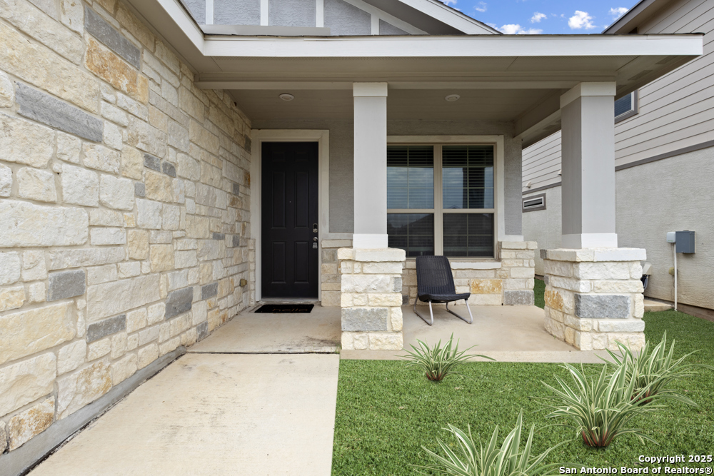 Open Friday Oct. 17th 2-5 PM and Saturday Oct. 18th 10-1 PM and Welcome to this Meritage-built, single-story home in the desirable Prescott Oaks community! This 3-bedroom + study, 2-bath, 2-car garage residence features an open-concept layout with high ceilings and stunning upgrades throughout. The kitchen boasts quartz countertops, a large island, stainless steel appliances (including refrigerator and gas range), and modern cabinetry-perfect for any culinary enthusiast. Enjoy beautiful wood-look tile flooring, neutral modern paint tones, and a dedicated office space ideal for remote work. The spacious primary suite includes a large walk-in shower, dual vanities, and a big walk-in closet. Step outside to a privacy-fenced backyard with a cozy covered patio, perfect for outdoor dining and relaxing. Built with energy efficiency in mind, this home offers both comfort and savings. Community amenities include a pool, playground, and dog park. Just minutes from Government Canyon and in highly-rated Northside ISD. Schedule your private tour today!