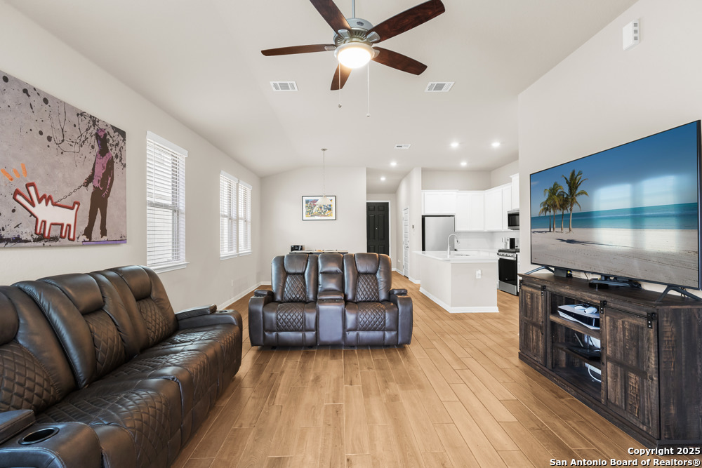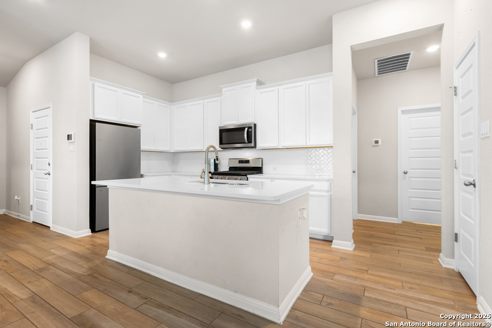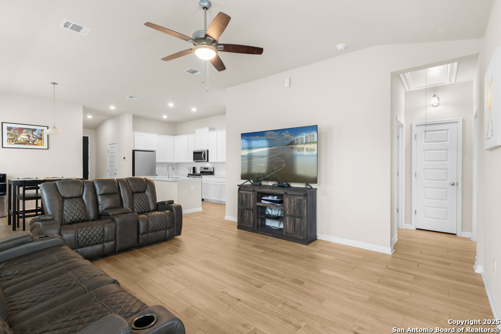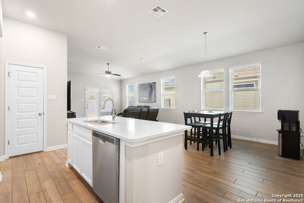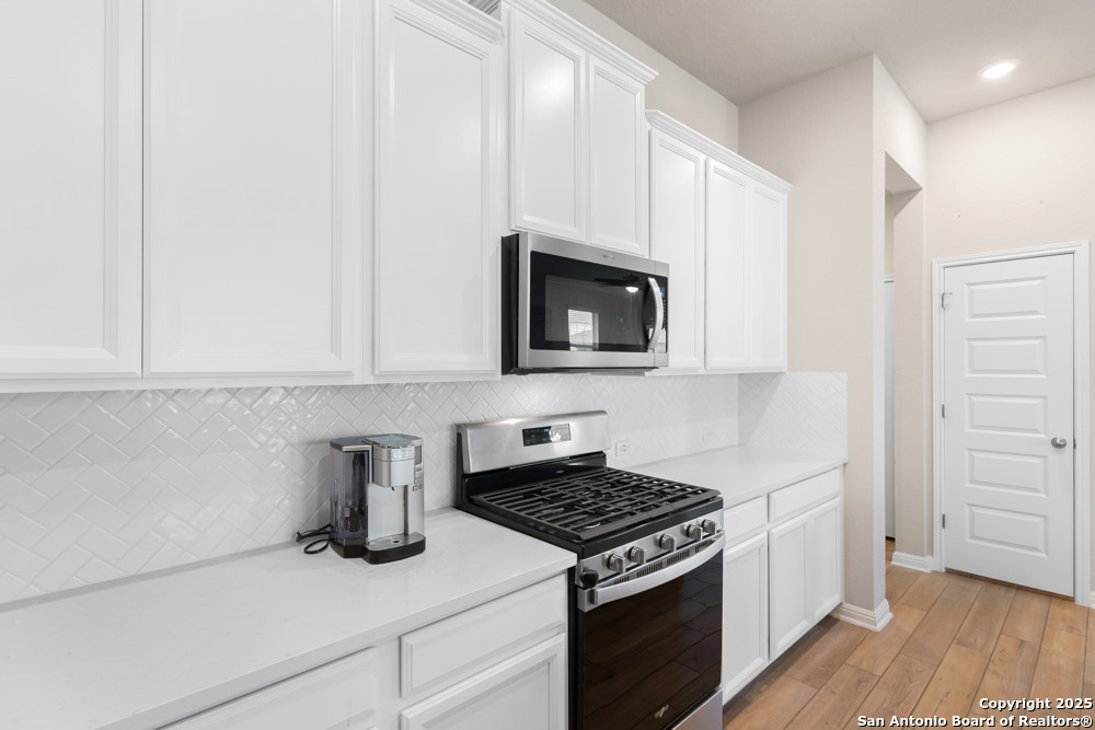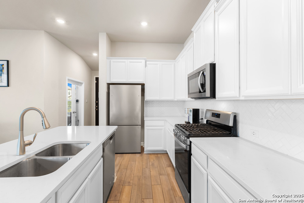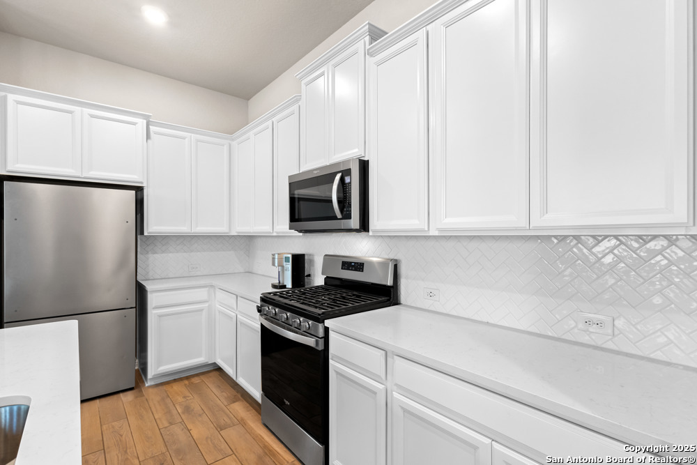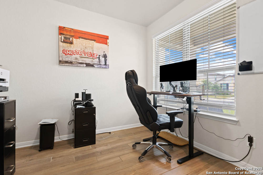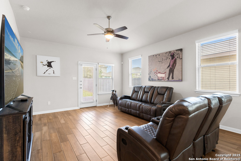Open Friday Oct. 17th 2-5 PM and Saturday Oct. 18th 10-1 PM and Welcome to this Meritage-built, single-story home in the desirable Prescott Oaks community! This 3-bedroom + study, 2-bath, 2-car garage residence features an open-concept layout with high ceilings and stunning upgrades throughout. The kitchen boasts quartz countertops, a large island, stainless steel appliances (including refrigerator and gas range), and modern cabinetry-perfect for any culinary enthusiast. Enjoy beautiful wood-look tile flooring, neutral modern paint tones, and a dedicated office space ideal for remote work. The spacious primary suite includes a large walk-in shower, dual vanities, and a big walk-in closet. Step outside to a privacy-fenced backyard with a cozy covered patio, perfect for outdoor dining and relaxing. Built with energy efficiency in mind, this home offers both comfort and savings. Community amenities include a pool, playground, and dog park. Just minutes from Government Canyon and in highly-rated Northside ISD. Schedule your private tour today!