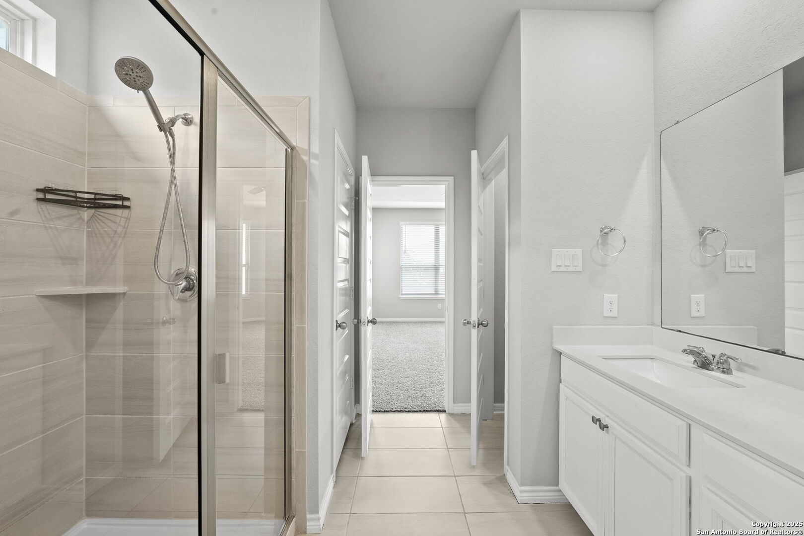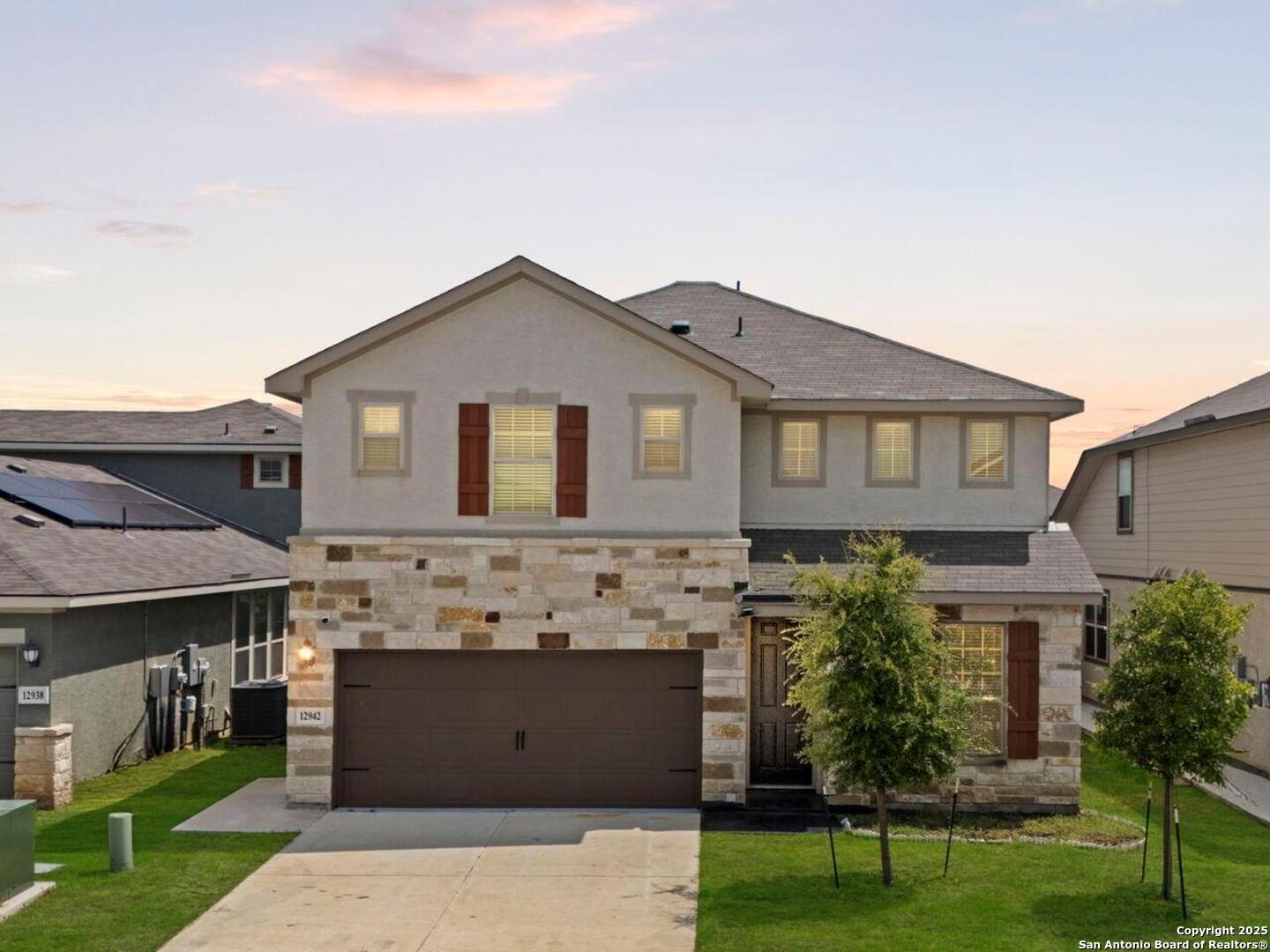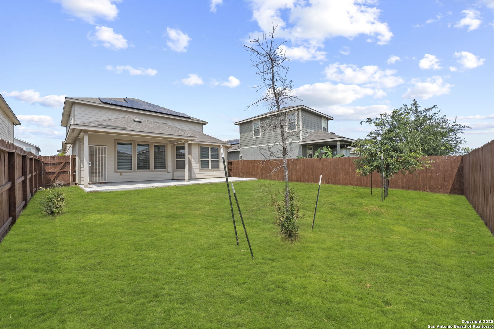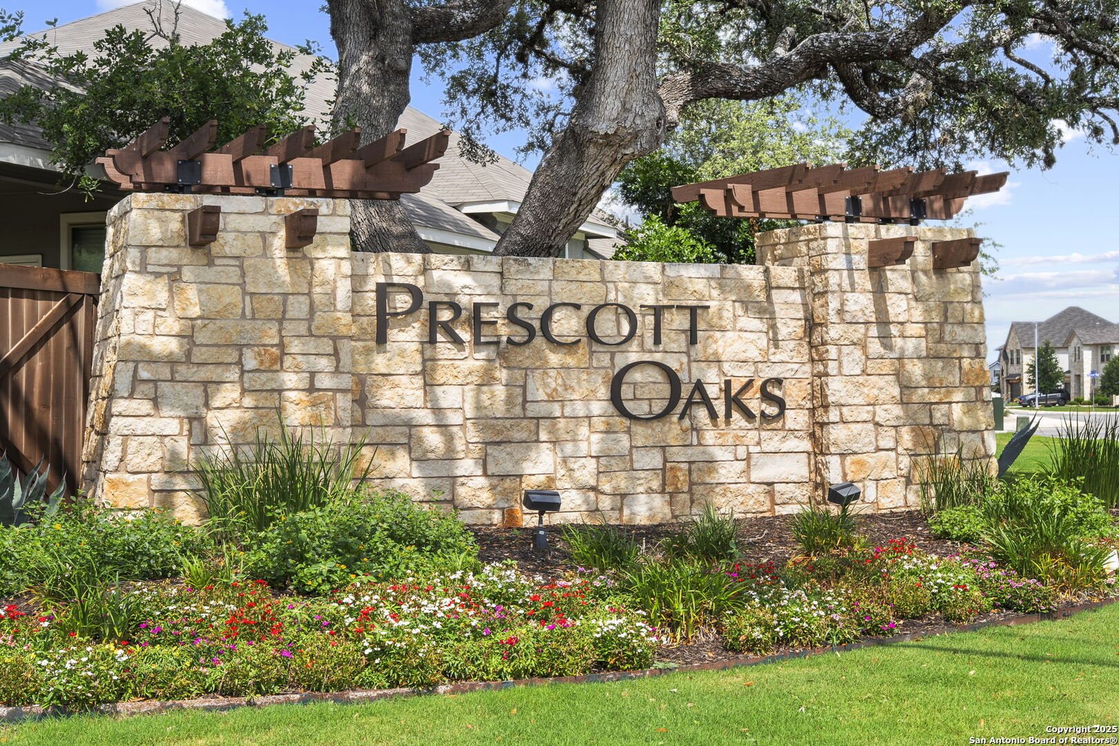 Discover modern living at its finest in this immaculate 4-bedroom, 2-bathroom home in the sought-after Prescott Oaks neighborhood! Recently rehabbed, built in 2021 and move-in ready, this home features a spacious layout with the primary suite conveniently located on the first floor and three generously sized bedrooms upstairs. Two large flex rooms offer endless possibilities for a home office, media room, or gym-tailored to your lifestyle. Step outside to a fully fenced backyard with a covered patio, perfect for entertaining or relaxing. Enjoy lower energy bills with fully paid-off solar panels and take advantage of being within walking distance to the community pool, playground and to the stunning Government Canyon State Natural Area-ideal for hiking, camping, and enjoying the beautiful scenes of the hill country. Located in the desirable 78254 zip code, this home blends comfort, efficiency, and outdoor adventure. Don't miss out on this opportunity to own a home that has it all!