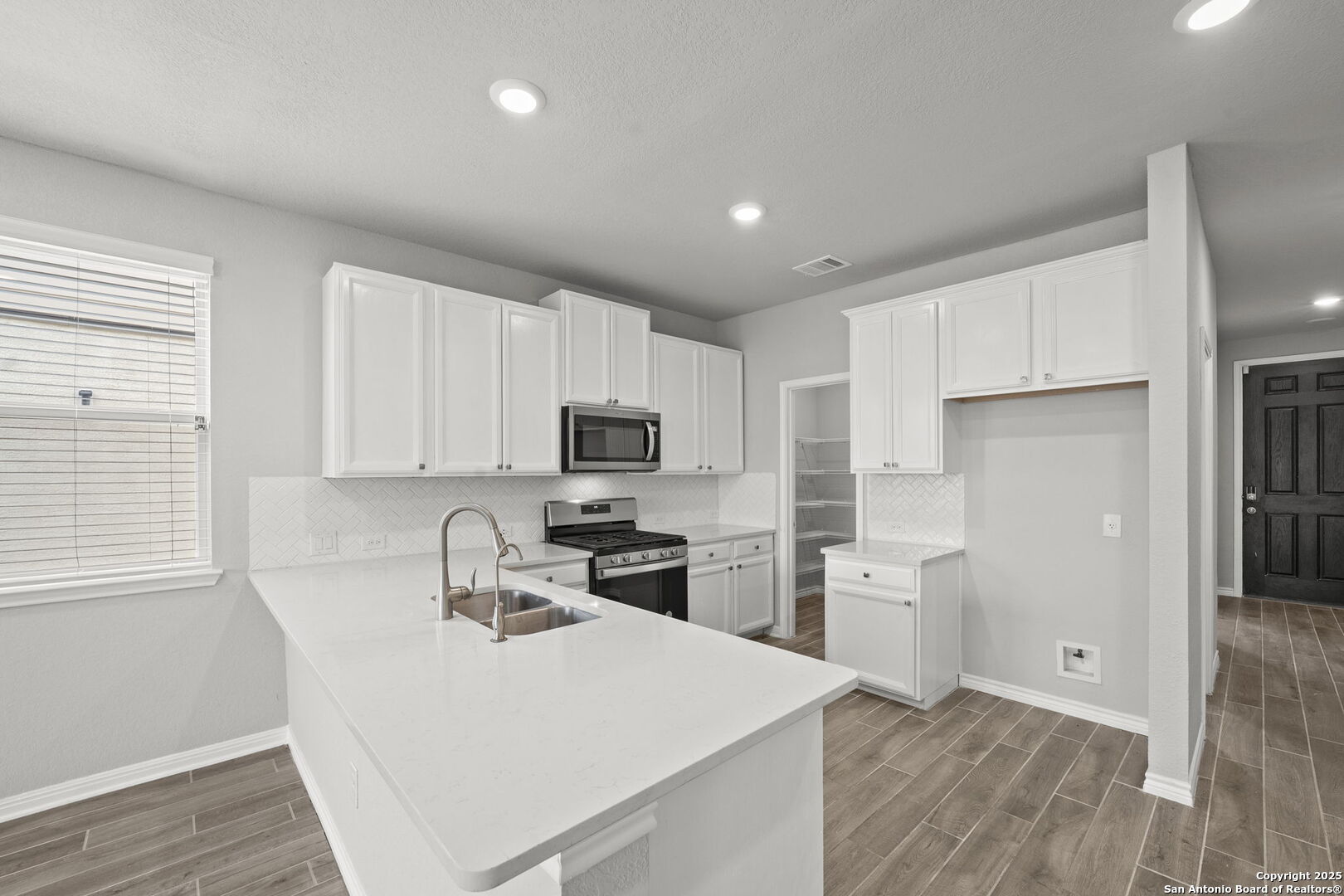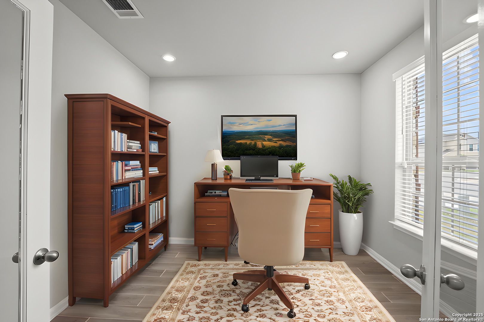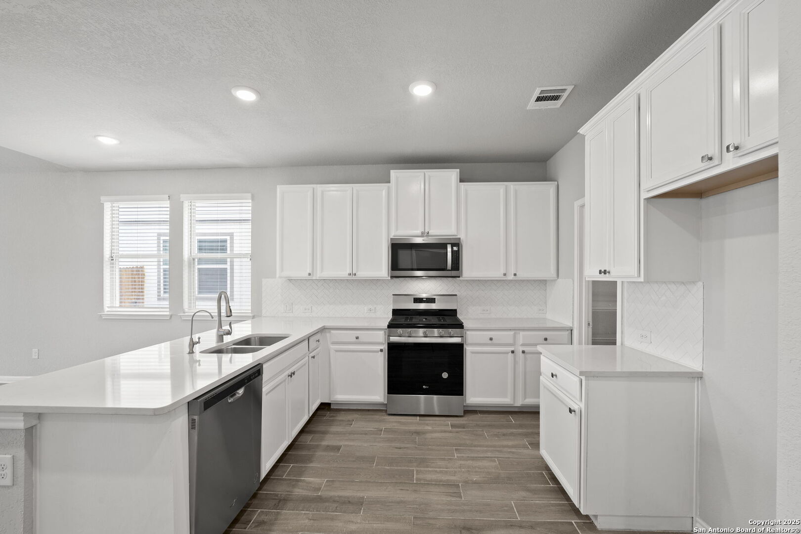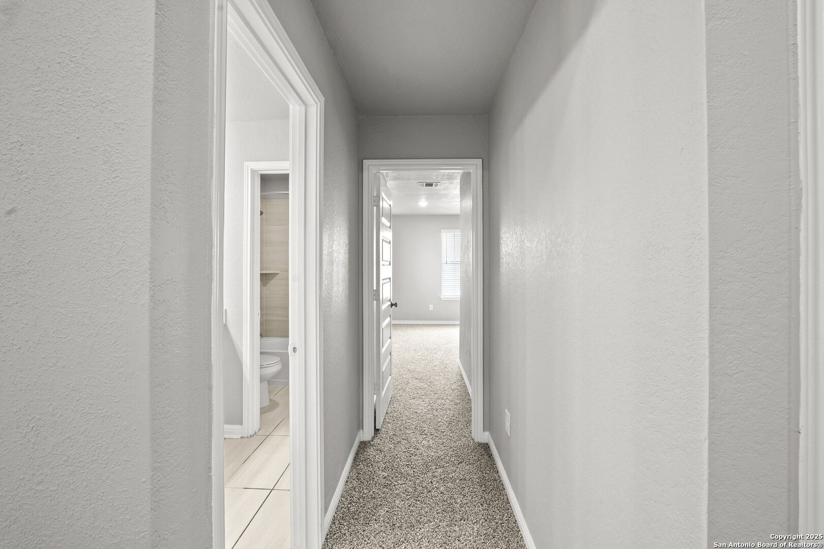Discover modern living at its finest in this immaculate 4-bedroom, 2-bathroom home in the sought-after Prescott Oaks neighborhood! Recently rehabbed, built in 2021 and move-in ready, this home features a spacious layout with the primary suite conveniently located on the first floor and three generously sized bedrooms upstairs. Two large flex rooms offer endless possibilities for a home office, media room, or gym-tailored to your lifestyle. Step outside to a fully fenced backyard with a covered patio, perfect for entertaining or relaxing. Enjoy lower energy bills with fully paid-off solar panels and take advantage of being within walking distance to the community pool, playground and to the stunning Government Canyon State Natural Area-ideal for hiking, camping, and enjoying the beautiful scenes of the hill country. Located in the desirable 78254 zip code, this home blends comfort, efficiency, and outdoor adventure. Don't miss out on this opportunity to own a home that has it all!
