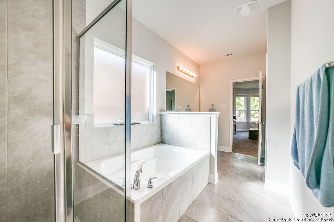 Welcome Home to this gorgeous 4 BR/3.5 BA move-in ready home in the sought-after Alamo Ranch subdivision. This meticulously-maintained 2-story beauty is bright & inviting w/an open floor plan perfect for entertaining. The eat-in kitchen features SS appliances, large island, counter space & cabinets galore plus a lovely breakfast nook! The spacious primary bedroom suite downstairs has an en-suite bathroom w/double vanities & a garden tub for relaxation. Upstairs there's a large loft-style space - perfect for another living area; theater room; game room or exercise room! The fully-fenced back yard is ready for your summer BBQ's. Located in the award-winning Northside ISD w/great after school programs. Short walking distance from Mireles ES. Close to La Cantera Mall, shopping, dining & entertainment galore! Easy commute to Lackland AFB, Sea World, Six Flags, South Texas Medical Center, UTSA & San Antonio's major roads & highways: 90, 151, 1604 & I -10. Great neighborhood amenities!