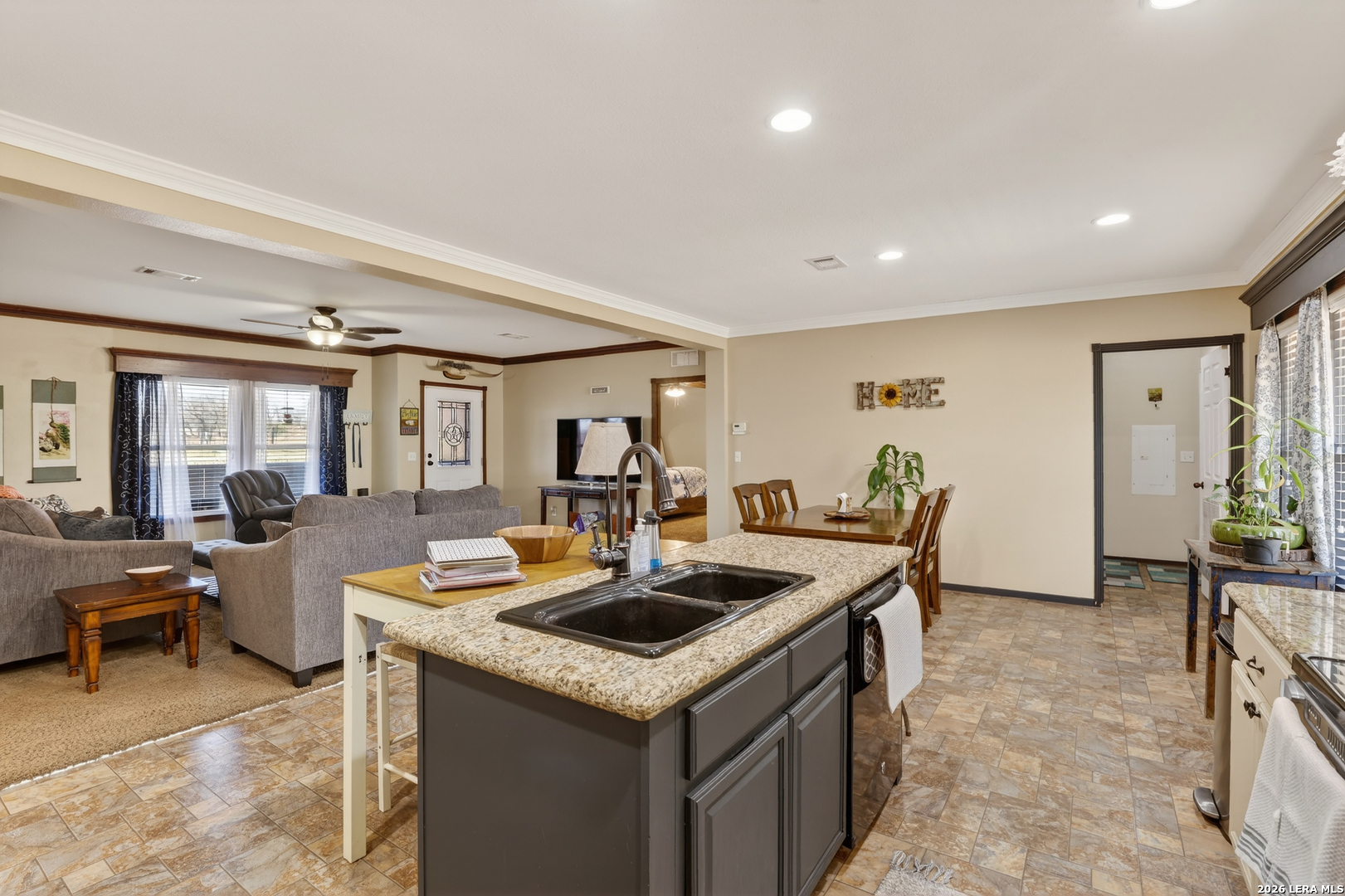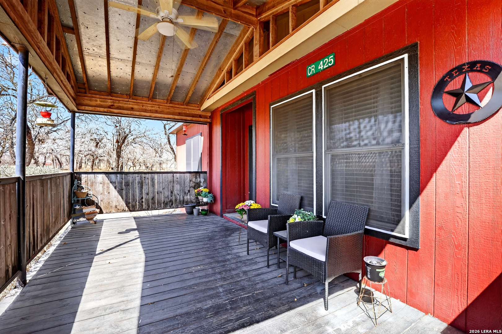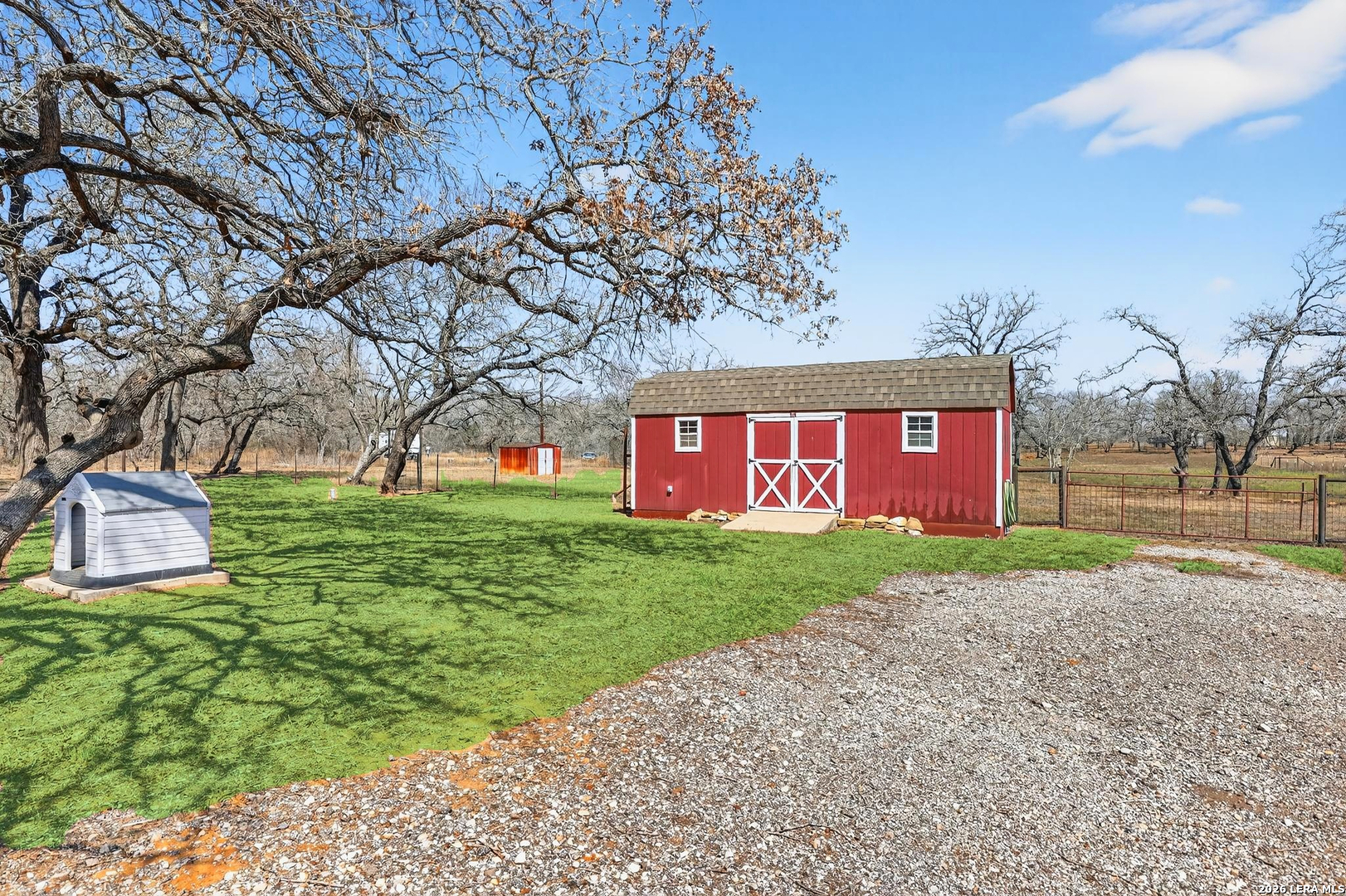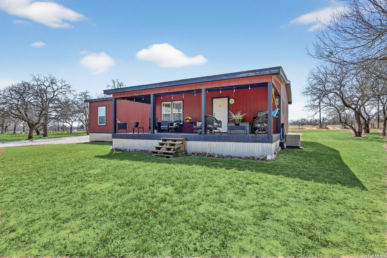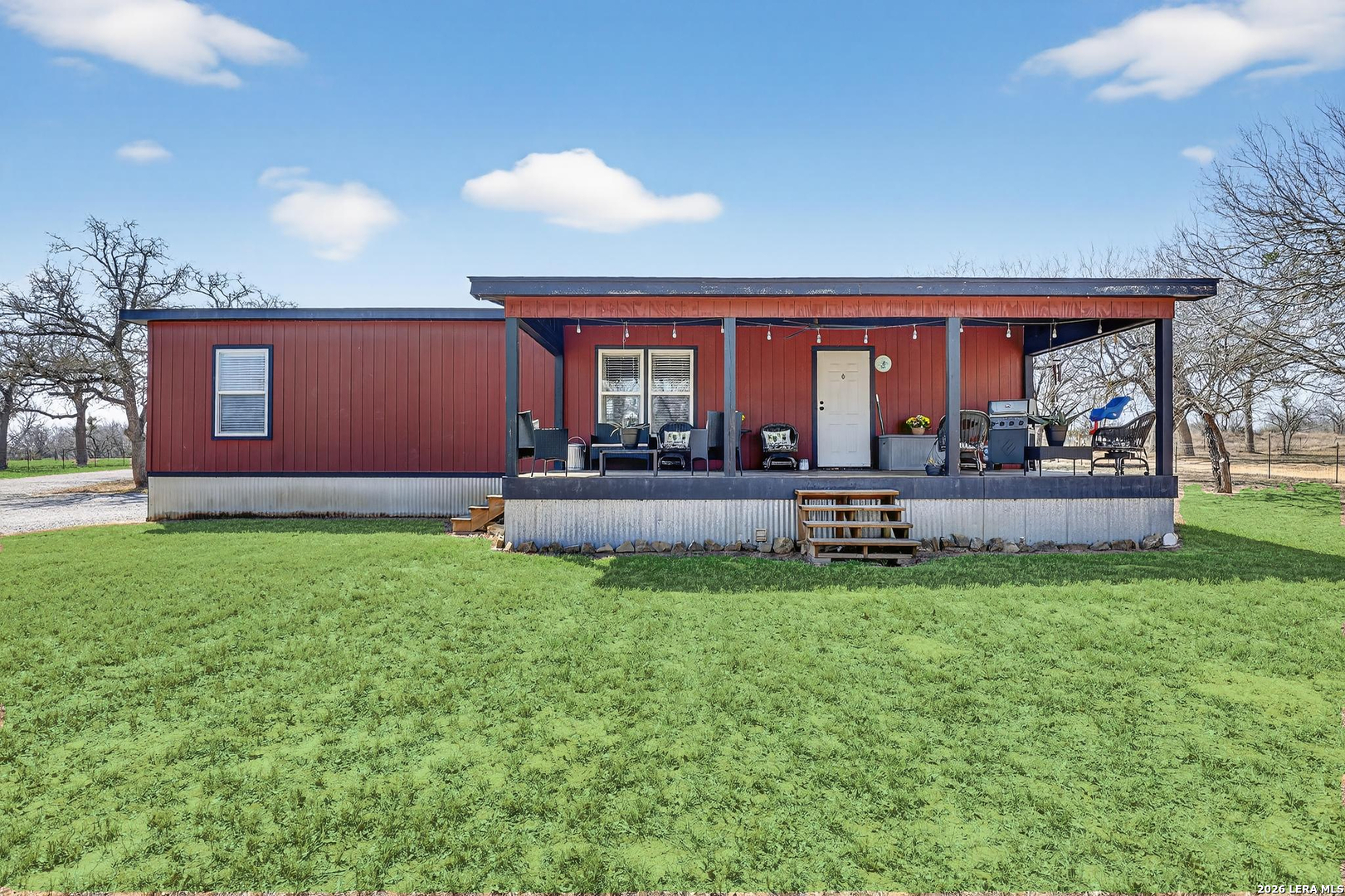 Charming 3 bedroom, 2 bath manufactured home situated on 3.75 beautiful acres dotted with Oak trees. This property offers an electric entrance gate, full perimeter fencing, with cross fencing - perfect for livestock or added privacy. A storage shed with electricity is in place, along with exterior water access for convenience.There is a seasonal creek that runs through the back of the property, but no flood plain. Inside you will find an inviting open-concept layout featuring granite countertops, custom cabinetry, and durable vinyl and carpet flooring. The spacious primary suite includes double vanities and a walk-in closet. An interior utility room adds everyday practicaitlity. Located on a paved county road, this property combines peaceful country living with easy access and modern comforts. Plenty of space to spread out and make it your own.