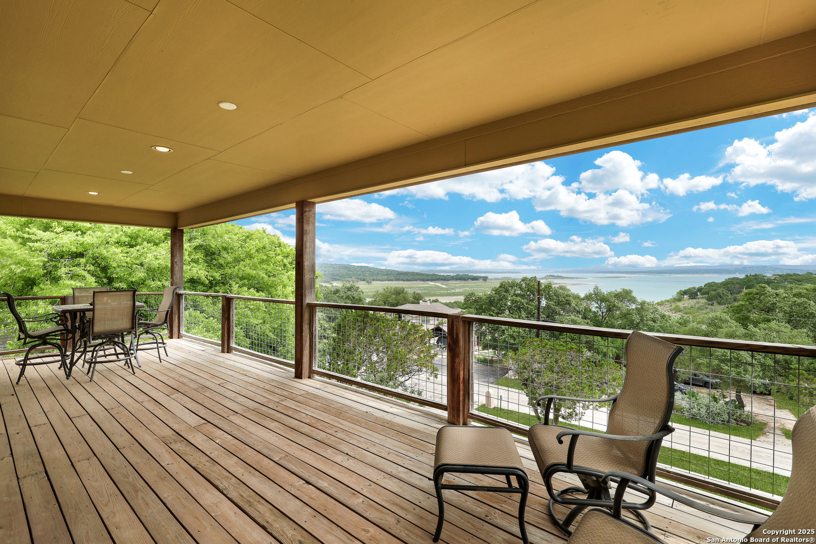 Escape to your own slice of paradise with this stunning 3 bedroom/2.5 bath lake house nestled one block away from the serene shores of Canyon Lake. Come enjoy the gorgeous sweeping lake views from your approx. 400 sq.ft. covered back deck! Step inside to soaring ceilings, a cozy floor to ceiling stone fireplace, and expansive windows that flood the open-concept living space with natural light. The updated kitchen features stainless steel appliances, and granite countertops--perfect for morning coffee with a view. Snuggle in by a cozy fire in your living room or lounge with your favorite beverage on the expansive covered deck and watch the sunrise. Secondary bedrooms and office are downstairs with primary and common areas on the main floor. With panoramic water views, this community is ideal for entertaining or relaxing. It features two private park areas; a deep-water cove-lake park, a playground, boat ramp, neighborhood pool and a clubhouse for The Oaks residents only. This property is ideal as a full-time residence or vacation home. Tile floors throughout the common areas, attached oversized two car garage with room for workshop, newer roof(July '23) Don't miss your chance to own this rare lake view gem-schedule your private tour today and start living the lake life you've always dreamed of.