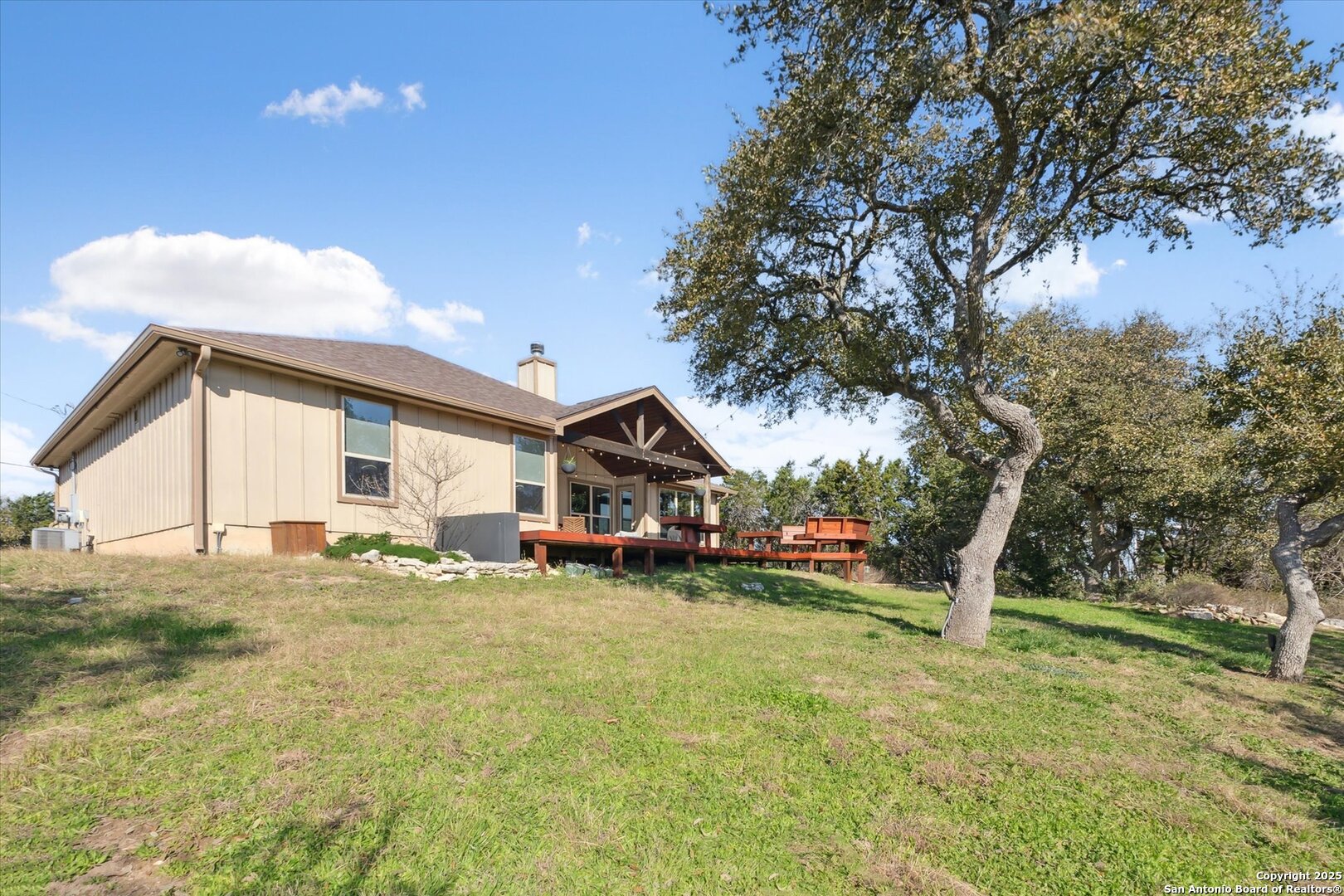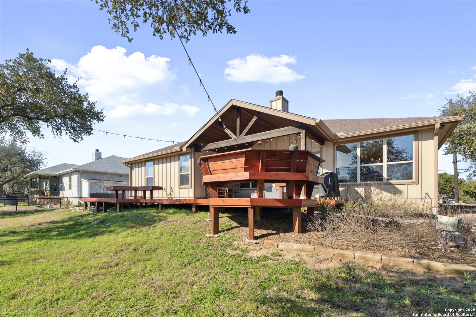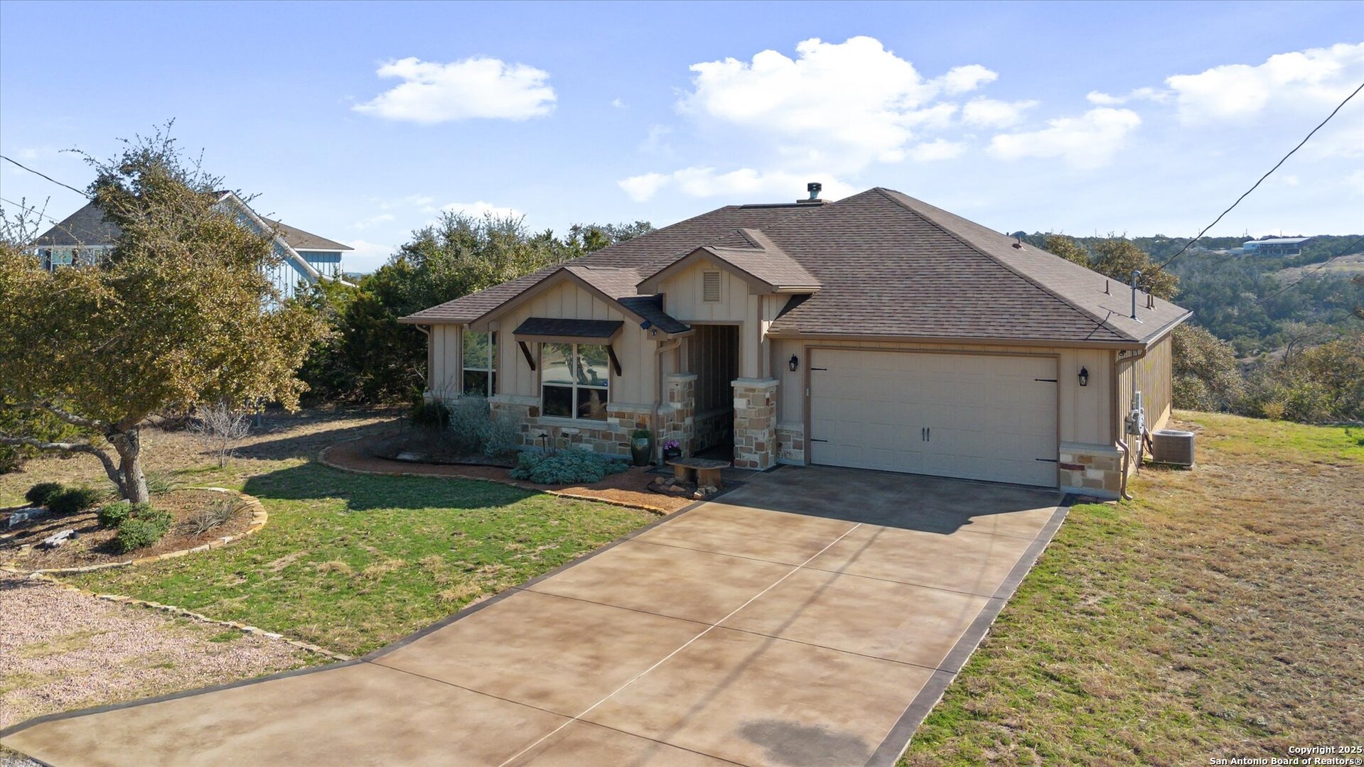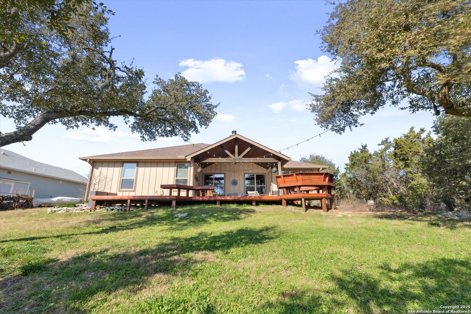 Stunning Custom Home Near Canyon Lake! Welcome to a beautifully elevated custom-built home just a short drive from Canyon Lake. This property offers a perfect blend of style, functionality, and thoughtful enhancements, making it an exceptional place to call home. The backyard is an inviting retreat, featuring a custom-built deck with bistro lighting-ideal for relaxing evenings or entertaining guests. The landscaping and landscape lighting create a serene atmosphere, while the concrete-coated garage and back patio provide both durability and style. Step inside to a spacious open floor plan, designed for comfort and entertaining. Recent improvements include a new water heater (Dec 2024), a new garbage disposal (June 2024), a Rainsoft water softener, and a stained concrete driveway that enhances curb appeal. Located just minutes from the stunning waters of Canyon Lake and a short drive to the vibrant city of New Braunfels, this home offers the perfect balance of peaceful Hill Country living with modern convenience. Enjoy the tranquility of nature while being just a so close from shopping, dining, and endless outdoor recreation, including boating, fishing, hiking, and tubing on the Guadalupe River. The backyard view of the canyon is simply breathtaking, providing a serene and picturesque setting to unwind and take in the beauty of the Texas Hill Country. Whether you're looking for a weekend retreat or a full-time residence, this home provides the ideal blend of relaxation and accessibility to everything the area has to offer. Schedule your showing today!