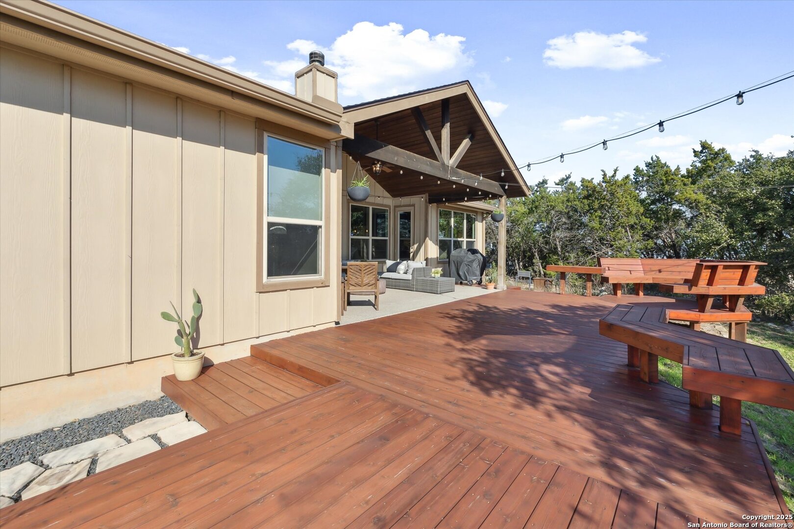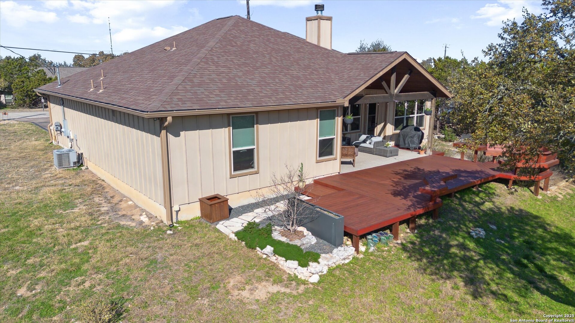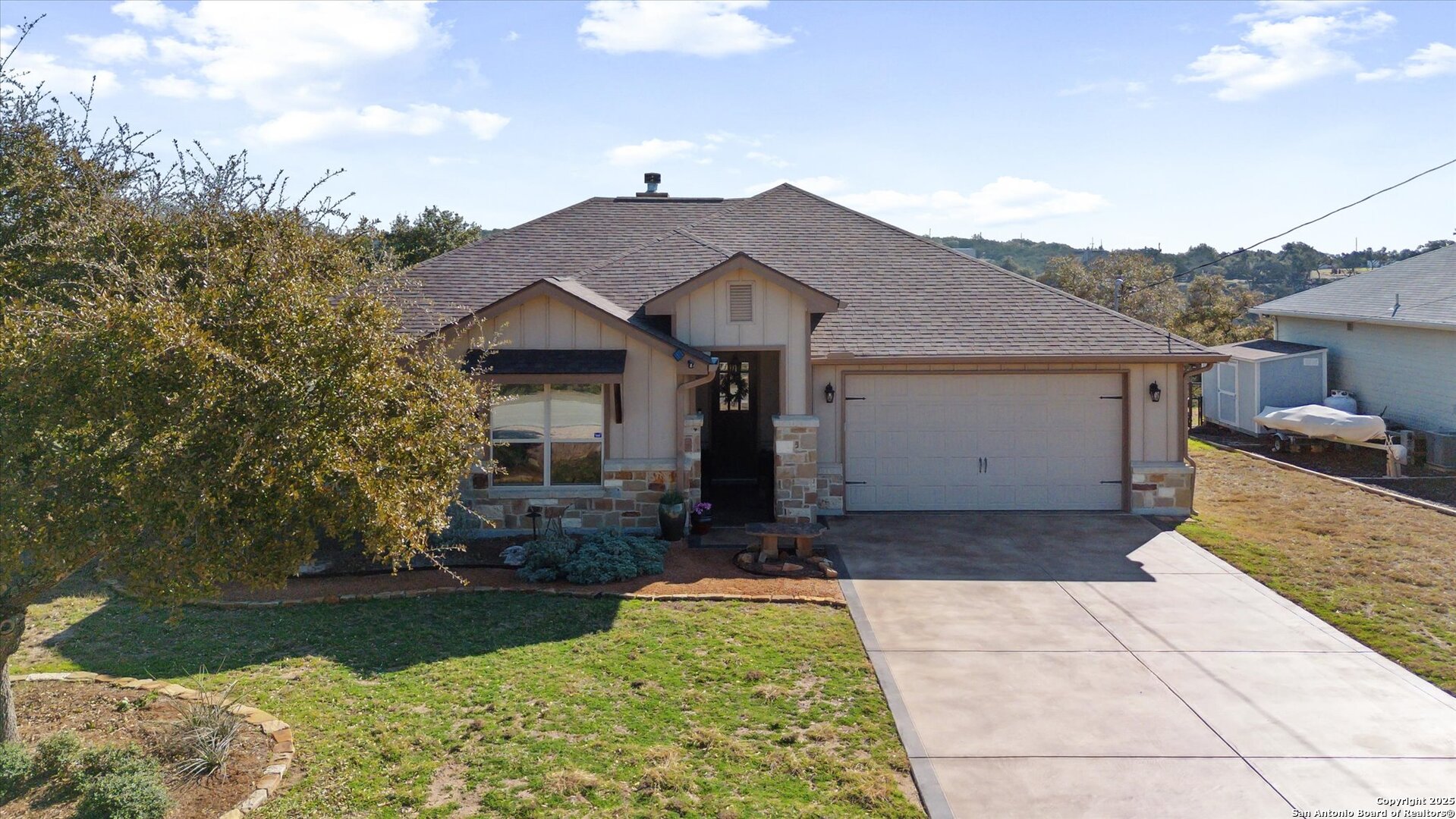Stunning Custom Home Near Canyon Lake! Welcome to a beautifully elevated custom-built home just a short drive from Canyon Lake. This property offers a perfect blend of style, functionality, and thoughtful enhancements, making it an exceptional place to call home. The backyard is an inviting retreat, featuring a custom-built deck with bistro lighting-ideal for relaxing evenings or entertaining guests. The landscaping and landscape lighting create a serene atmosphere, while the concrete-coated garage and back patio provide both durability and style. Step inside to a spacious open floor plan, designed for comfort and entertaining. Recent improvements include a new water heater (Dec 2024), a new garbage disposal (June 2024), a Rainsoft water softener, and a stained concrete driveway that enhances curb appeal. Located just minutes from the stunning waters of Canyon Lake and a short drive to the vibrant city of New Braunfels, this home offers the perfect balance of peaceful Hill Country living with modern convenience. Enjoy the tranquility of nature while being just a so close from shopping, dining, and endless outdoor recreation, including boating, fishing, hiking, and tubing on the Guadalupe River. The backyard view of the canyon is simply breathtaking, providing a serene and picturesque setting to unwind and take in the beauty of the Texas Hill Country. Whether you're looking for a weekend retreat or a full-time residence, this home provides the ideal blend of relaxation and accessibility to everything the area has to offer. Schedule your showing today!