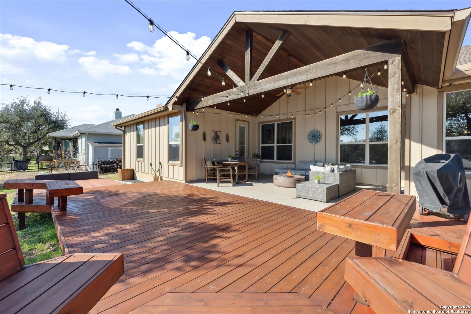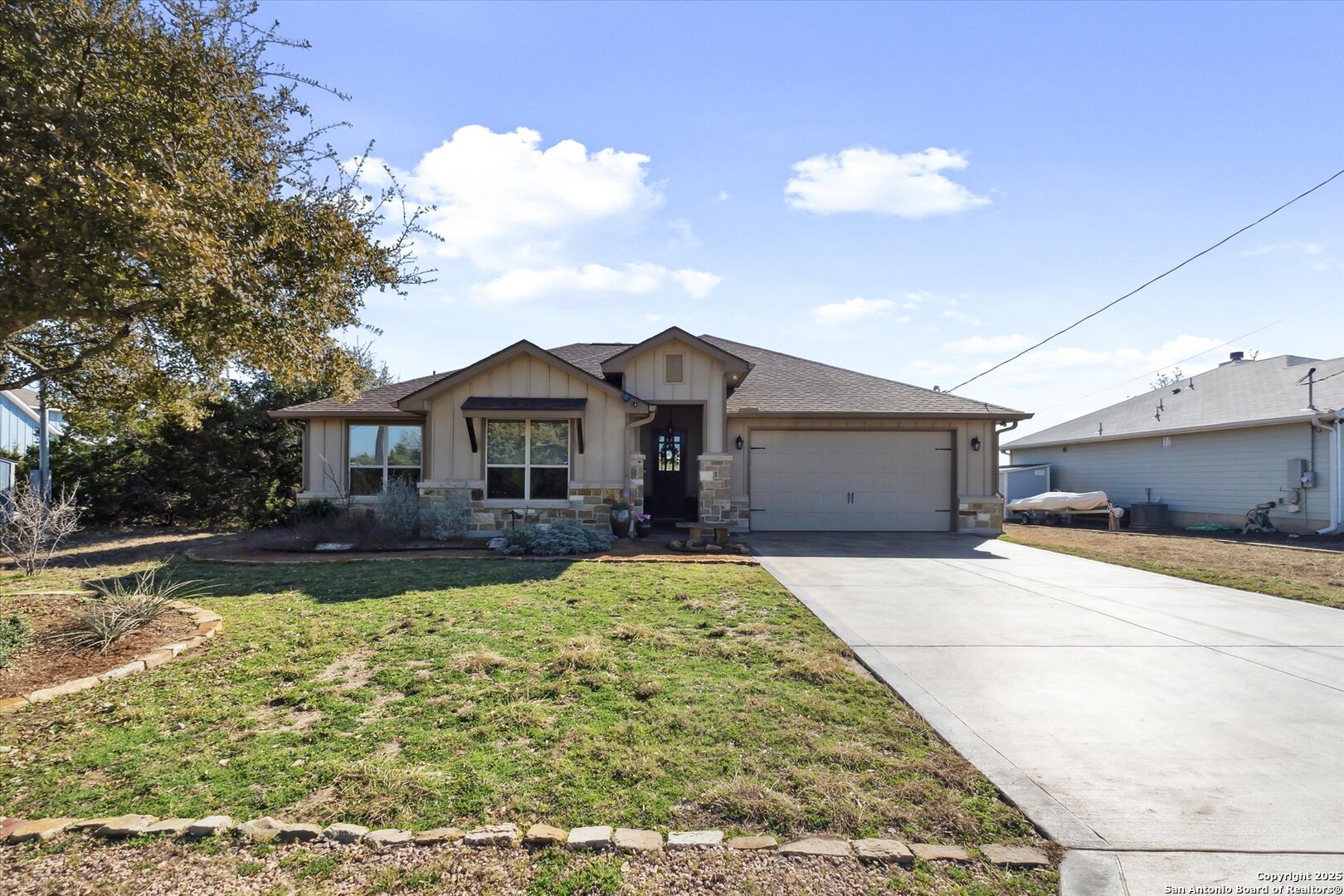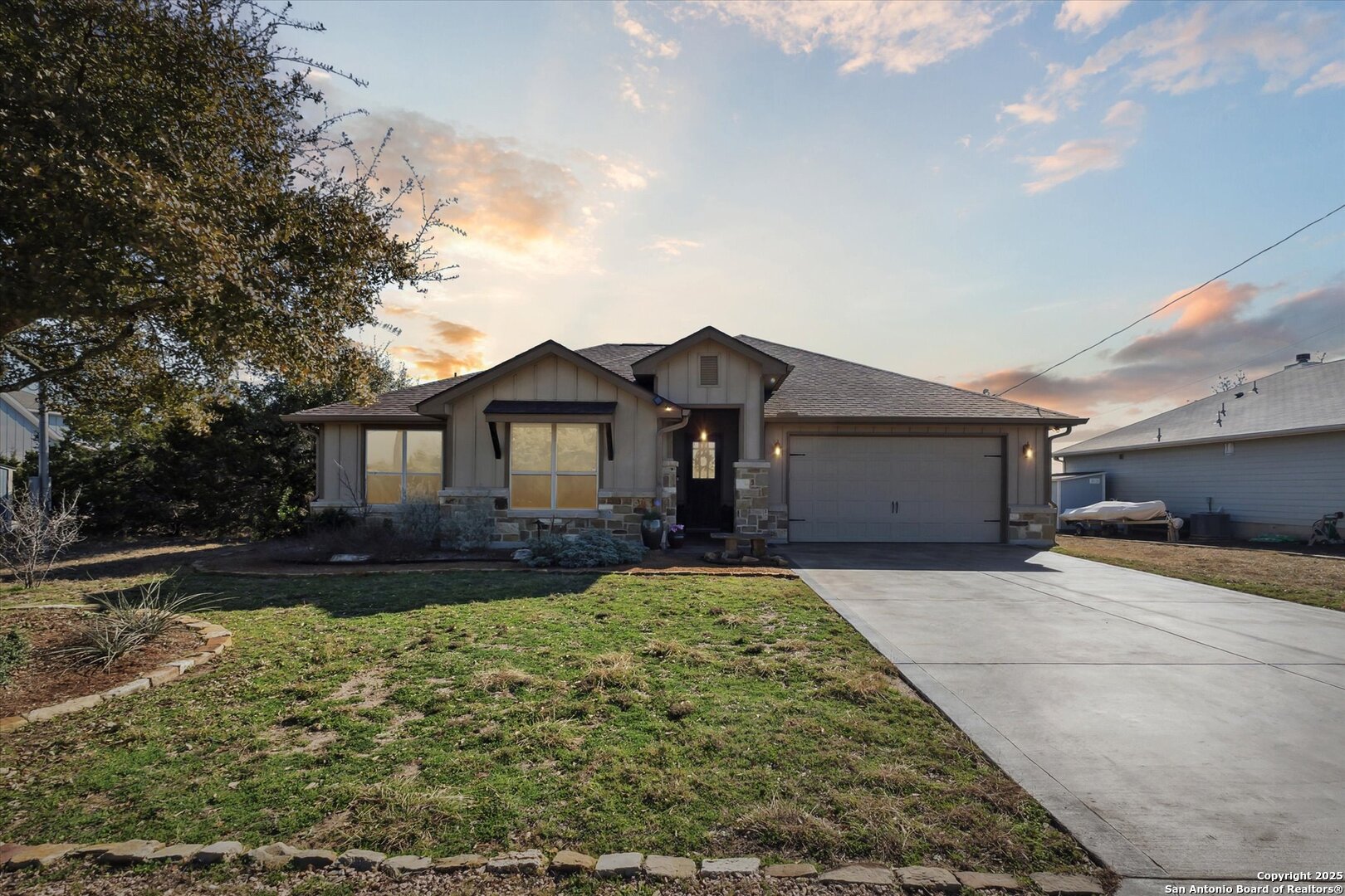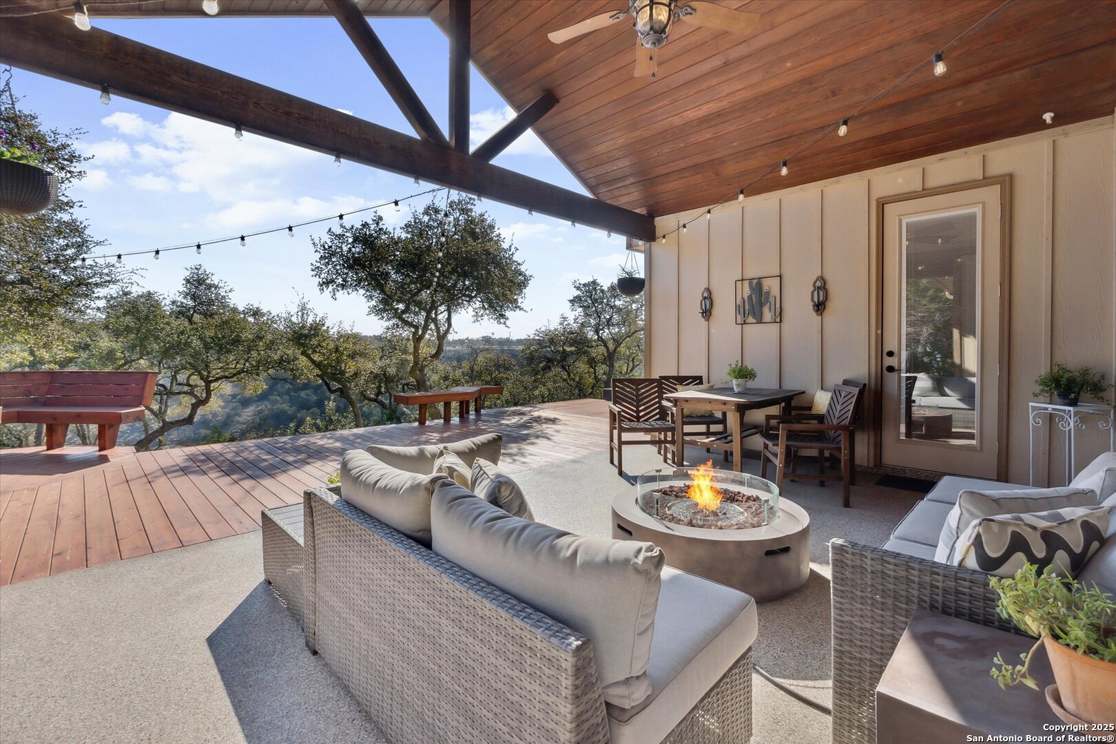Stunning Custom Home Near Canyon Lake! Welcome to a beautifully elevated custom-built home just a short drive from Canyon Lake. This property offers a perfect blend of style, functionality, and thoughtful enhancements, making it an exceptional place to call home. The backyard is an inviting retreat, featuring a custom-built deck with bistro lighting-ideal for relaxing evenings or entertaining guests. The landscaping and landscape lighting create a serene atmosphere, while the concrete-coated garage and back patio provide both durability and style. Step inside to a spacious open floor plan, designed for comfort and entertaining. Recent improvements include a new water heater (Dec 2024), a new garbage disposal (June 2024), a Rainsoft water softener, and a stained concrete driveway that enhances curb appeal. Located just minutes from the stunning waters of Canyon Lake and a short drive to the vibrant city of New Braunfels, this home offers the perfect balance of peaceful Hill Country living with modern convenience. Enjoy the tranquility of nature while being just a so close from shopping, dining, and endless outdoor recreation, including boating, fishing, hiking, and tubing on the Guadalupe River. The backyard view of the canyon is simply breathtaking, providing a serene and picturesque setting to unwind and take in the beauty of the Texas Hill Country. Whether you're looking for a weekend retreat or a full-time residence, this home provides the ideal blend of relaxation and accessibility to everything the area has to offer. Schedule your showing today!