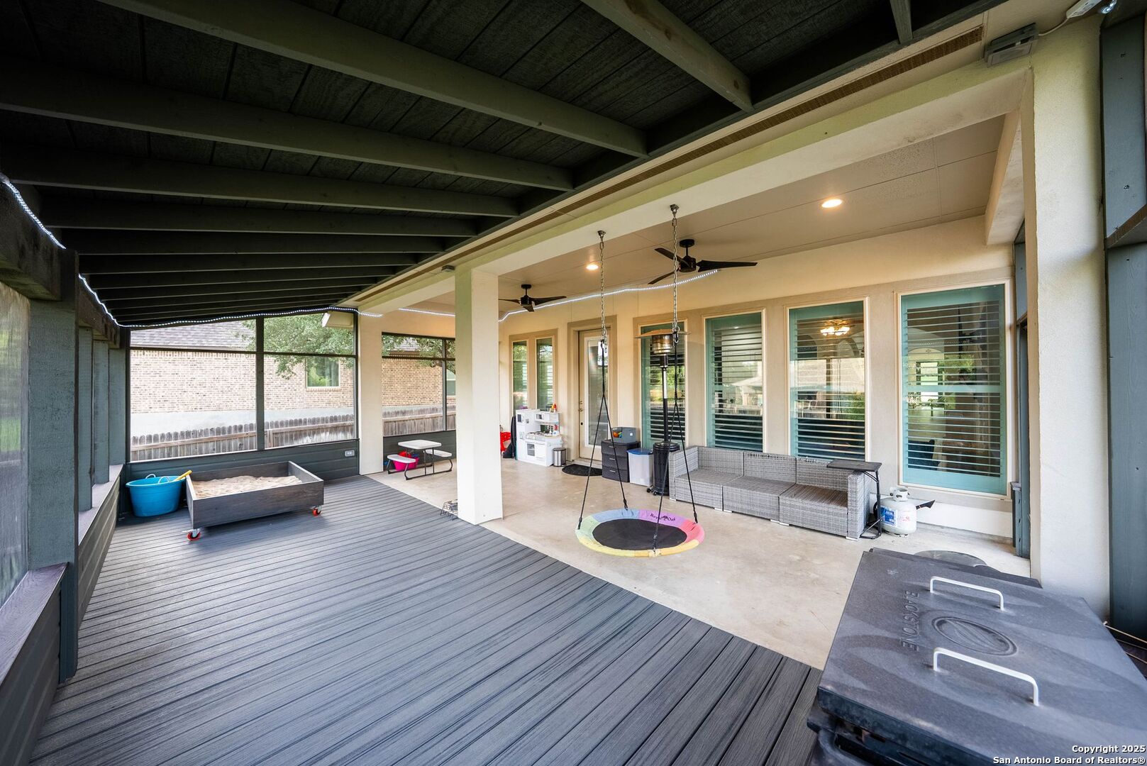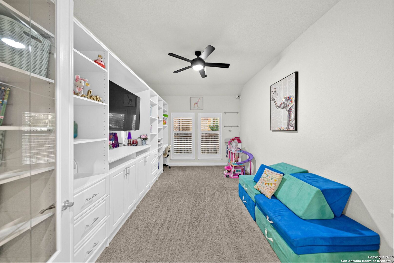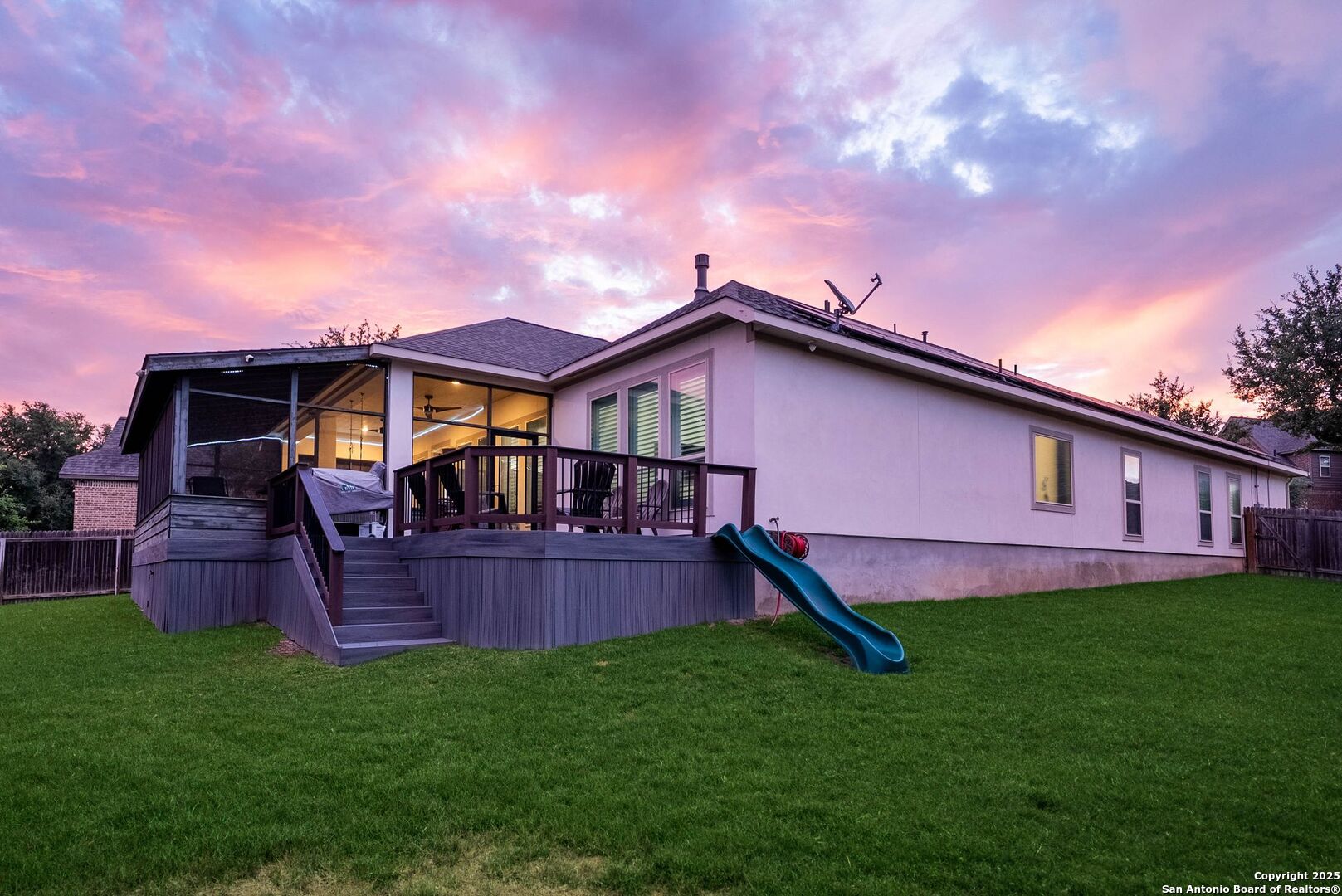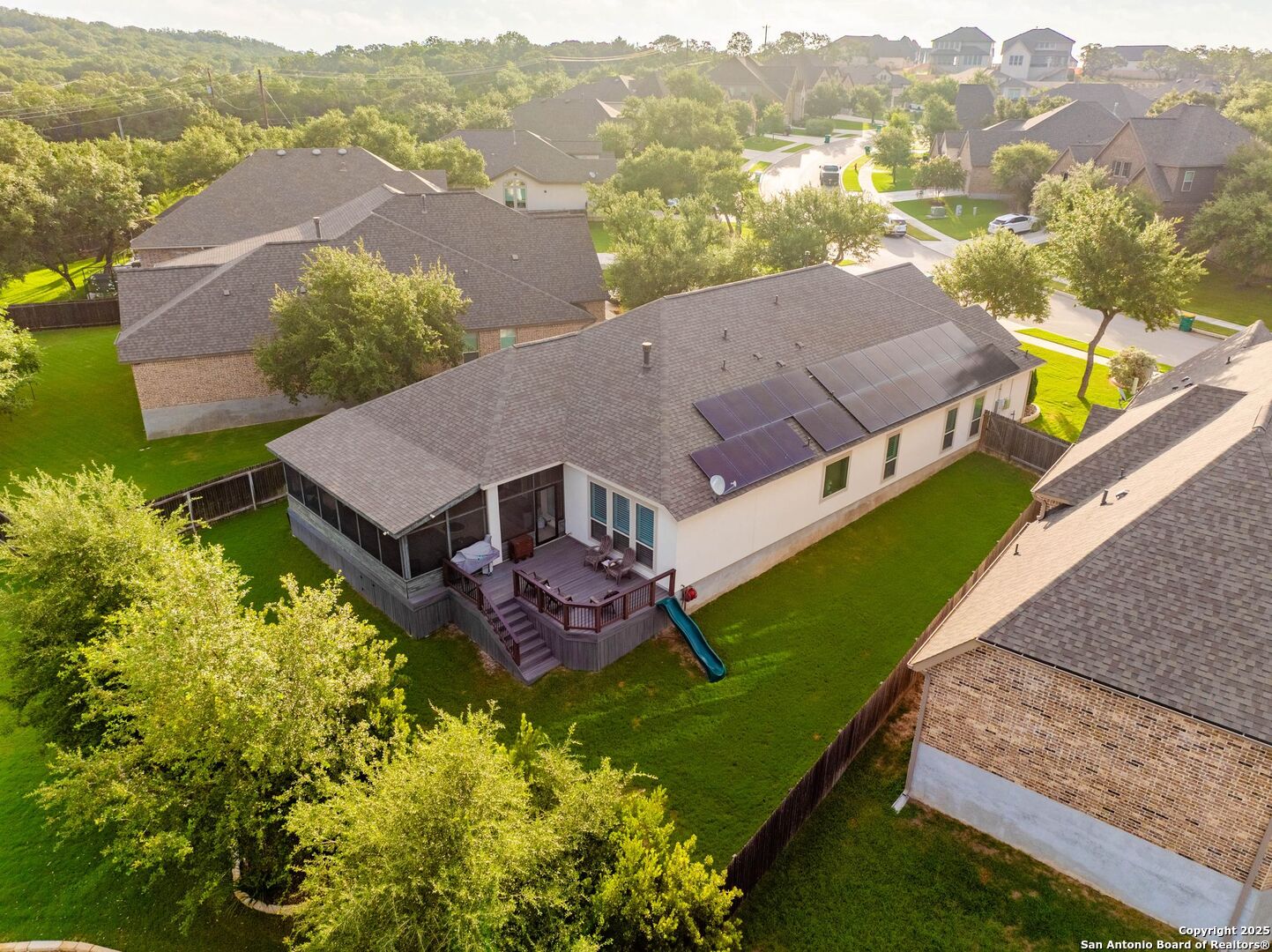 **OPEN HOUSE 11/22 1PM-4PM; 11/23 11:30AM-1:30PM**This beautifully maintained Perry Homes property offers 4 bedrooms, 3 full bathrooms, an office, a game room, and a versatile flex space that can serve as a formal dining area or second office. Ideally located within walking distance of both the elementary and high school, this home is packed with thoughtful upgrades. The spacious 46x20 screened-in deck, with a gas hookup for outdoor grilling, expands your living space and is perfect for year-round entertaining. Inside, enjoy custom built-ins in the primary closet, pantry, office, bedroom, playroom, and laundry room, offering style and smart storage throughout. Shutters on all windows add a polished, cohesive look and additional functionality. The home features a tankless water heater, whole-home reverse osmosis system, and an owned water softener, ensuring comfort and efficiency. Solar panels will be paid off at closing, providing energy savings for years to come. Additional highlights include an extended driveway, side yard, and access to a brand-new amenity center with a pool, playground, BBQ area, and scenic jogging trails in this controlled-access neighborhood. Comes with 4 years remaining on the builder's 10-year warranty for added peace of mind.