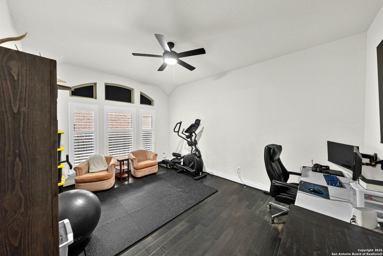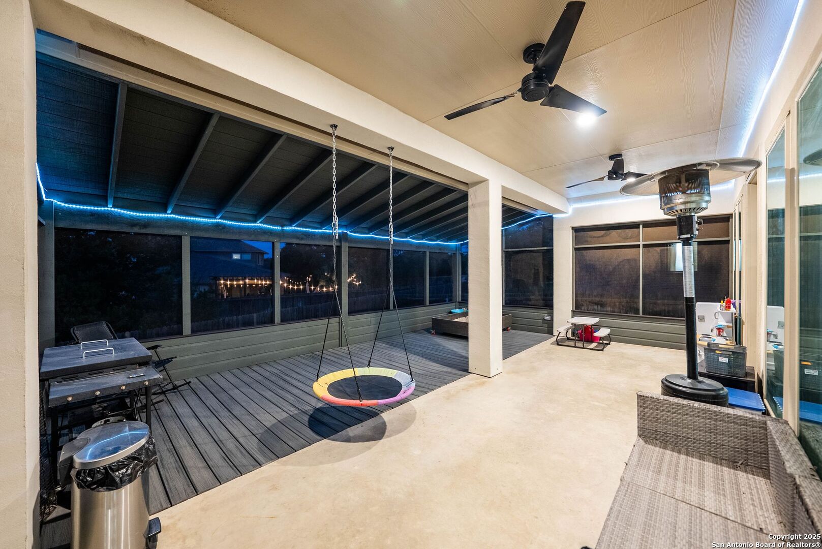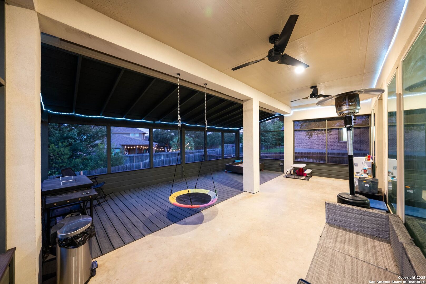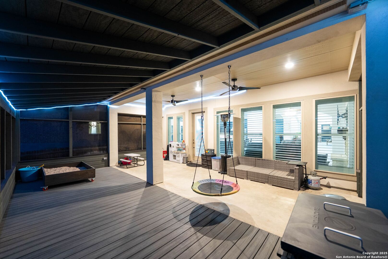 **OPEN HOUSE 11/22 1PM-4PM; 11/23 11:30AM-1:30PM**This beautifully maintained Perry Homes property offers 4 bedrooms, 3 full bathrooms, an office, a game room, and a versatile flex space that can serve as a formal dining area or second office. Ideally located within walking distance of both the elementary and high school, this home is packed with thoughtful upgrades. The spacious 46x20 screened-in deck, with a gas hookup for outdoor grilling, expands your living space and is perfect for year-round entertaining. Inside, enjoy custom built-ins in the primary closet, pantry, office, bedroom, playroom, and laundry room, offering style and smart storage throughout. Shutters on all windows add a polished, cohesive look and additional functionality. The home features a tankless water heater, whole-home reverse osmosis system, and an owned water softener, ensuring comfort and efficiency. Solar panels will be paid off at closing, providing energy savings for years to come. Additional highlights include an extended driveway, side yard, and access to a brand-new amenity center with a pool, playground, BBQ area, and scenic jogging trails in this controlled-access neighborhood. Comes with 4 years remaining on the builder's 10-year warranty for added peace of mind.