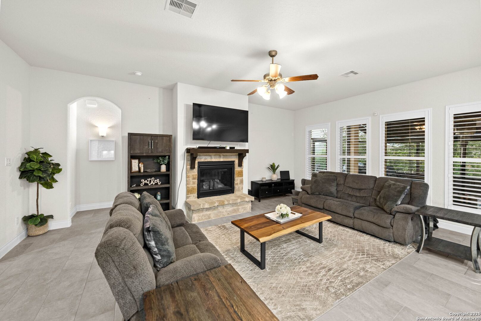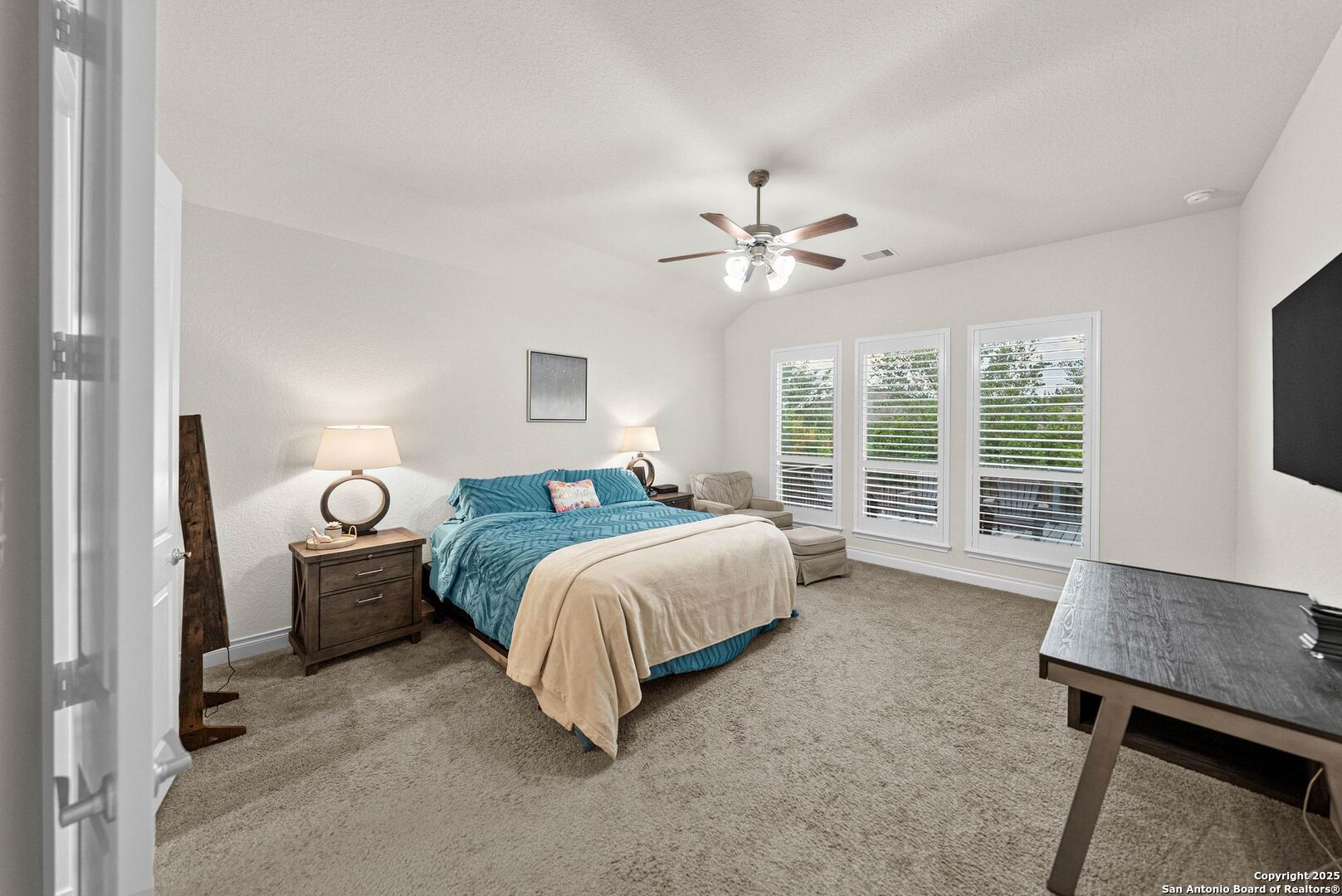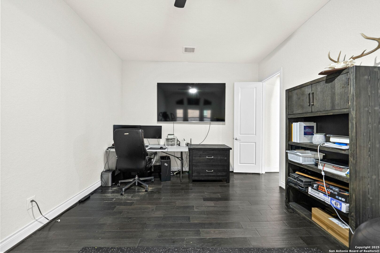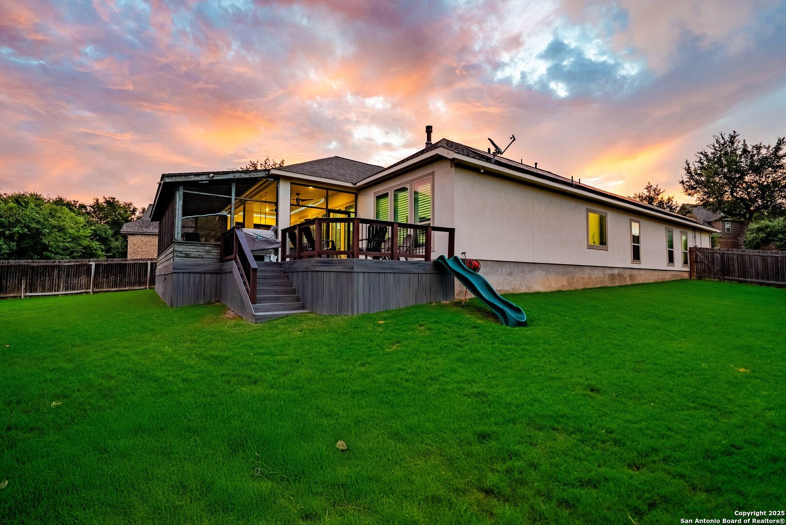 **OPEN HOUSE 11/22 1PM-4PM; 11/23 11:30AM-1:30PM**This beautifully maintained Perry Homes property offers 4 bedrooms, 3 full bathrooms, an office, a game room, and a versatile flex space that can serve as a formal dining area or second office. Ideally located within walking distance of both the elementary and high school, this home is packed with thoughtful upgrades. The spacious 46x20 screened-in deck, with a gas hookup for outdoor grilling, expands your living space and is perfect for year-round entertaining. Inside, enjoy custom built-ins in the primary closet, pantry, office, bedroom, playroom, and laundry room, offering style and smart storage throughout. Shutters on all windows add a polished, cohesive look and additional functionality. The home features a tankless water heater, whole-home reverse osmosis system, and an owned water softener, ensuring comfort and efficiency. Solar panels will be paid off at closing, providing energy savings for years to come. Additional highlights include an extended driveway, side yard, and access to a brand-new amenity center with a pool, playground, BBQ area, and scenic jogging trails in this controlled-access neighborhood. Comes with 4 years remaining on the builder's 10-year warranty for added peace of mind.