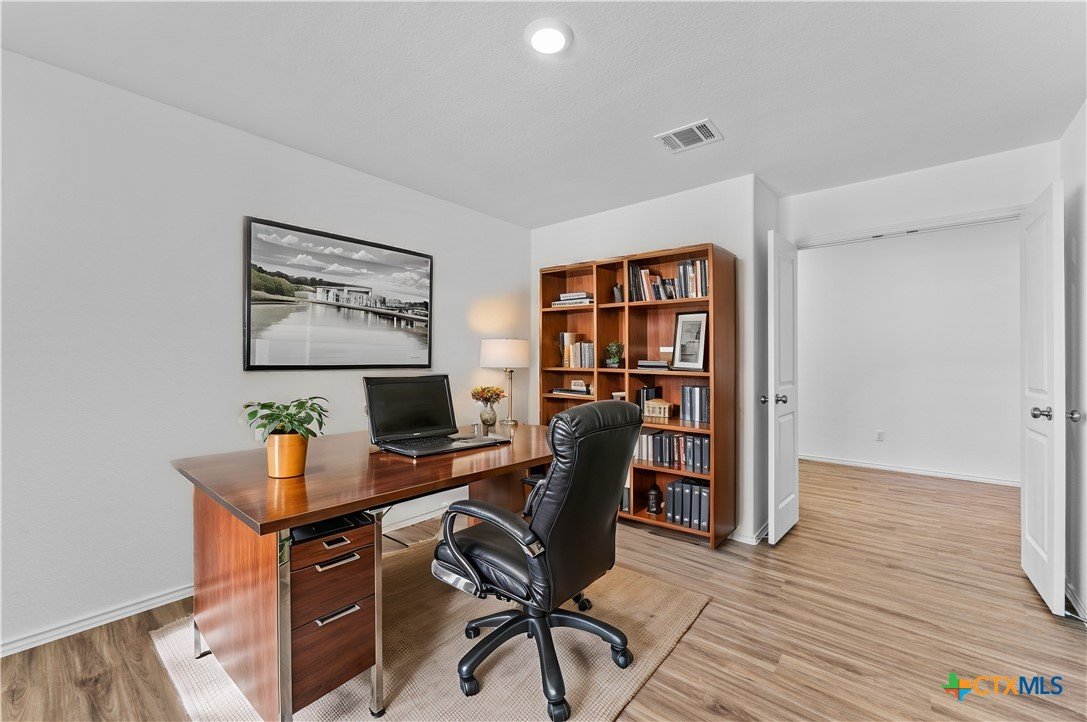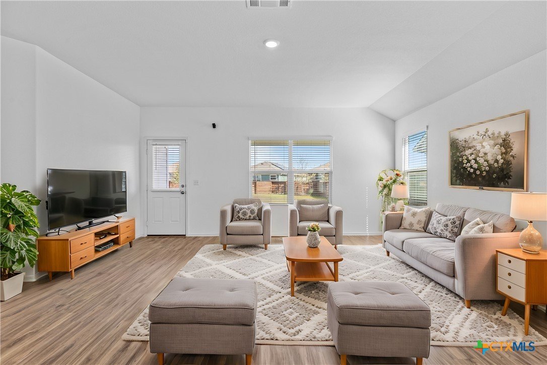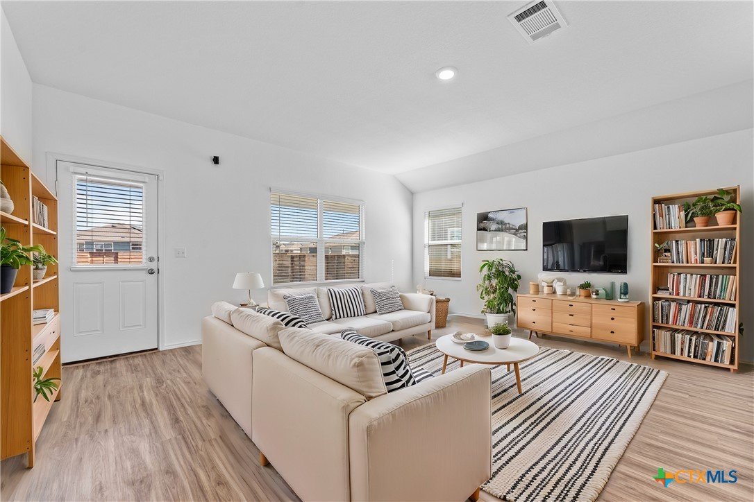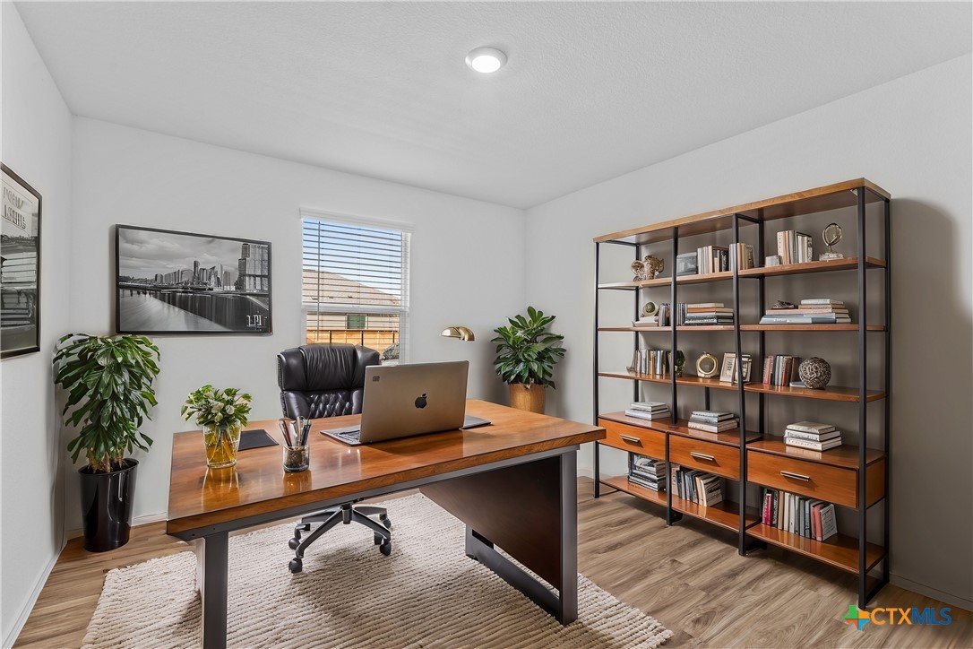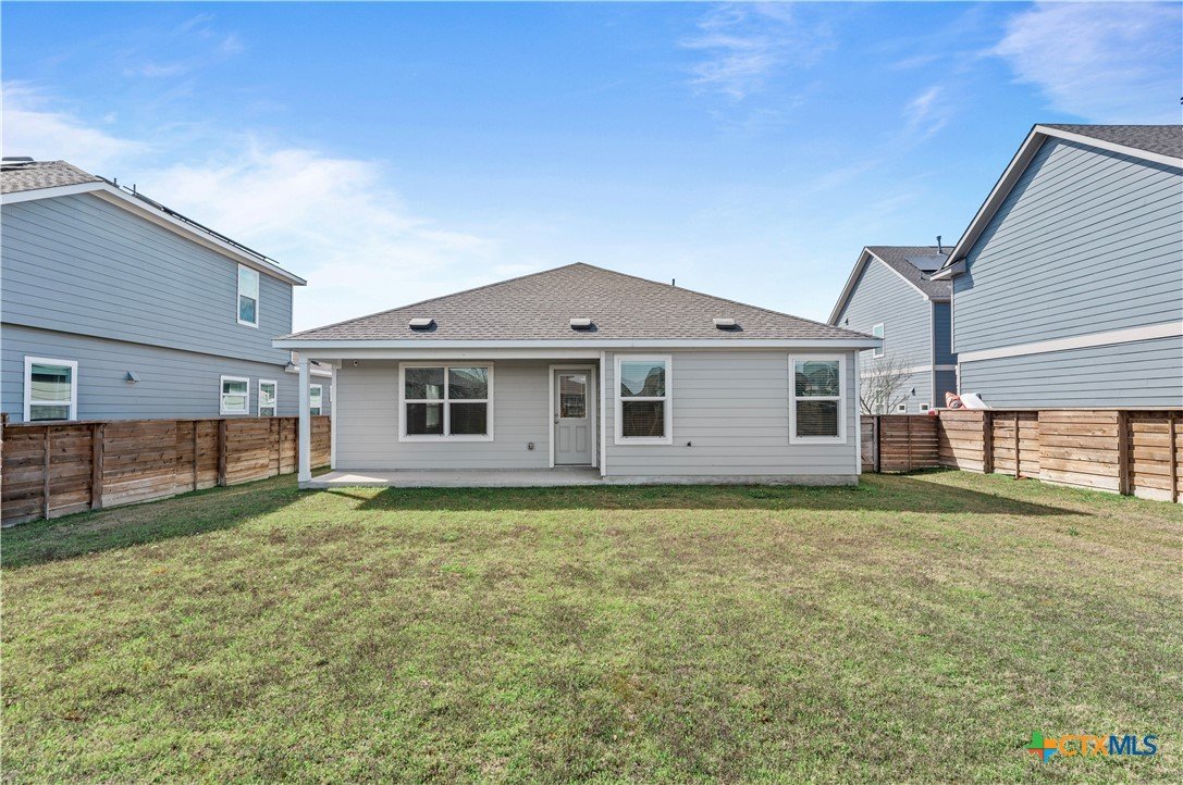Welcome to 130 Carmello, a beautifully designed home in the desirable Plum Creek North Community. The elegant stone exterior creates a welcoming first impression, setting the stage for the warmth and comfort found inside. The thoughtfully designed 3 bedroom, two bathroom open floor plan seamlessly connects the spacious living areas to a well-appointed kitchen, complete with a generous island, ample counter space, and plenty of cabinetry—ideal for both everyday living and entertaining guests. The primary suite serves as a private retreat, featuring dual sinks, a garden tub, and a walk-in closet for added convenience. A dedicated office with double doors provides a quiet and functional space for work or study, offering flexibility for today’s lifestyle. Residents of Plum Creek North enjoy access to a variety of amenities, including a clubhouse, pool, park/playground, and jogging trails. Completing this home’s appeal, a beautifully crafted stained wood fence encloses the oversized backyard, providing privacy while offering an ideal space for outdoor activities, gardening, or simply relaxing in a peaceful setting.