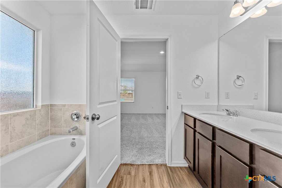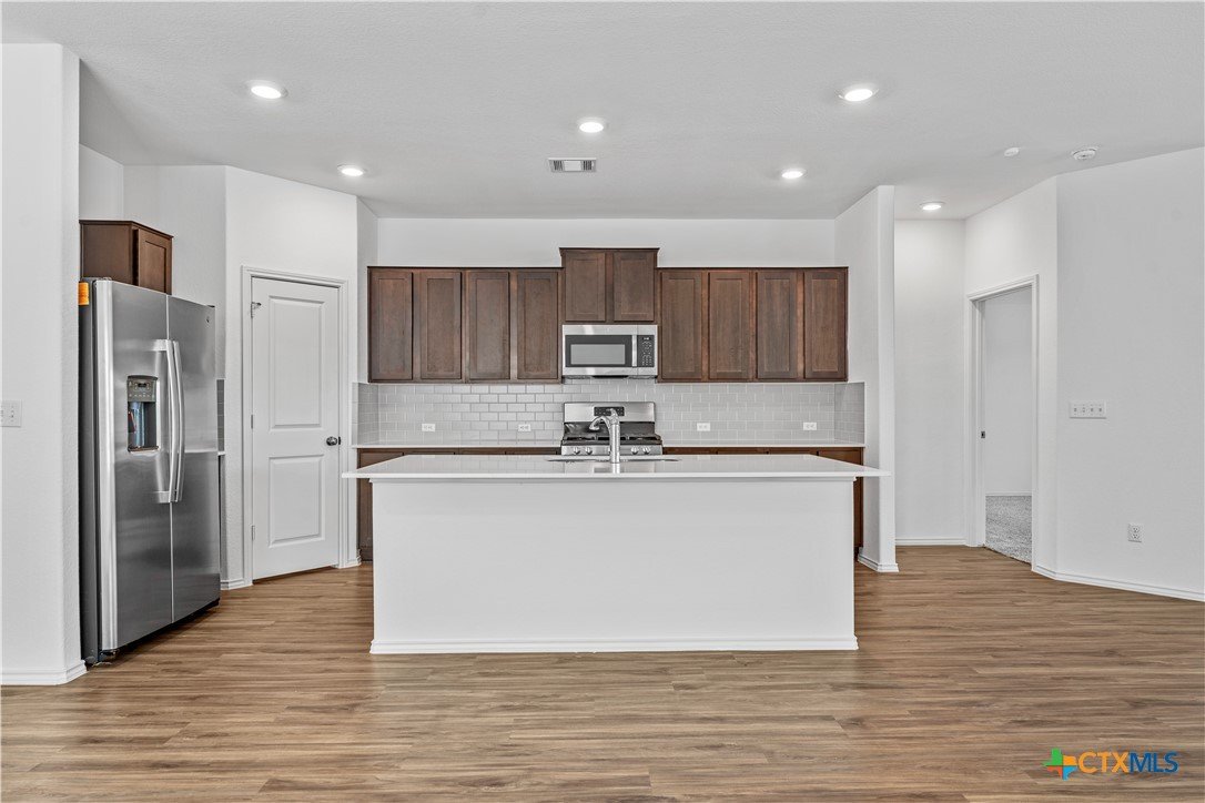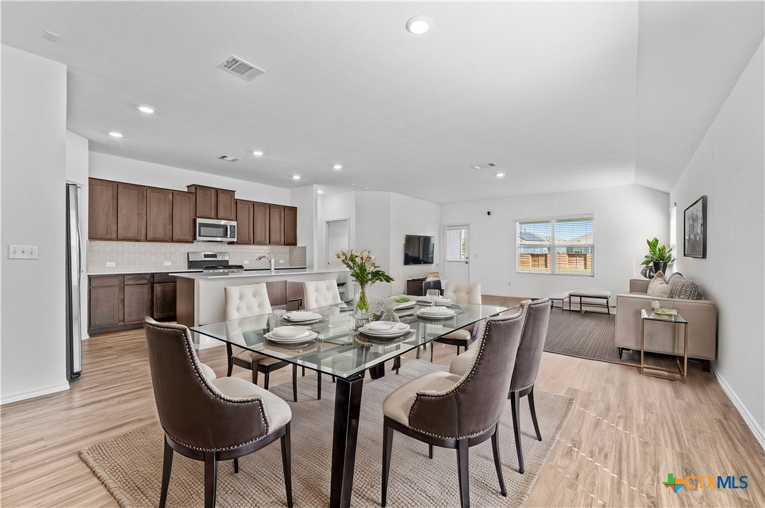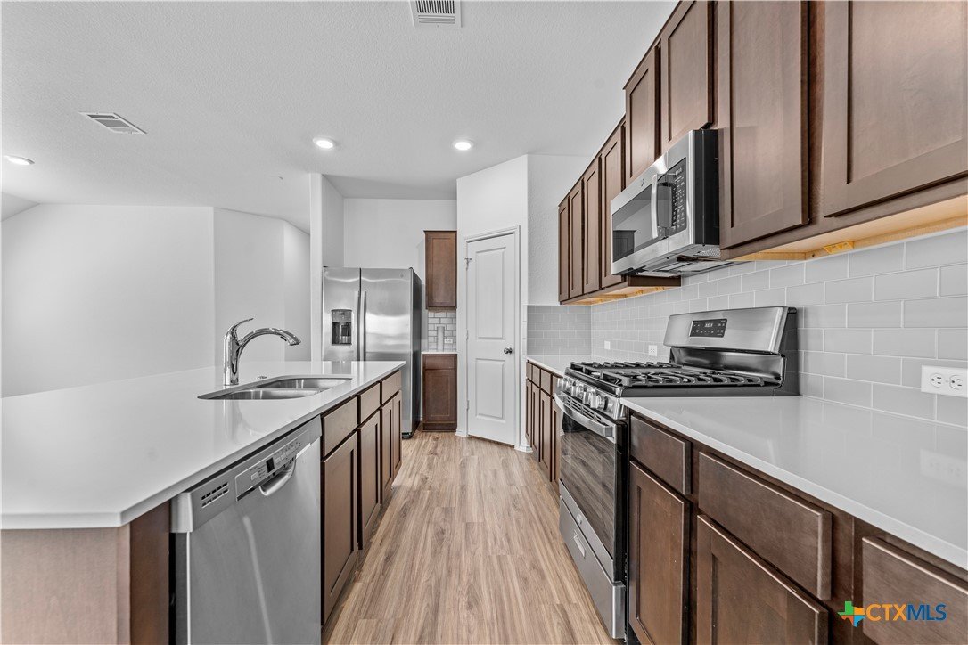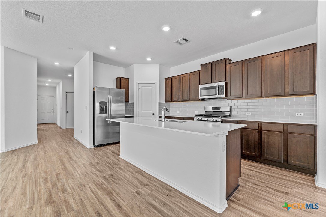 Welcome to 130 Carmello, a beautifully designed home in the desirable Plum Creek North Community. The elegant stone exterior creates a welcoming first impression, setting the stage for the warmth and comfort found inside. The thoughtfully designed 3 bedroom, two bathroom open floor plan seamlessly connects the spacious living areas to a well-appointed kitchen, complete with a generous island, ample counter space, and plenty of cabinetry—ideal for both everyday living and entertaining guests. The primary suite serves as a private retreat, featuring dual sinks, a garden tub, and a walk-in closet for added convenience. A dedicated office with double doors provides a quiet and functional space for work or study, offering flexibility for today’s lifestyle. Residents of Plum Creek North enjoy access to a variety of amenities, including a clubhouse, pool, park/playground, and jogging trails. Completing this home’s appeal, a beautifully crafted stained wood fence encloses the oversized backyard, providing privacy while offering an ideal space for outdoor activities, gardening, or simply relaxing in a peaceful setting.