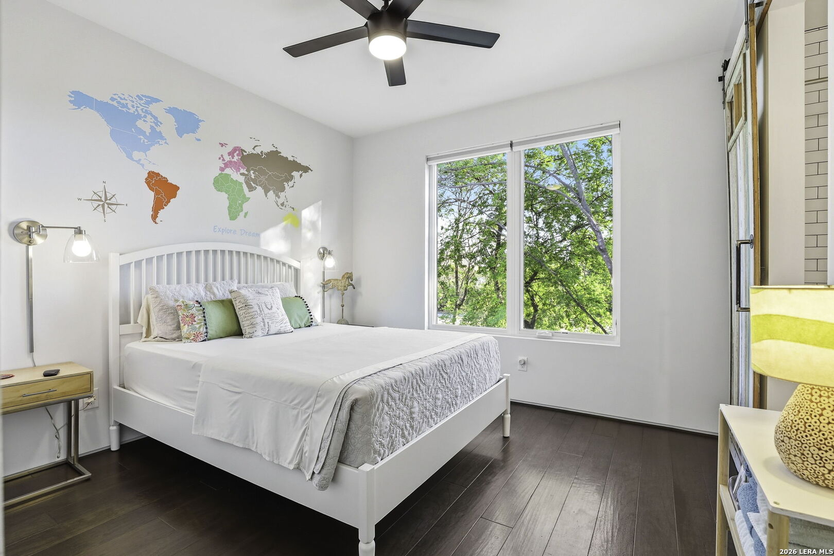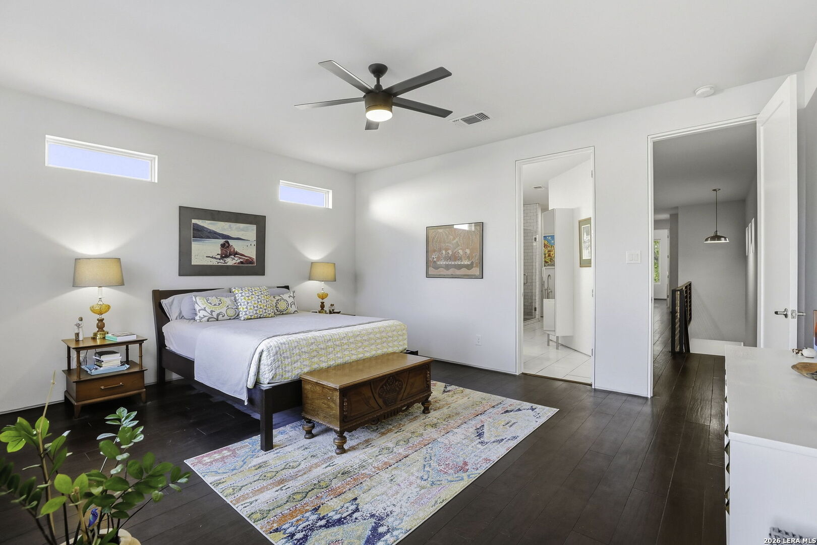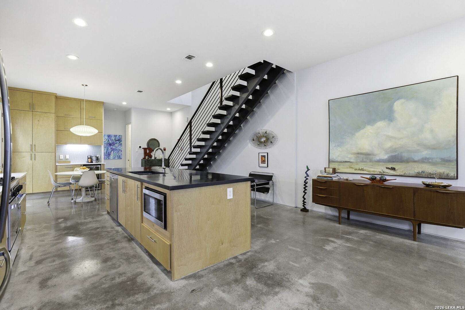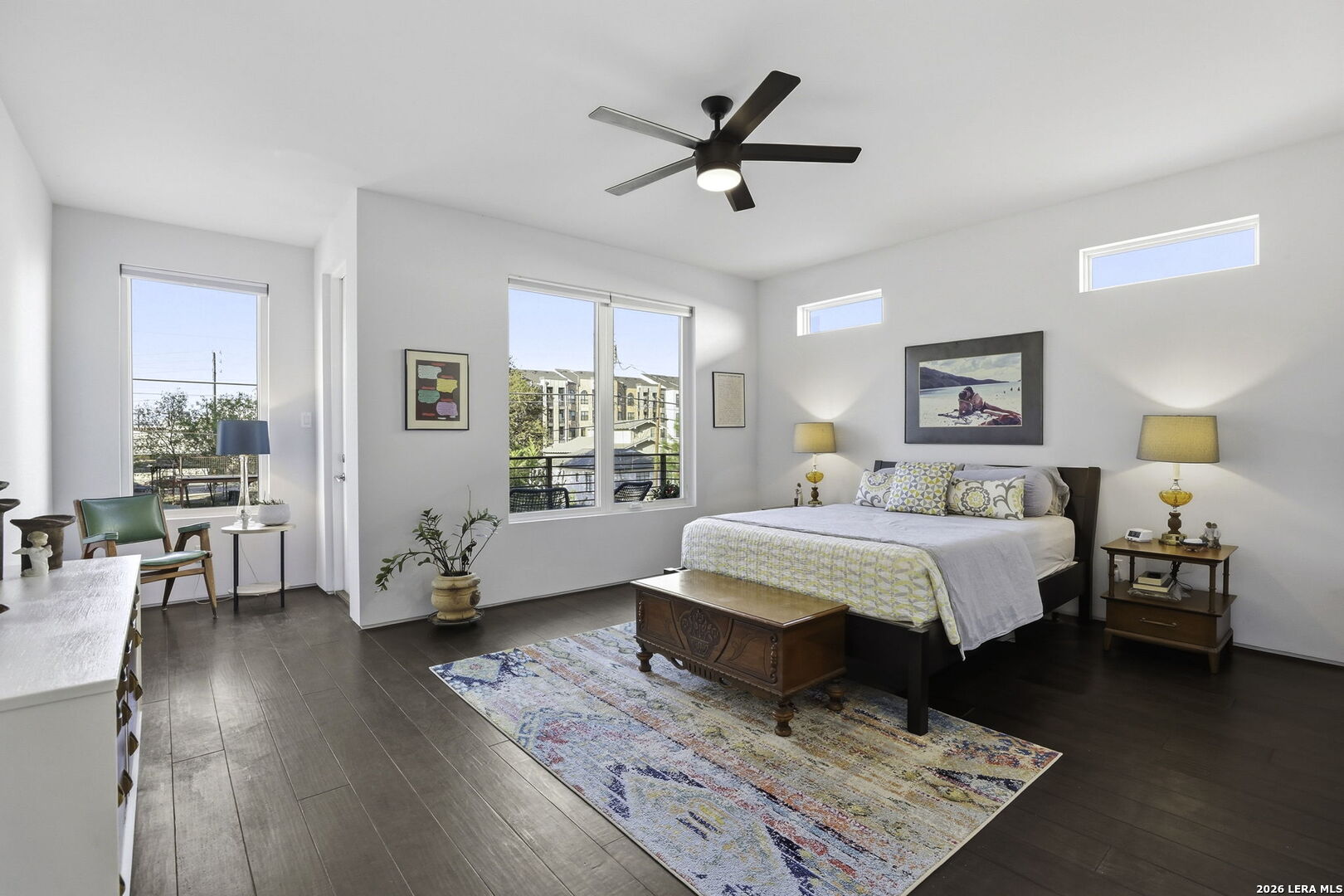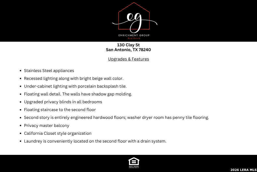 Modern Urban Oasis in the Heart of Lone Star, San Antonio Welcome to your dream home in the vibrant and growing Lone Star District of San Antonio. This stunning modern residence offers the perfect blend of urban living and serene comfort, just an 8-minute walk to the picturesque San Antonio River and the lively Blue Star Arts District. Enjoy being within walking distance to a variety of restaurants, with the historic San Pedro Springs Park just a 12-minute stroll away. Step inside this exquisite 3-bedroom, 3 full-bath home and experience its contemporary design and thoughtful layout. The exterior showcases a stylish combination of stucco and wood, complemented by a durable metal roof and a covered two-car carport with an automatic gate for added security. At the entrance, you'll find a charming courtyard patio complete with a fireplace-perfect for relaxing evenings-along with access to a versatile side yard and a functional backyard with a storage shed. Inside, high ceilings and abundant natural light highlight the open-concept living space. The seamless flow between the living room, kitchen, and dining area is enhanced by European-style maple cabinetry and modern recessed lighting. The gourmet kitchen features a built-in microwave, gas range with oven, and sleek metal countertops-ideal for both everyday living and entertaining. The main level includes a convenient guest bedroom that overlooks the backyard and has a stunning full bathroom. Upstairs, a striking floating staircase leads to the second floor, where engineered hardwood flooring continues throughout. The primary suite is a true retreat, offering large windows, a private patio for morning coffee, and a spa-like bathroom with a separate shower and a soaking tub. The spacious primary closet features California-style organization. An additional upstairs bedroom includes its own private bathroom, and the laundry room is conveniently located on the second floor for easy access. Experience the best of urban living in this exceptional home. Don't miss your opportunity to own a property that seamlessly combines modern design, comfort, and unbeatable location. Schedule your tour today!