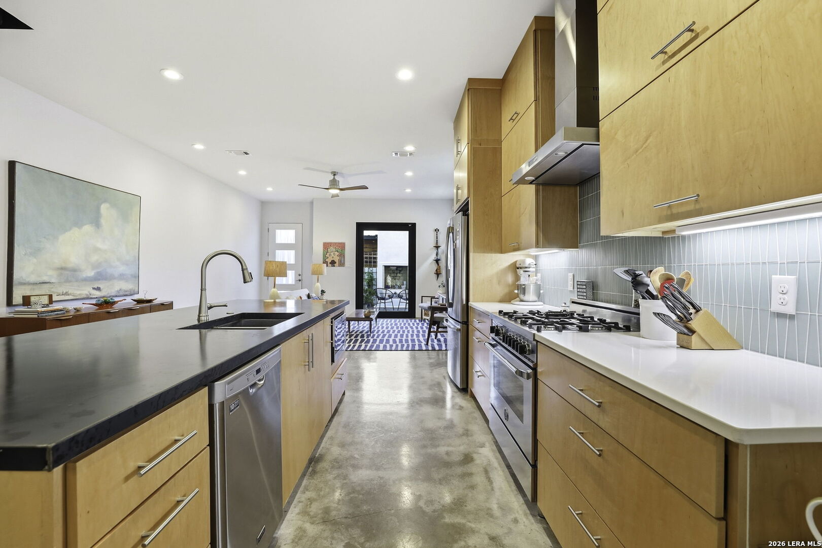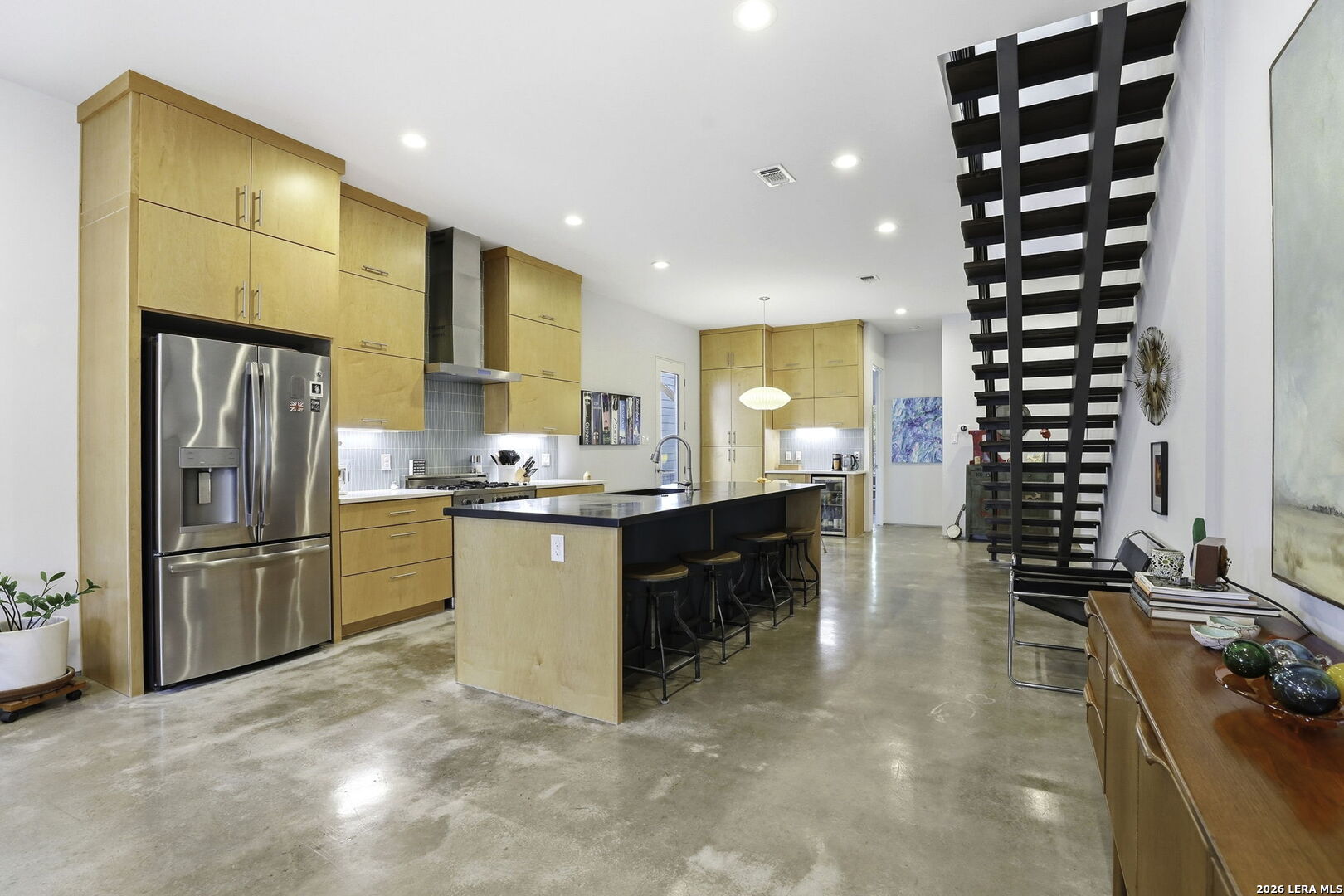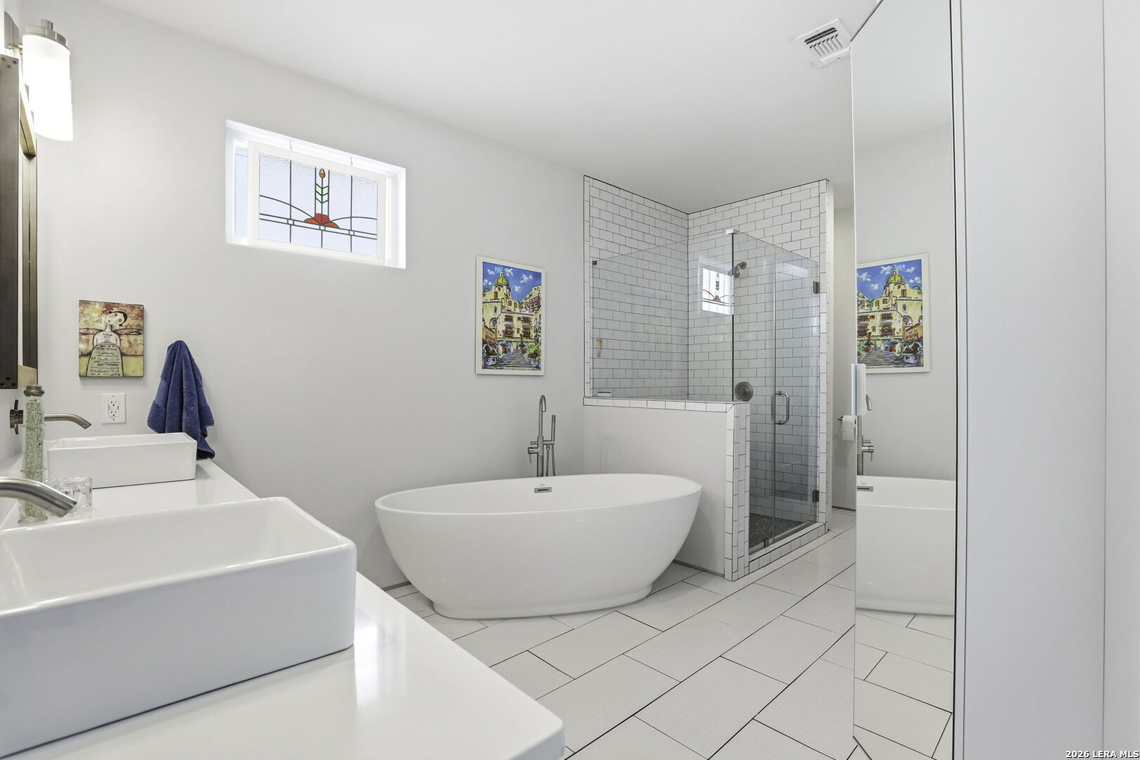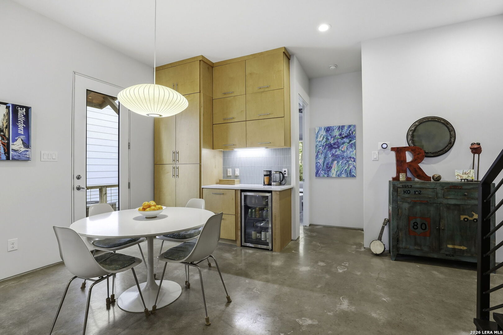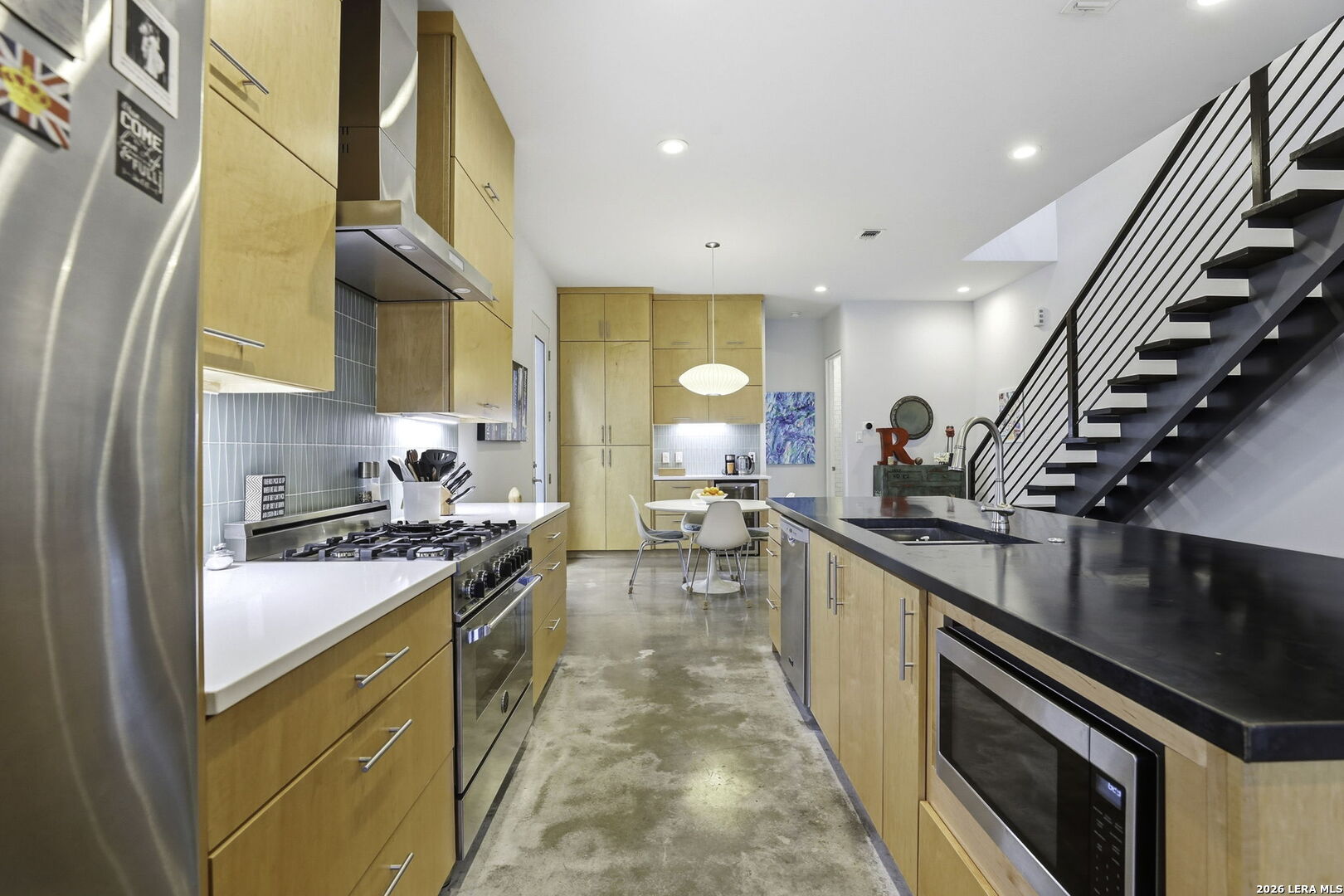 Modern Urban Oasis in the Heart of Lone Star, San Antonio Welcome to your dream home in the vibrant and growing Lone Star District of San Antonio. This stunning modern residence offers the perfect blend of urban living and serene comfort, just an 8-minute walk to the picturesque San Antonio River and the lively Blue Star Arts District. Enjoy being within walking distance to a variety of restaurants, with the historic San Pedro Springs Park just a 12-minute stroll away. Step inside this exquisite 3-bedroom, 3 full-bath home and experience its contemporary design and thoughtful layout. The exterior showcases a stylish combination of stucco and wood, complemented by a durable metal roof and a covered two-car carport with an automatic gate for added security. At the entrance, you'll find a charming courtyard patio complete with a fireplace-perfect for relaxing evenings-along with access to a versatile side yard and a functional backyard with a storage shed. Inside, high ceilings and abundant natural light highlight the open-concept living space. The seamless flow between the living room, kitchen, and dining area is enhanced by European-style maple cabinetry and modern recessed lighting. The gourmet kitchen features a built-in microwave, gas range with oven, and sleek metal countertops-ideal for both everyday living and entertaining. The main level includes a convenient guest bedroom that overlooks the backyard and has a stunning full bathroom. Upstairs, a striking floating staircase leads to the second floor, where engineered hardwood flooring continues throughout. The primary suite is a true retreat, offering large windows, a private patio for morning coffee, and a spa-like bathroom with a separate shower and a soaking tub. The spacious primary closet features California-style organization. An additional upstairs bedroom includes its own private bathroom, and the laundry room is conveniently located on the second floor for easy access. Experience the best of urban living in this exceptional home. Don't miss your opportunity to own a property that seamlessly combines modern design, comfort, and unbeatable location. Schedule your tour today!