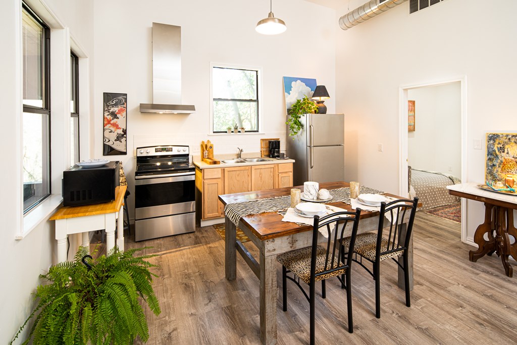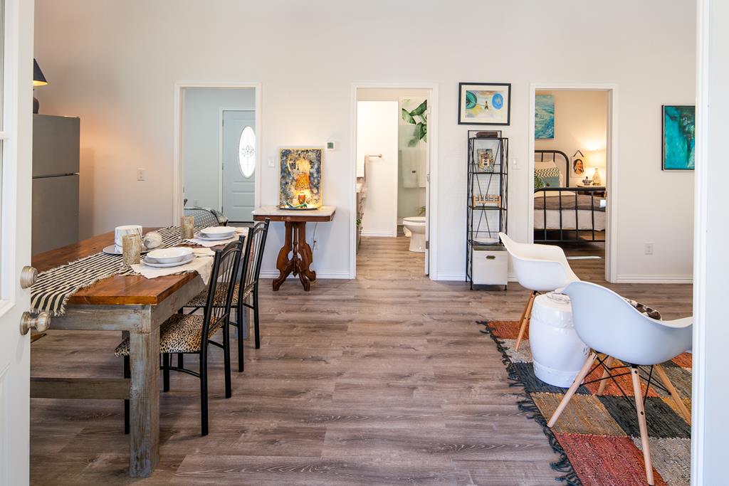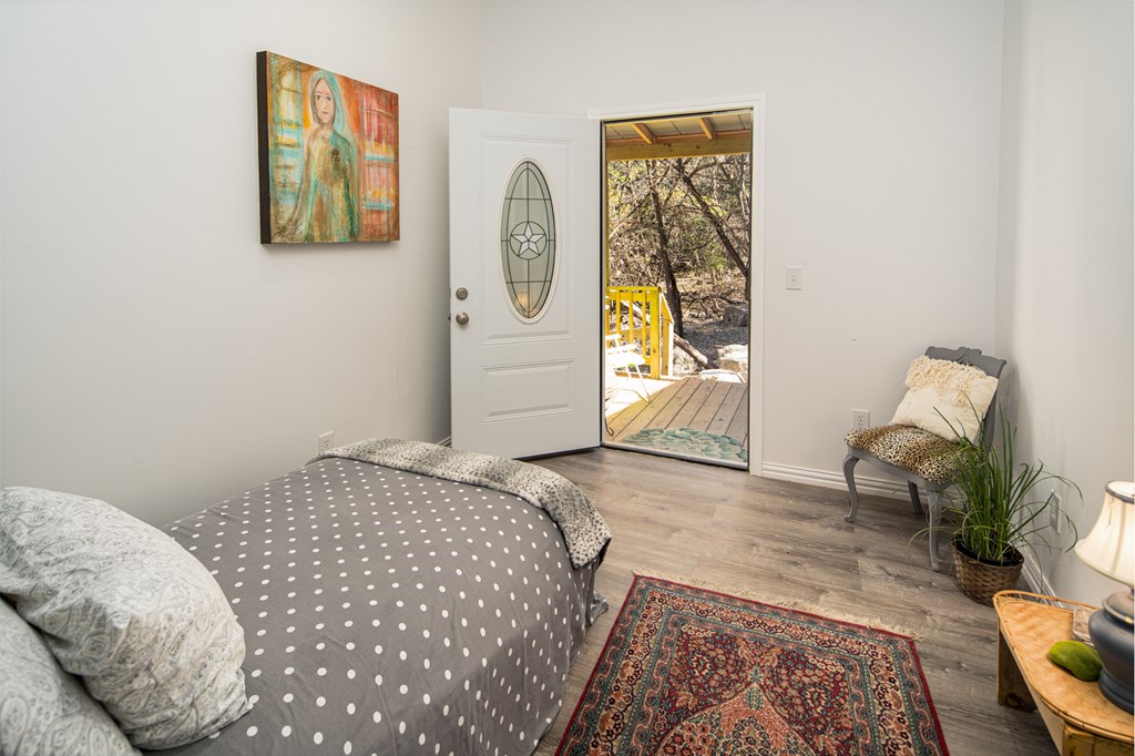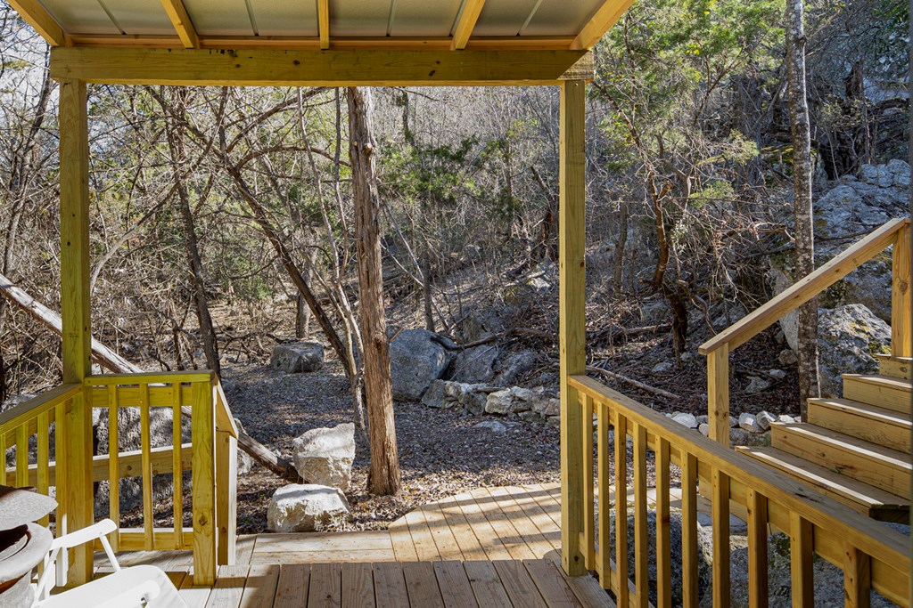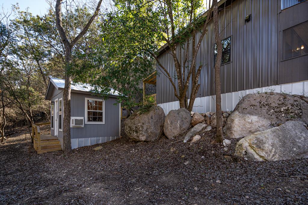 YEARNING FOR PEACEFUL SECLUSION??? This truly one-of-a-kind, artistically designed, weekend escape on 3.04 secluded acres on gorgeous Verde Creek can fulfill your desires. This unique weekend getaway was completed in 2019, and is designed to blend into the natural landscape of tall trees & massive boulders. Walk along the level land with giant cypress trees along the creek, or move uphill where the Main House, Art Studio, & Laundry/Equipment buildings hide among the trees above the flood plain. A wonderful screened porch graces the Main House. Open double doors to the centrally cooled & heated interior, where you'll find an open light & bright room with high ceilings for the kitchen, living, & dining space, & 2 bedrooms & 1 bathroom. Step out of 1 bedroom onto a private wood deck, with a wood path which winds through boulders up to the equipment/laundry building; or down to the darling art studio with window air/heat & a sink, also perfectly suited for a craft room, workshop, or whatever suits your needs. Located near the end of a private dirt road (Cypress Drive), with approx 489 ft. of this flowing, year-round, live creek. No HOA. Minimal restrictions. MUST SEE!